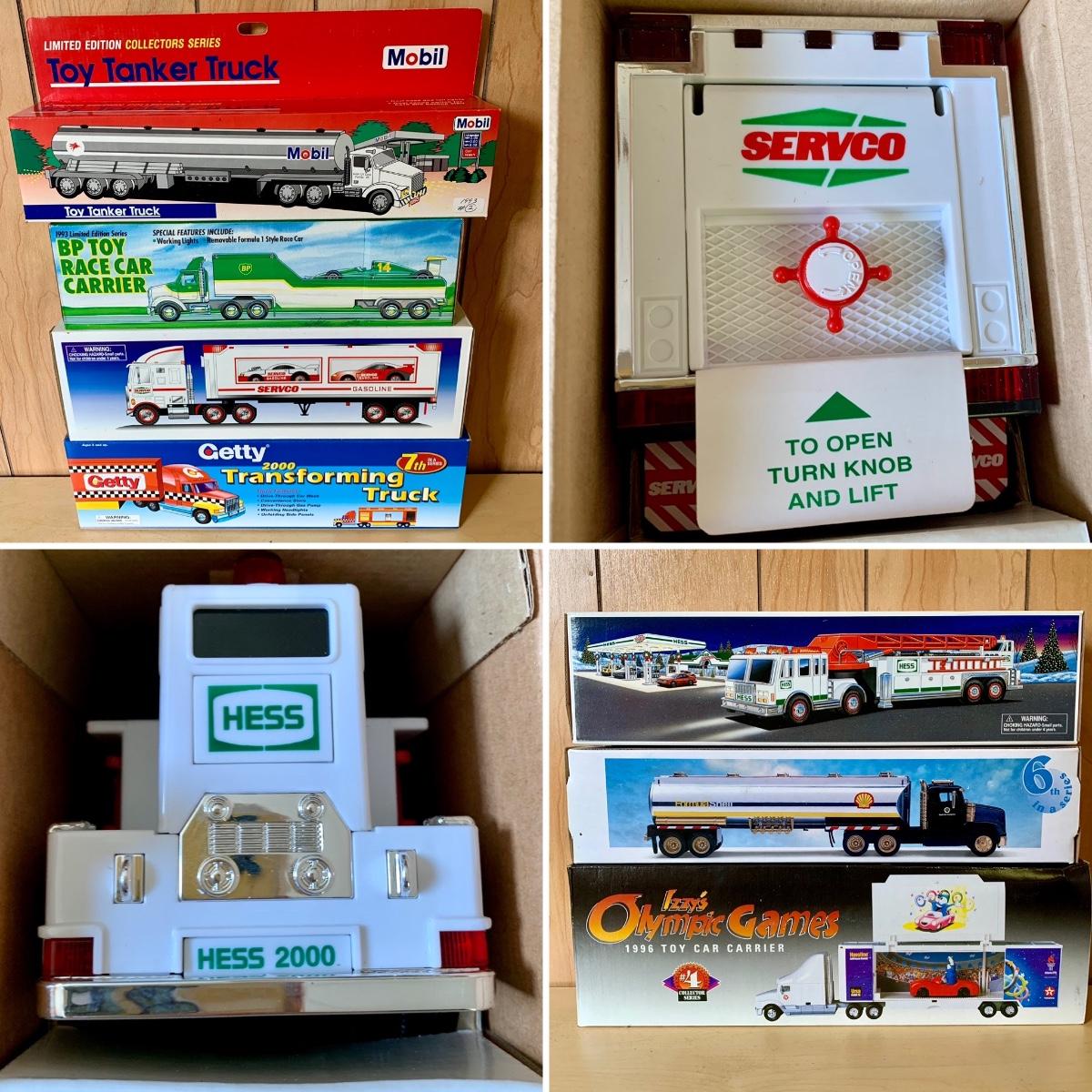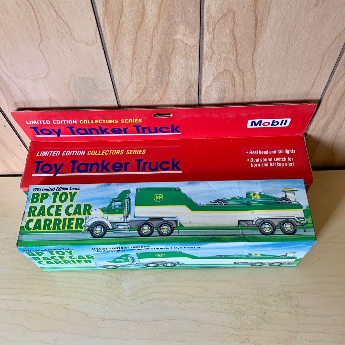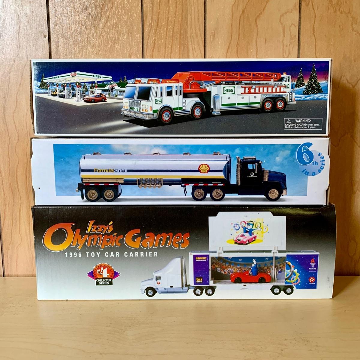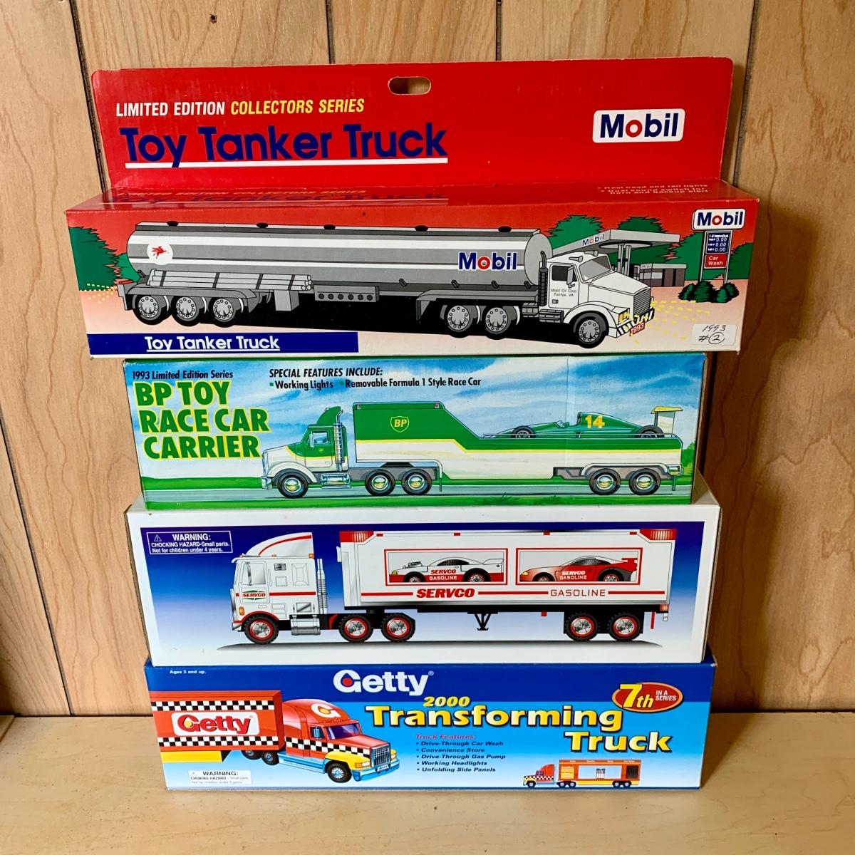 LOT 250: 1993 Mobil Limited Edition Collectors Series Toy Tanker Truck, 1996 Texaco Izzy's Olympic Games Toy Car Carrier, Shell, Hess, BP, Servco, Getty, & More