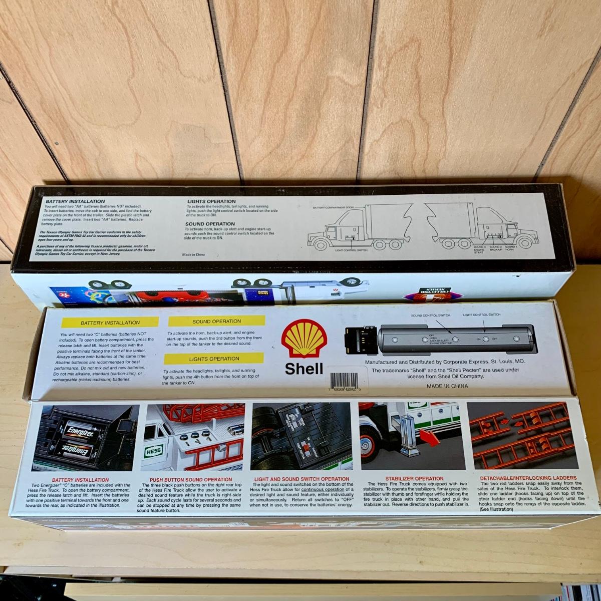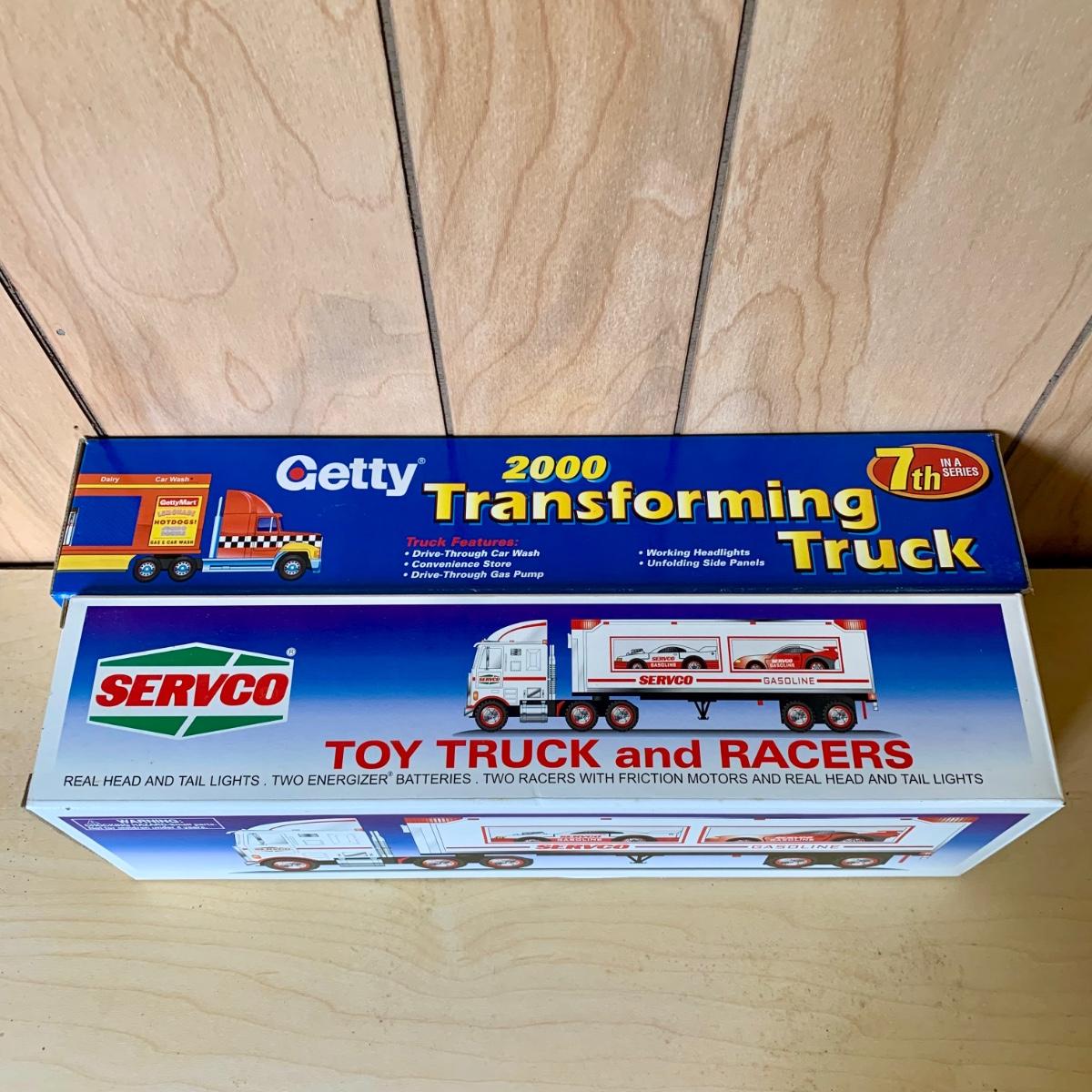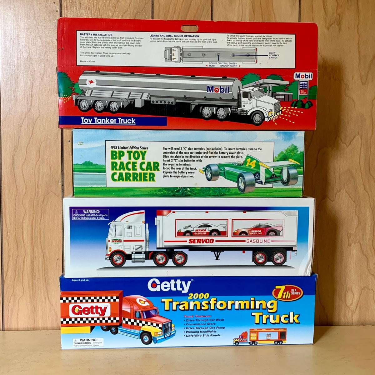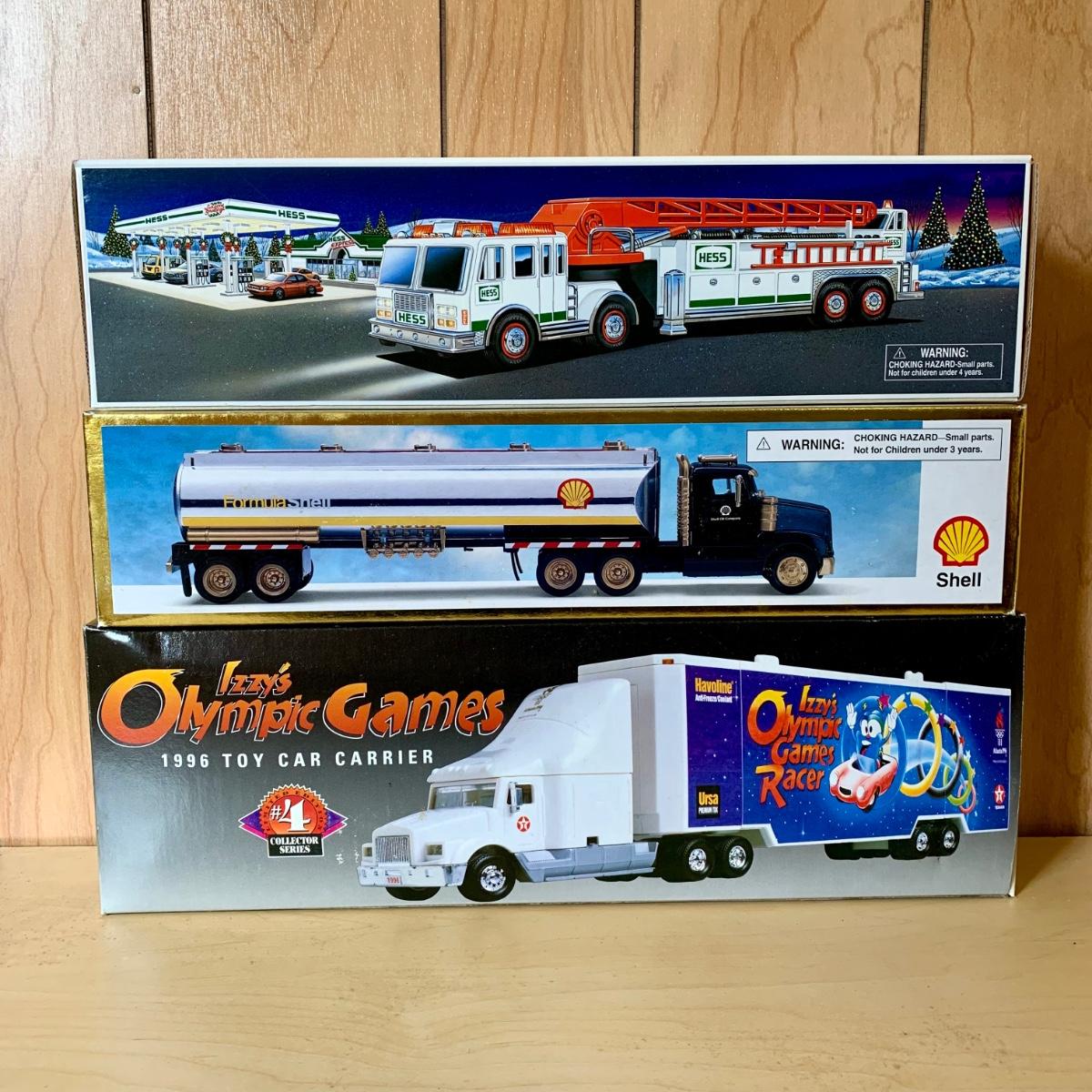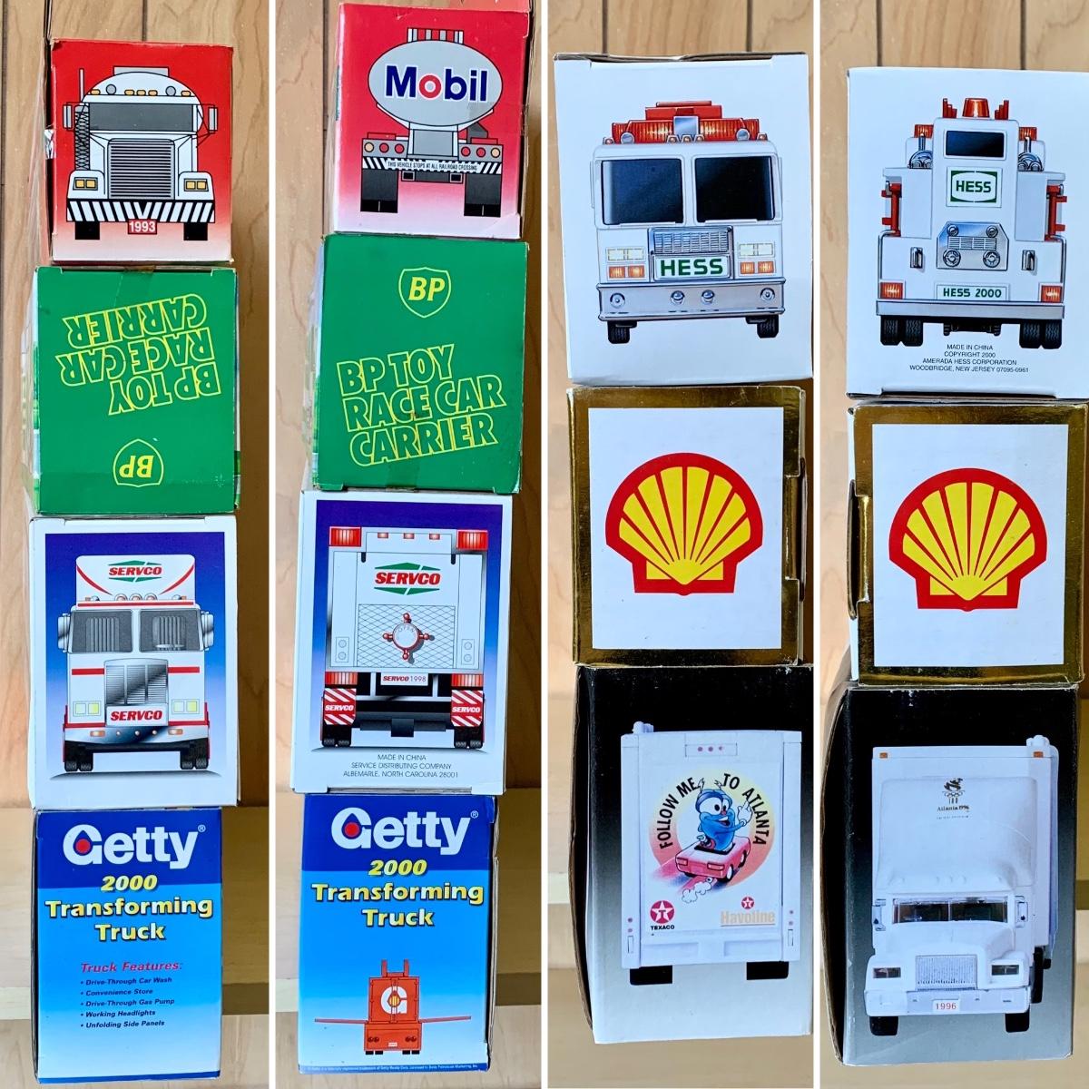 LOT 250: 1993 Mobil Limited Edition Collectors Series Toy Tanker Truck, 1996 Texaco Izzy's Olympic Games Toy Car Carrier, Shell, Hess, BP, Servco, Getty, & More