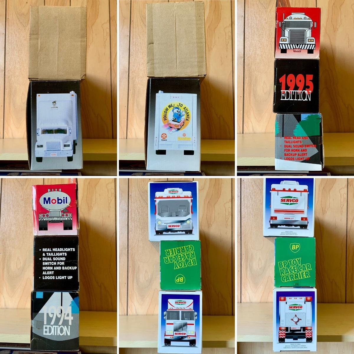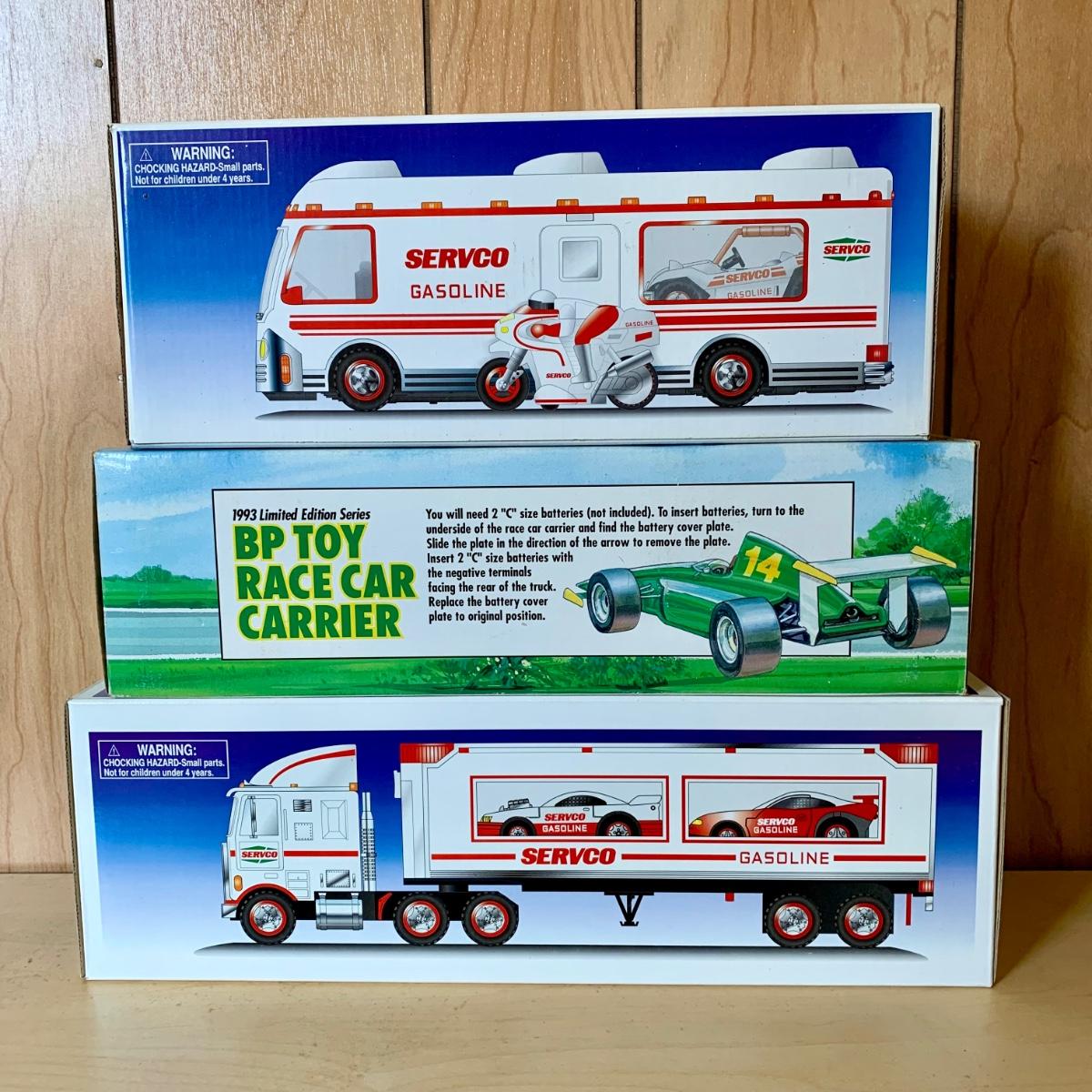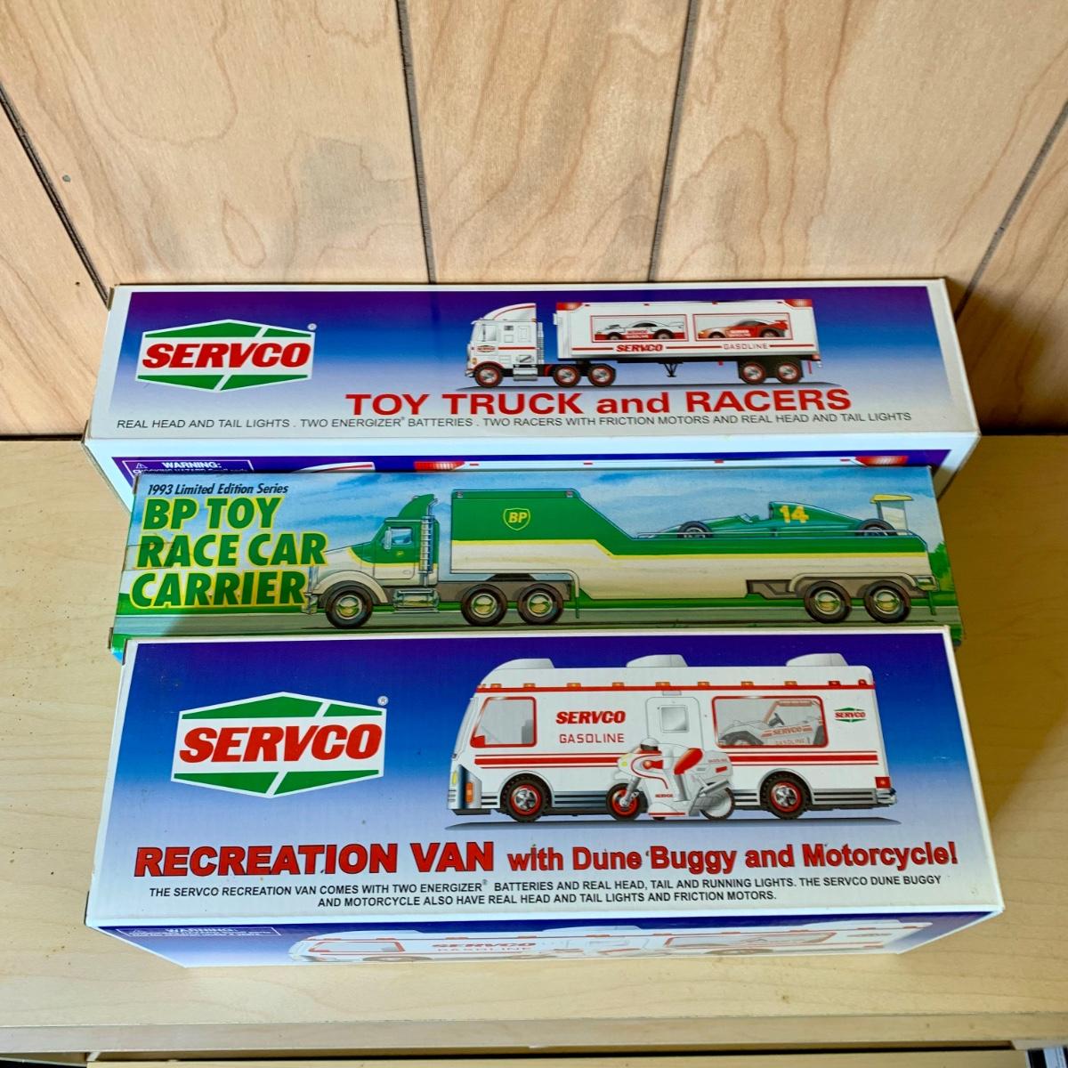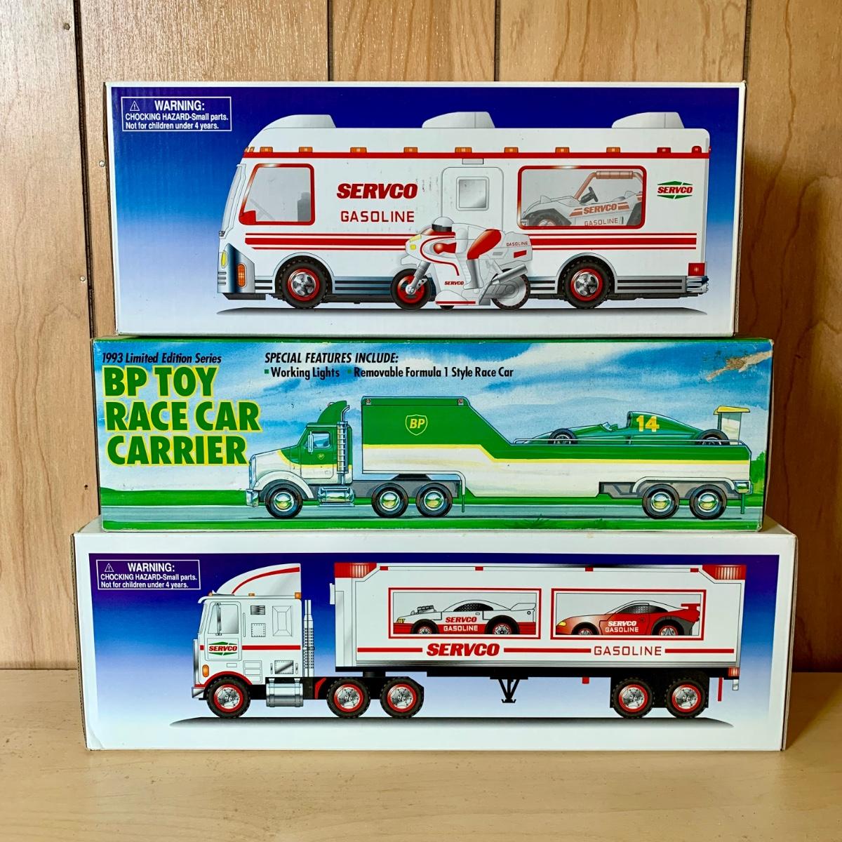 LOT 251: 2000 Shell Car Carrier Truck & 1955 Ford Thunderbird, 1993 BP Limited Edition Series Toy Race Car Carrier, Texaco, Servco, Mobil, & More
