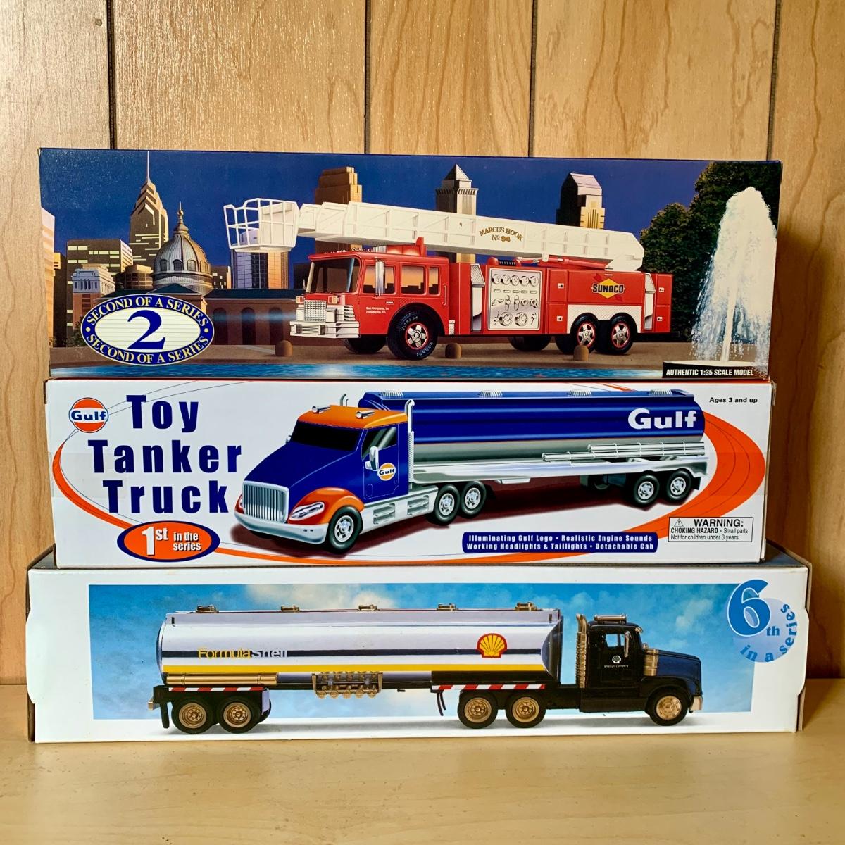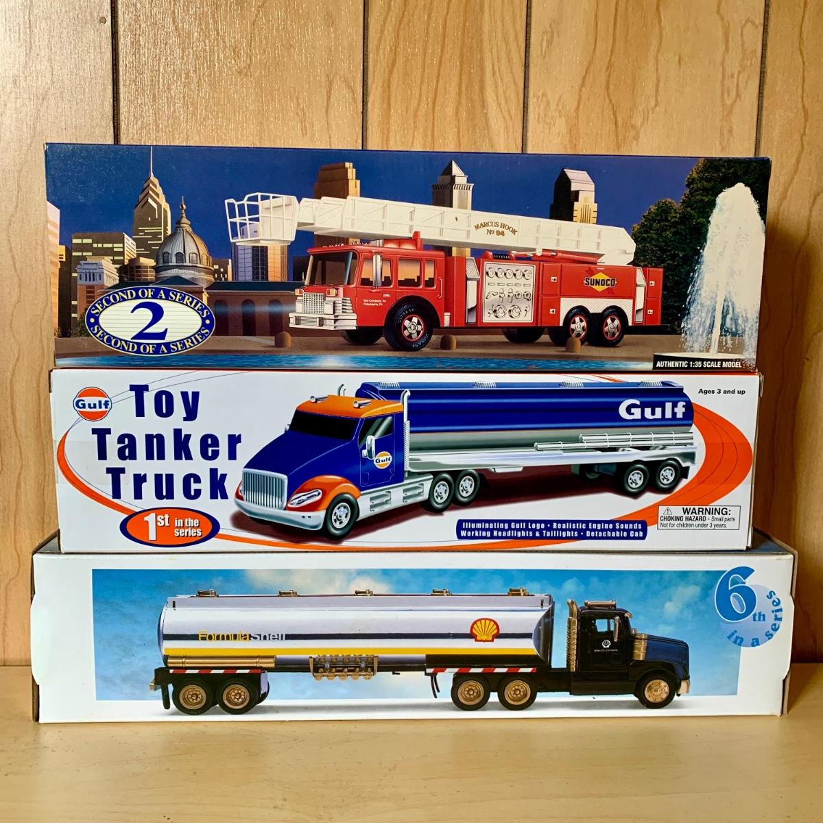 LOT 256: 1st in Series 2004 Gulf Toy Tanker Truck, 1997 Taylor Made Trucks Phillips '66' Toy Tanker Truck, Sunoco, Shell, BP, Ashland, Texaco, & More