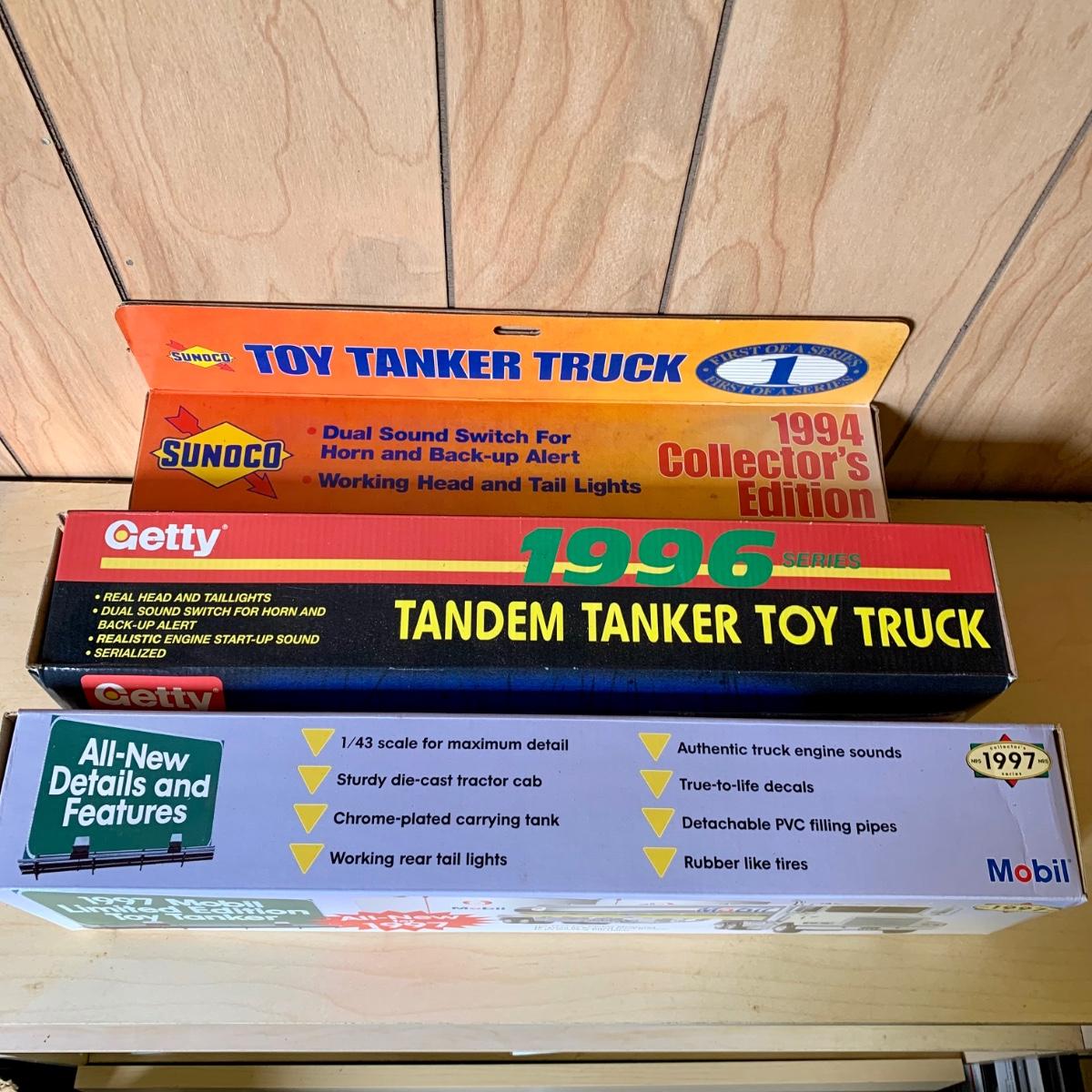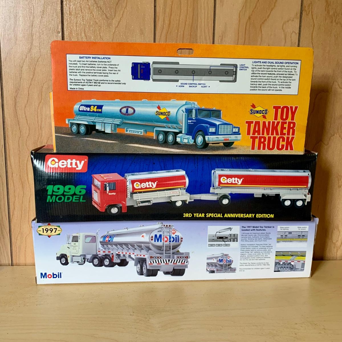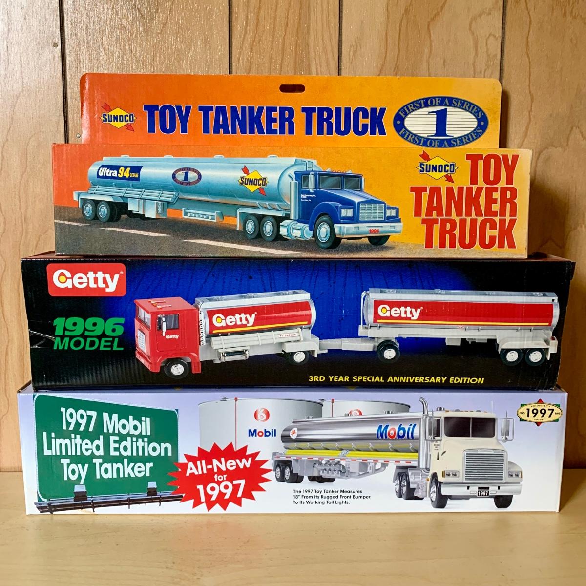 LOT 260: 1996 Getty Tandem Tanker Toy Truck, 1st in Series 1994 Leffler Toy Tanker Truck, Sunoco, Mobil, Shell, Gate, Amoco, Crown, & More