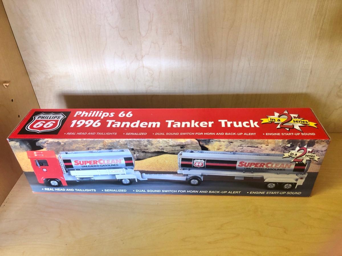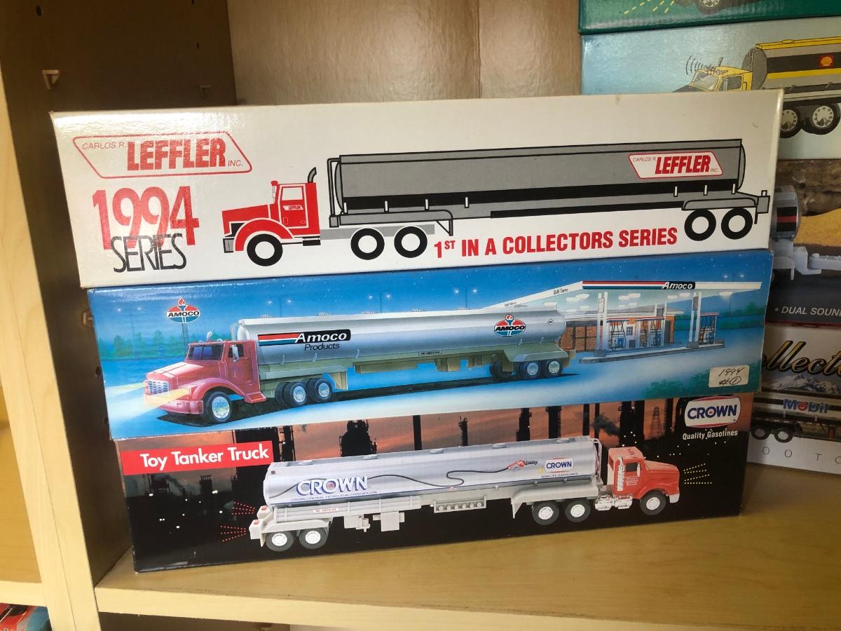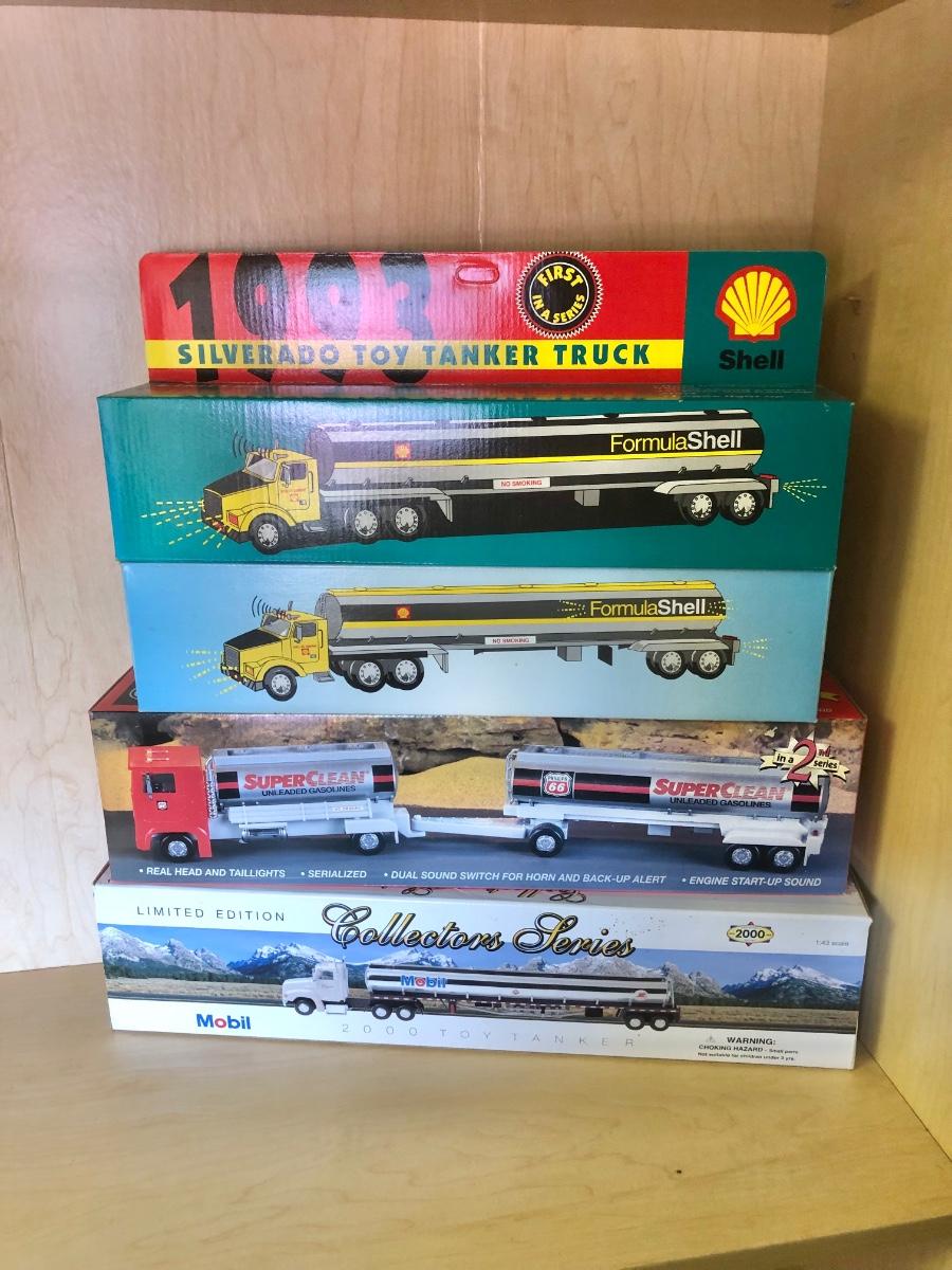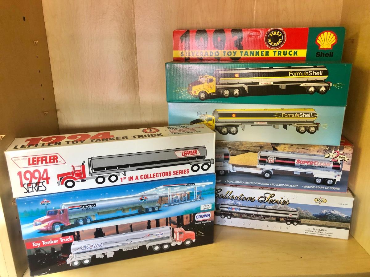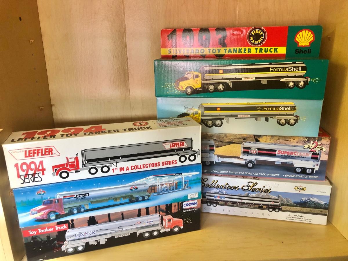 LOT 269: Collectible Toy Tanker Trucks - 1994 Leffler 1st in Series, 1993 & 1994 Silverado Shell, Phillips 66 Tandem, Mobil 2000 Collectors Series, Crown & Amoco