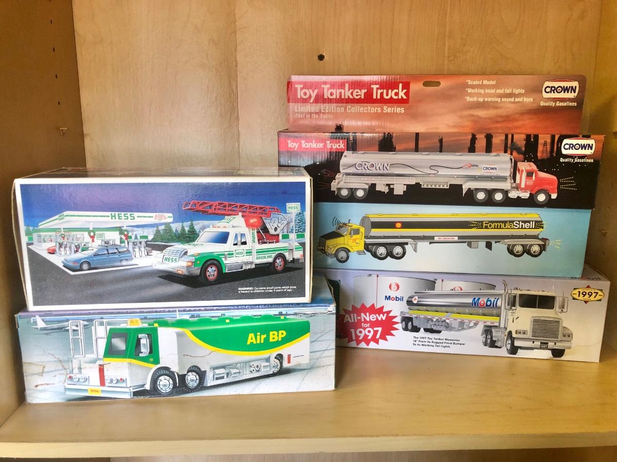 LOT 270: Collectible Toy Trucks - 1997 Mobil Ltd Ed Tanker, Ltd Edition Crown Tanker 1st in Series, Hess Rescue Truck 1994 Shell Silverado Tanker, BP Aviation Tanker & More