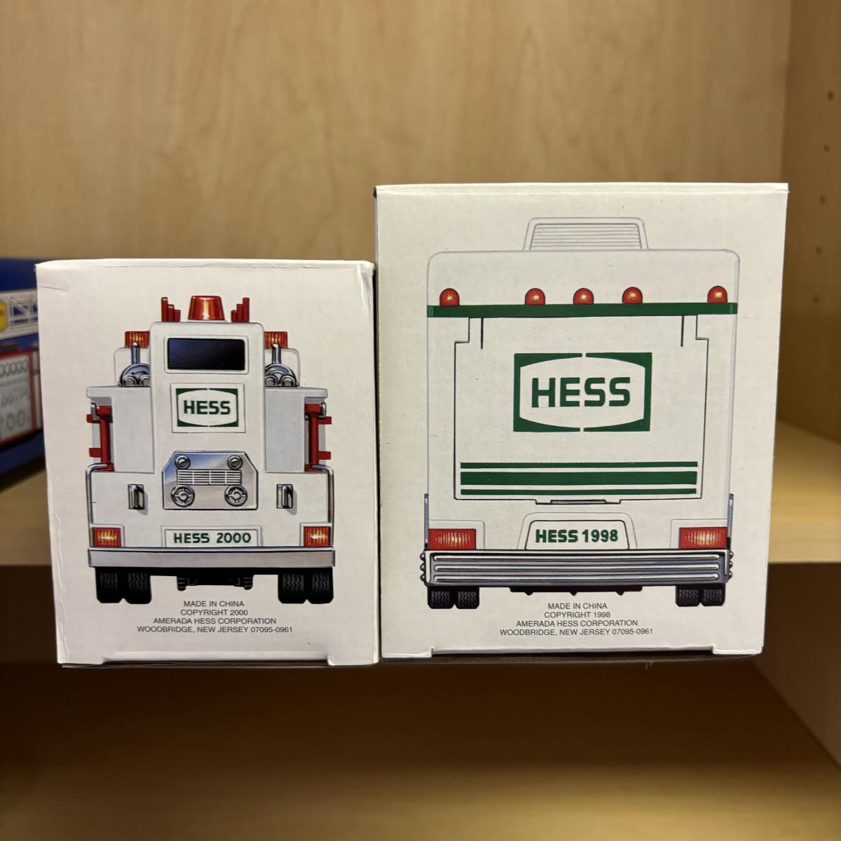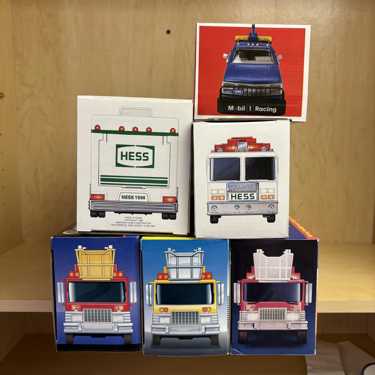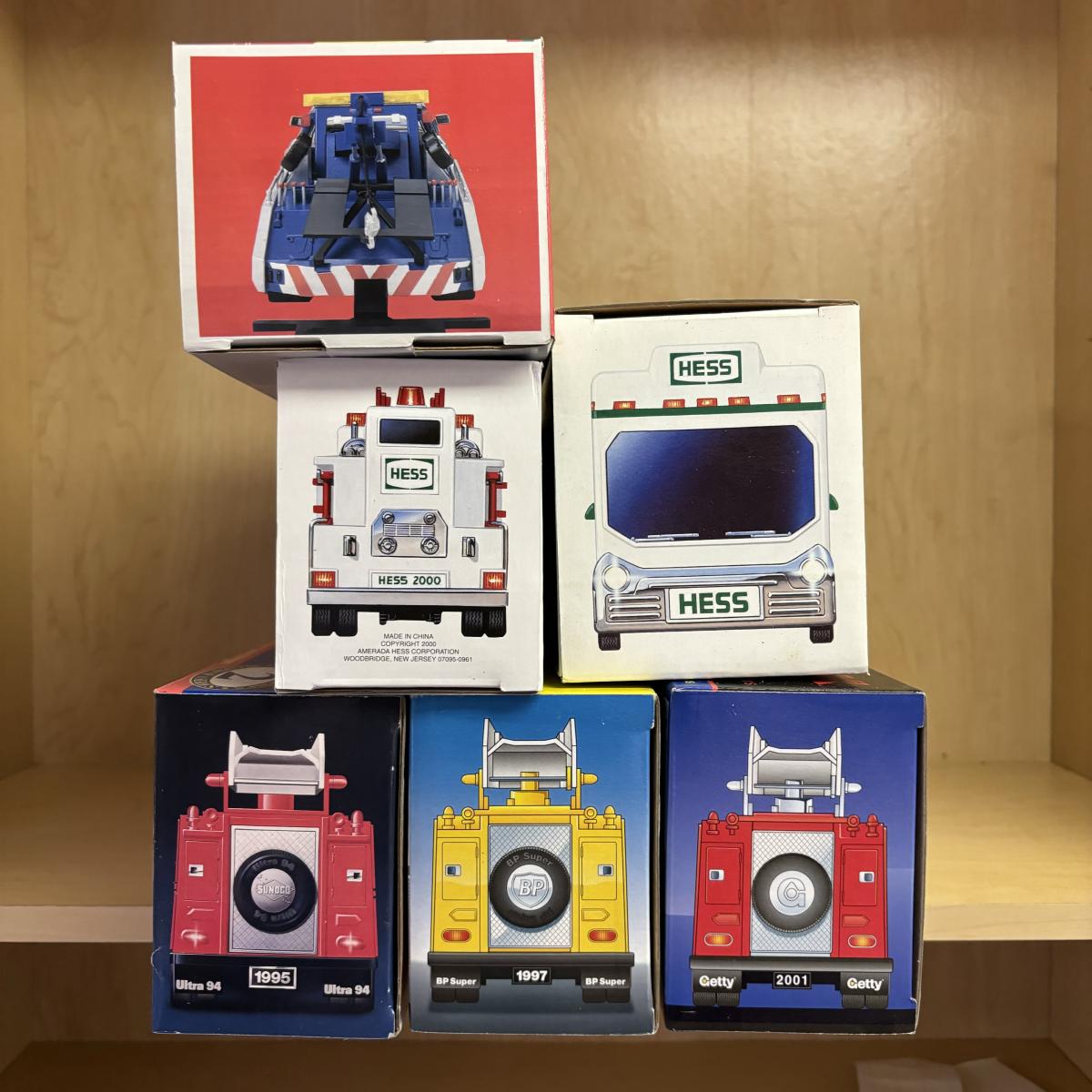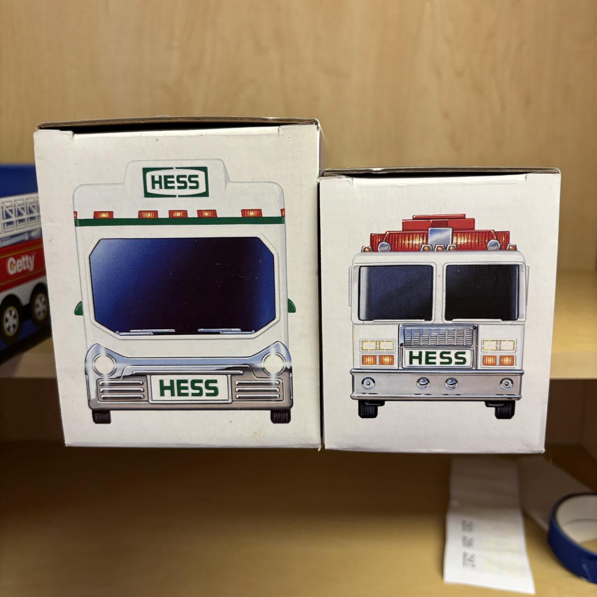 LOT 294: New/Old Stock Toys: Hess Trucks 2000 & 1998, Mobil Tow Truck, Getty, Sunoco & BP Fire Truck
