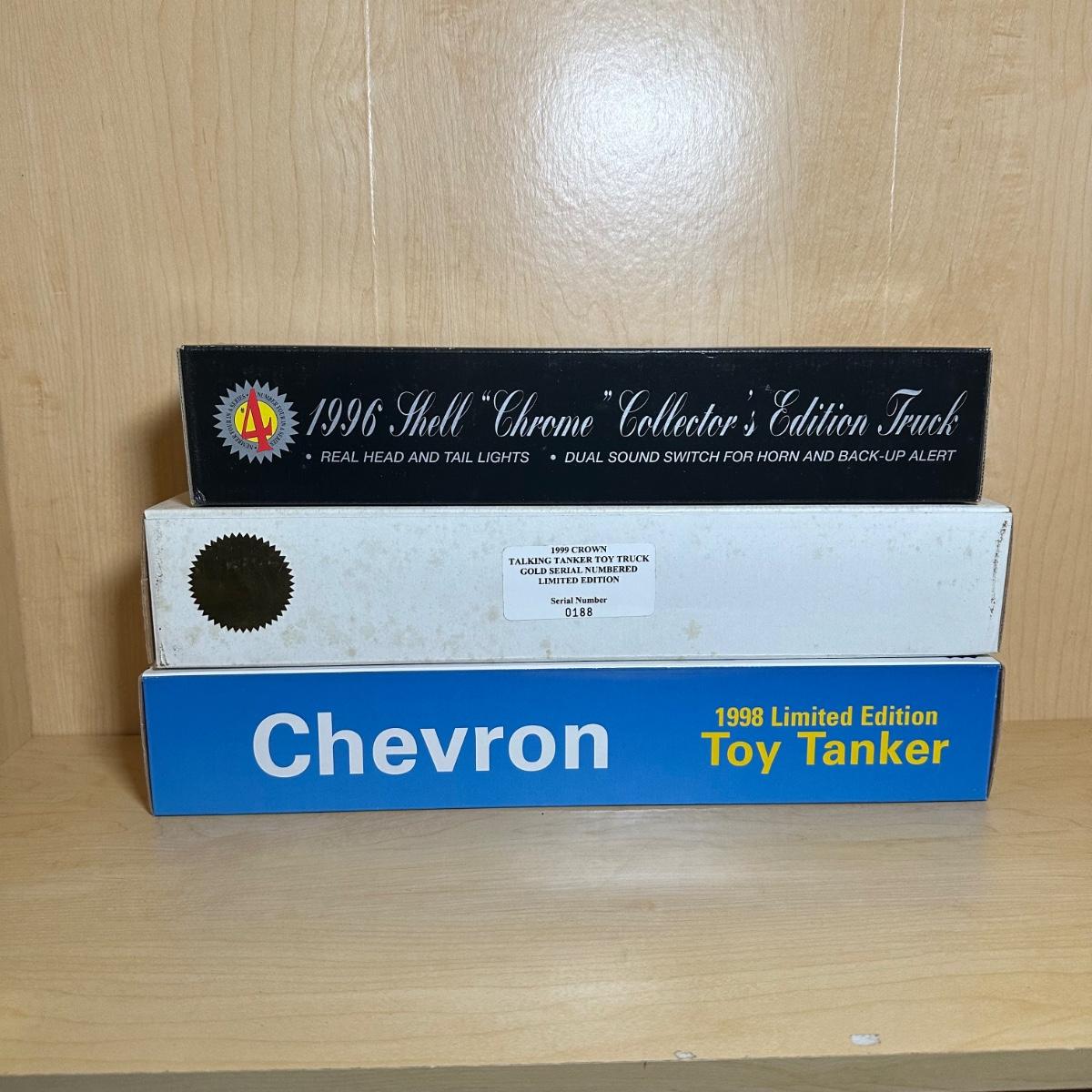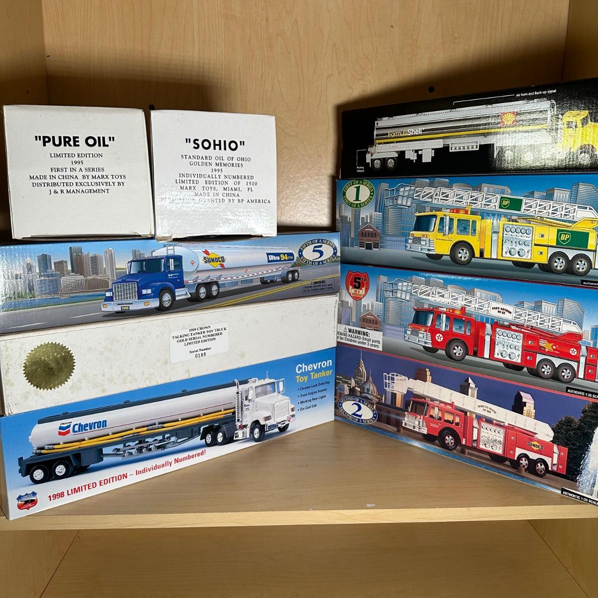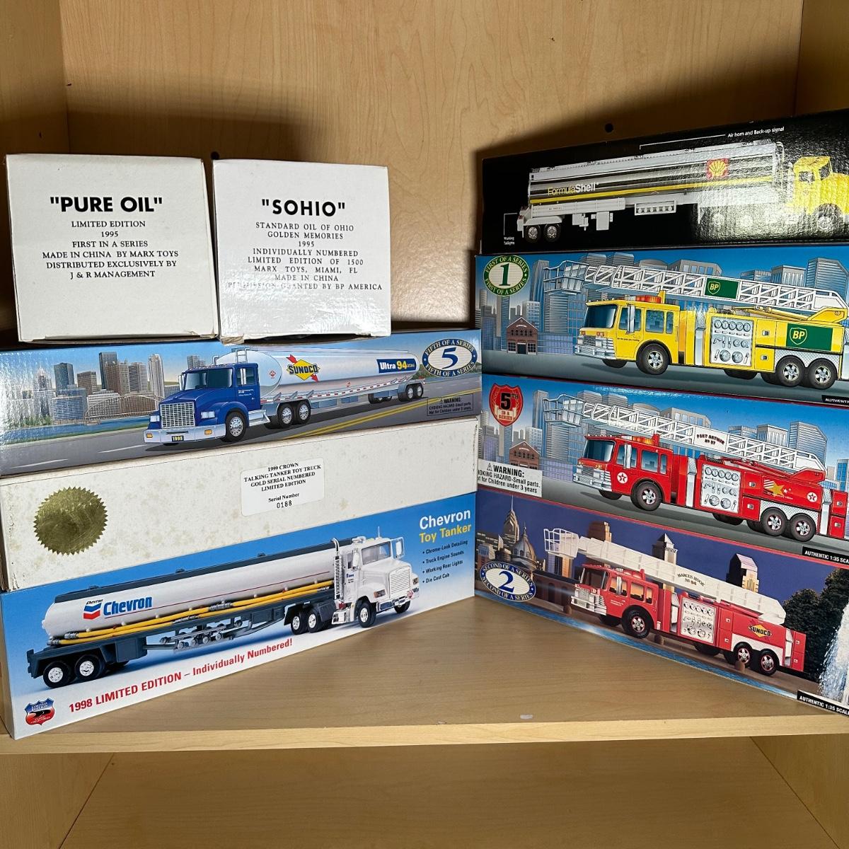 LOT 323: Model Trucks! Chevron Toy Tanker, Bp Firetruck, Sunoco Talking Tanker Truck & More