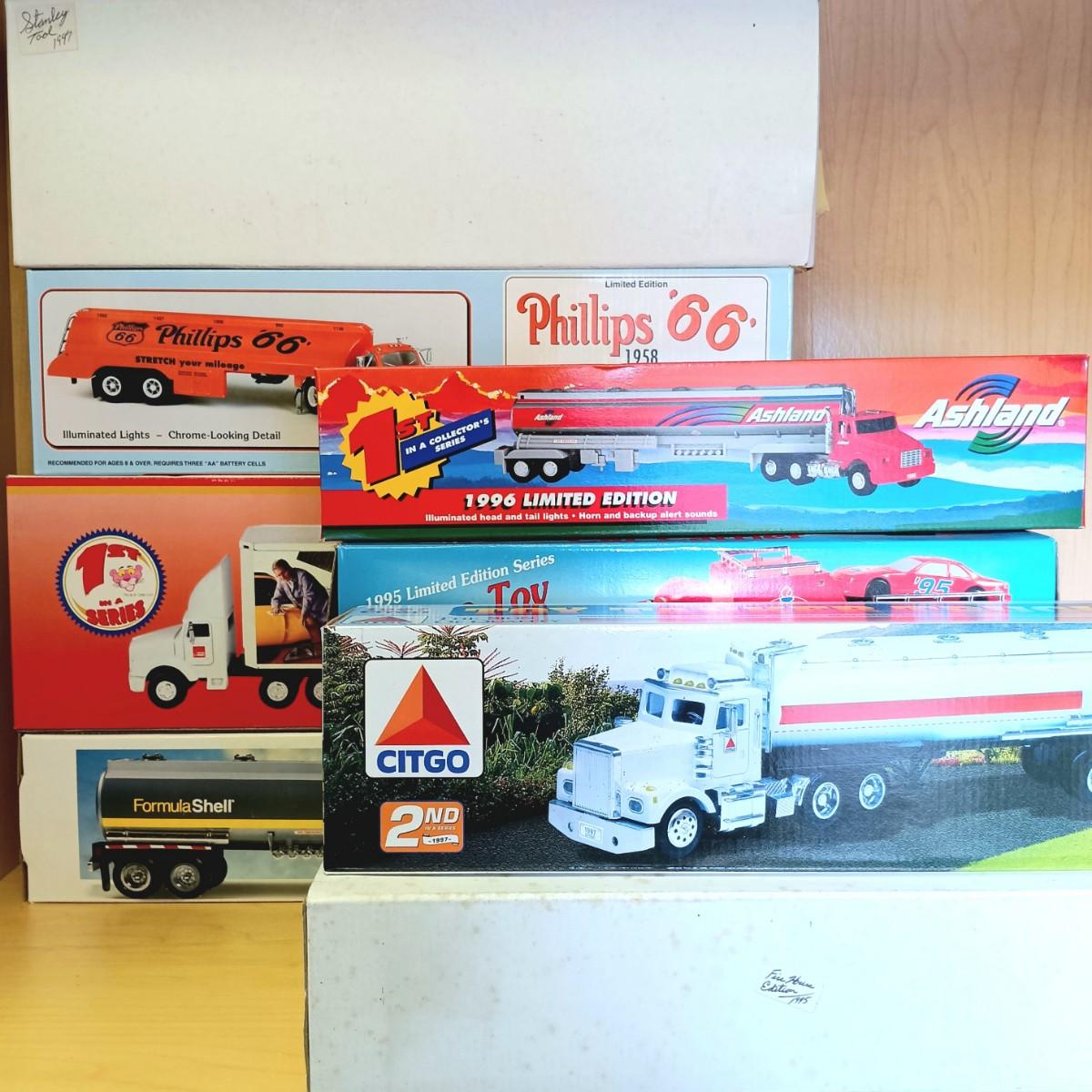 LOT 326: 1st in Series 1996 Limited Edition Ashland Tanker Truck, Limited Edition Phillips '66' 1958 "B" Mack Tanker Truck, Citgo, Shell, Owens Corning, Stanley, Sears, & More