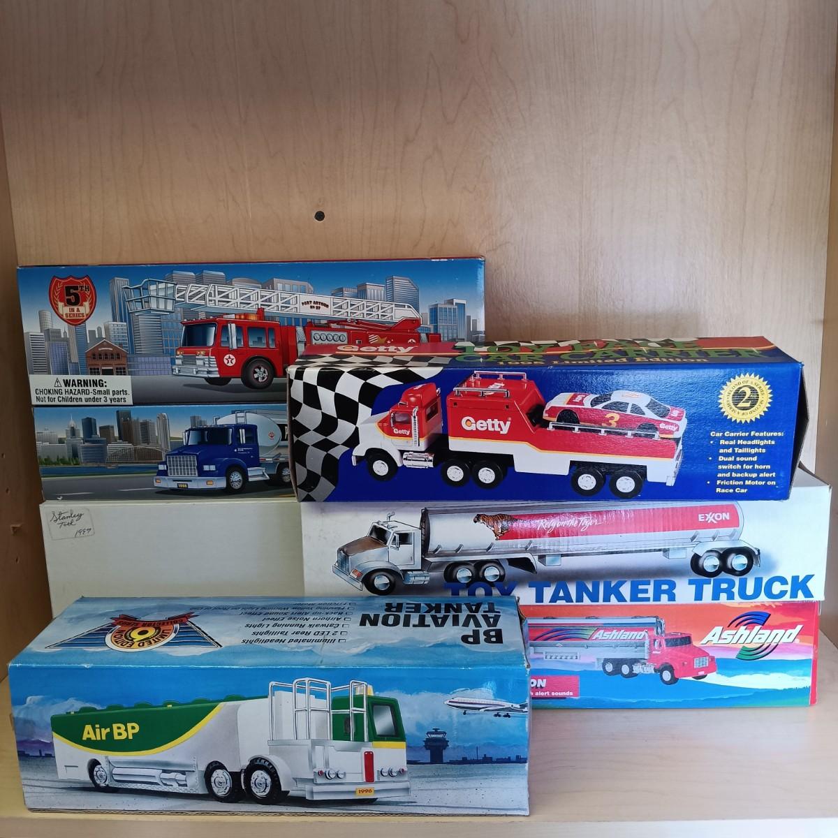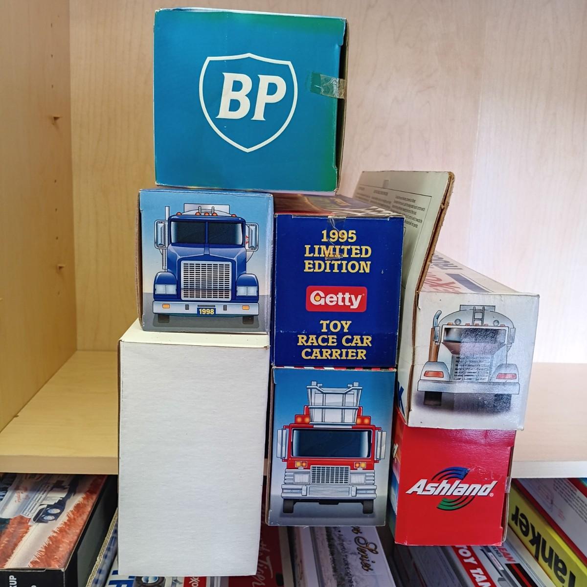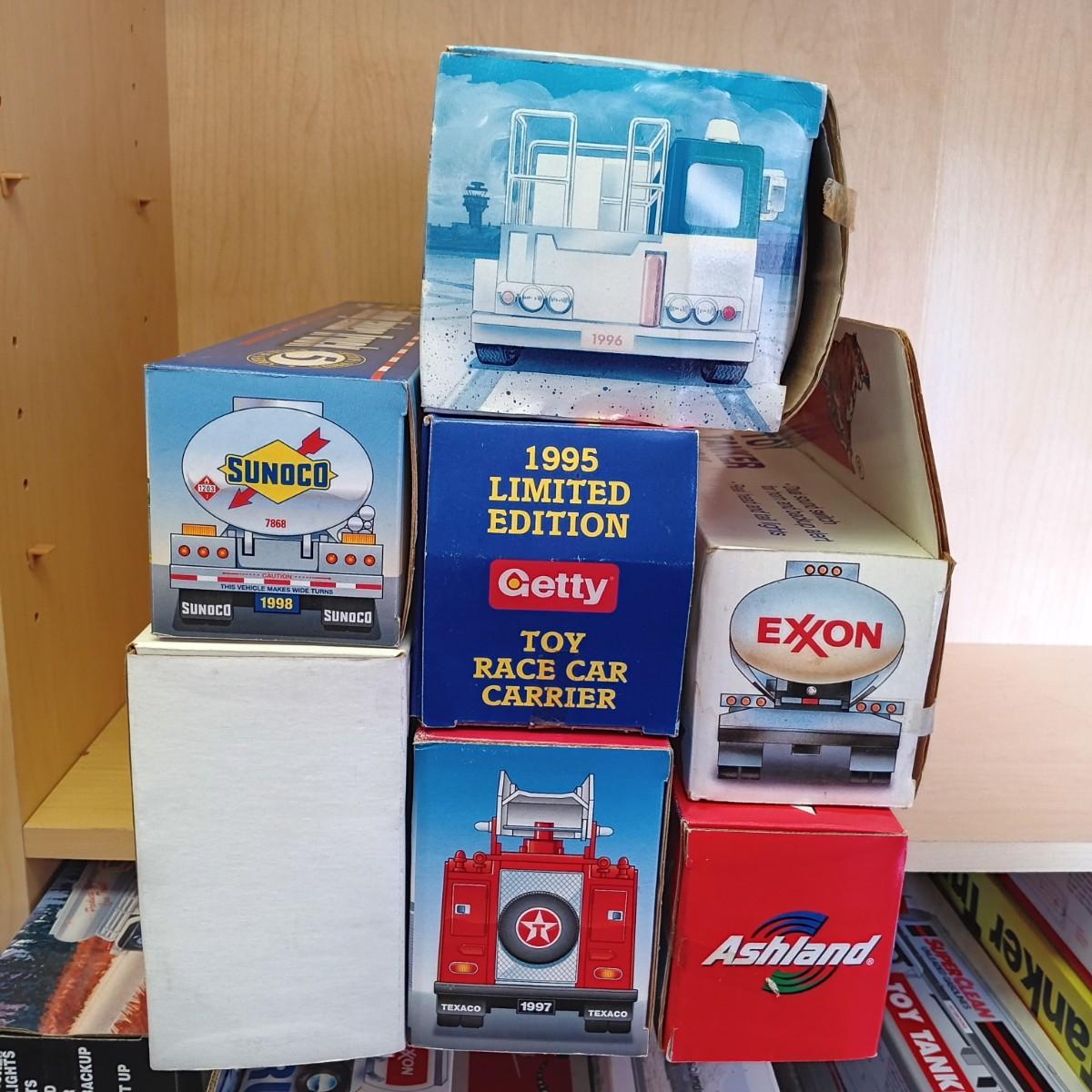 LOT 332: 2nd in Series 1995 Getty Limited Edition Toy Race Car Carrier, 1996 Air BP Aviation Tanker, Stanley, Ashland, Exxon, Texaco, & More