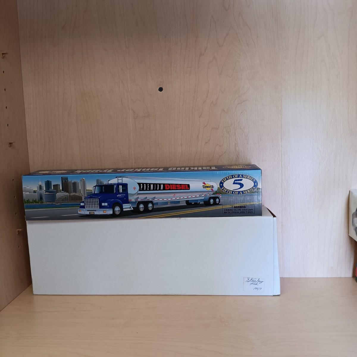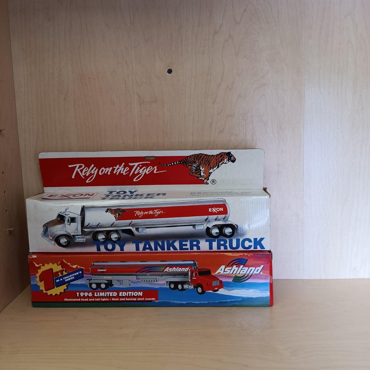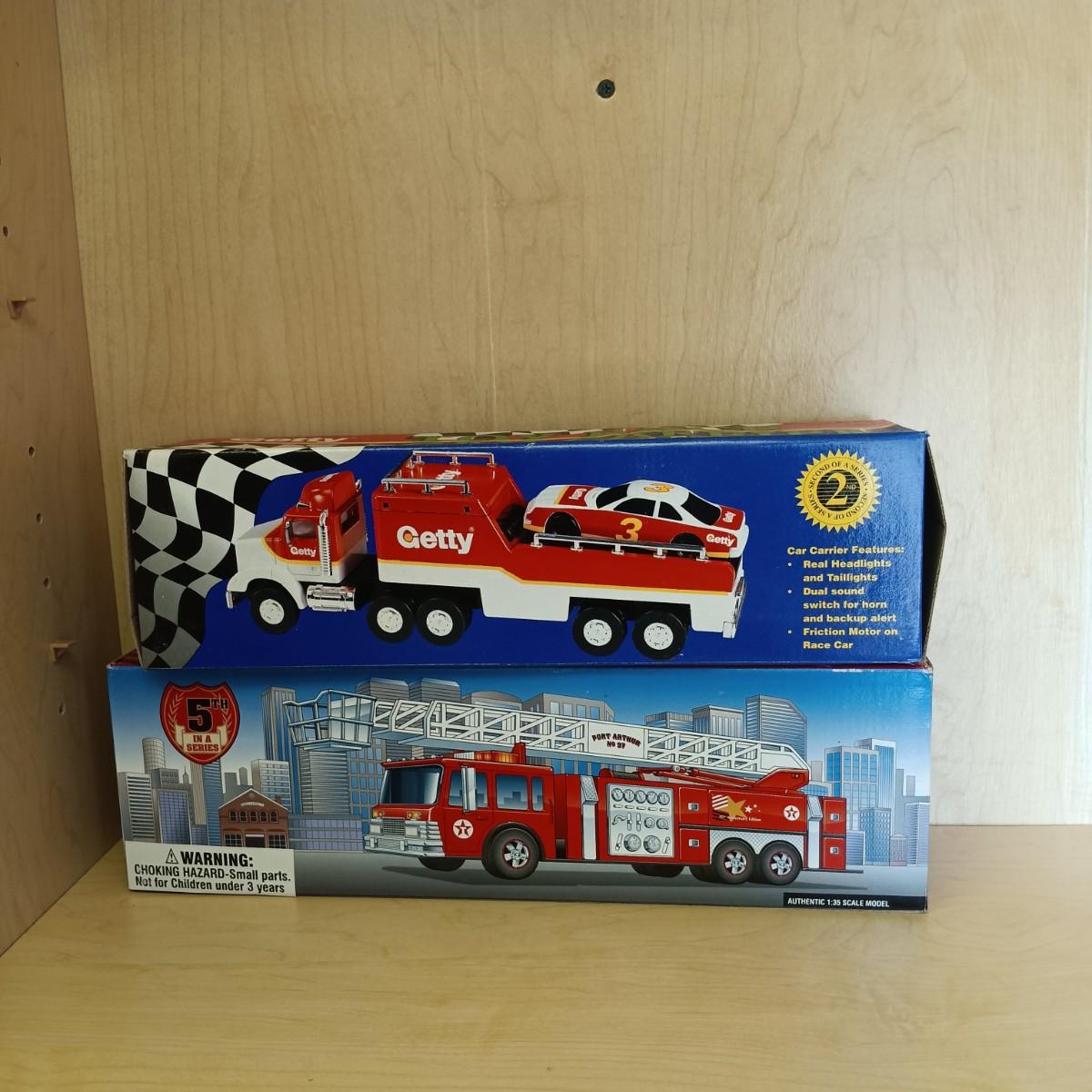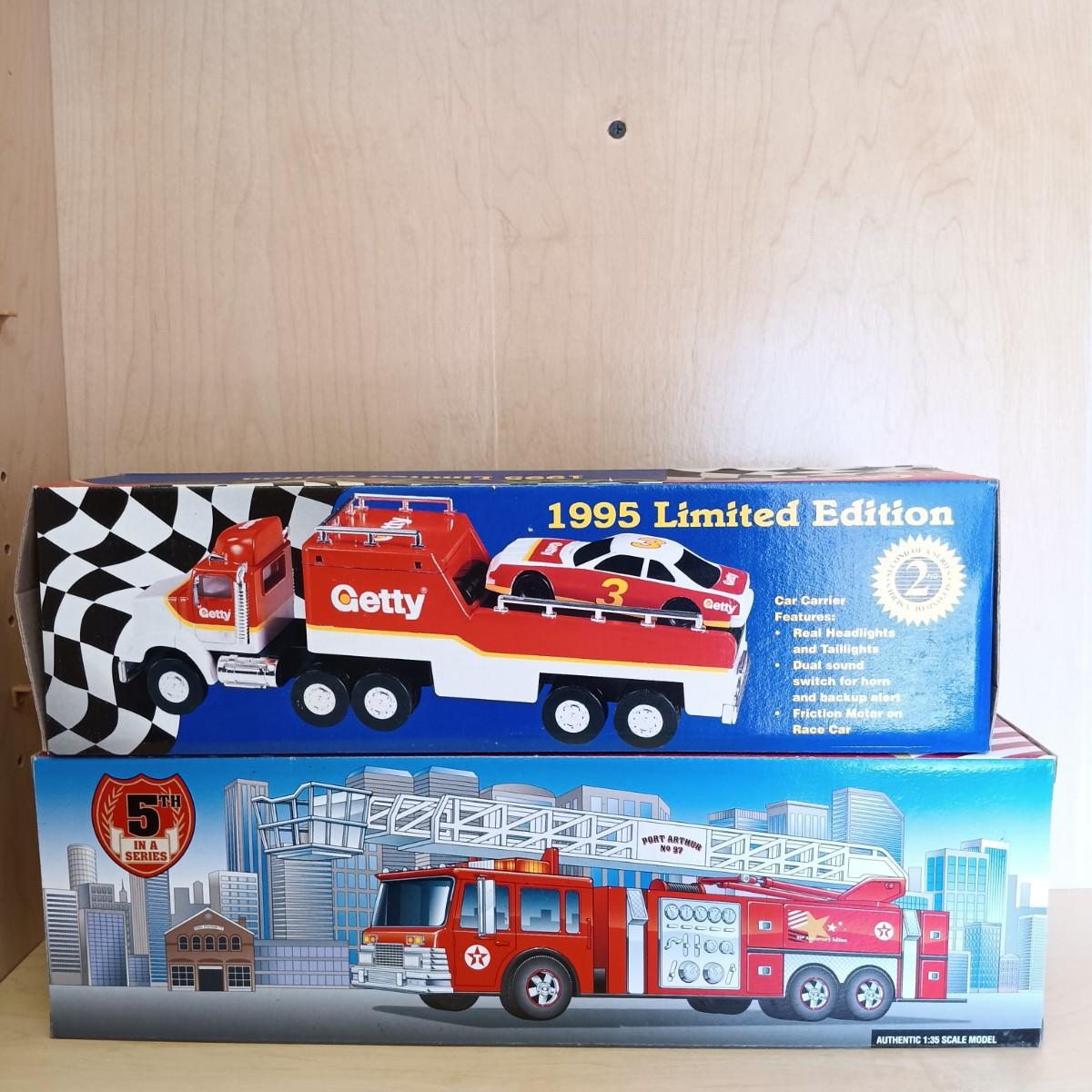 LOT 332: 2nd in Series 1995 Getty Limited Edition Toy Race Car Carrier, 1996 Air BP Aviation Tanker, Stanley, Ashland, Exxon, Texaco, & More