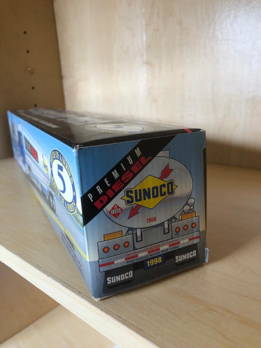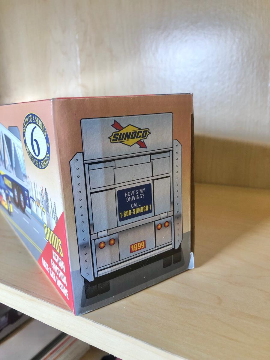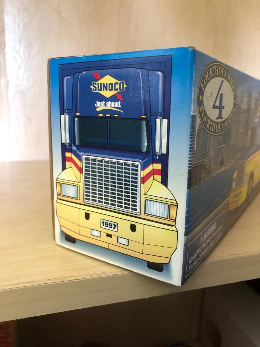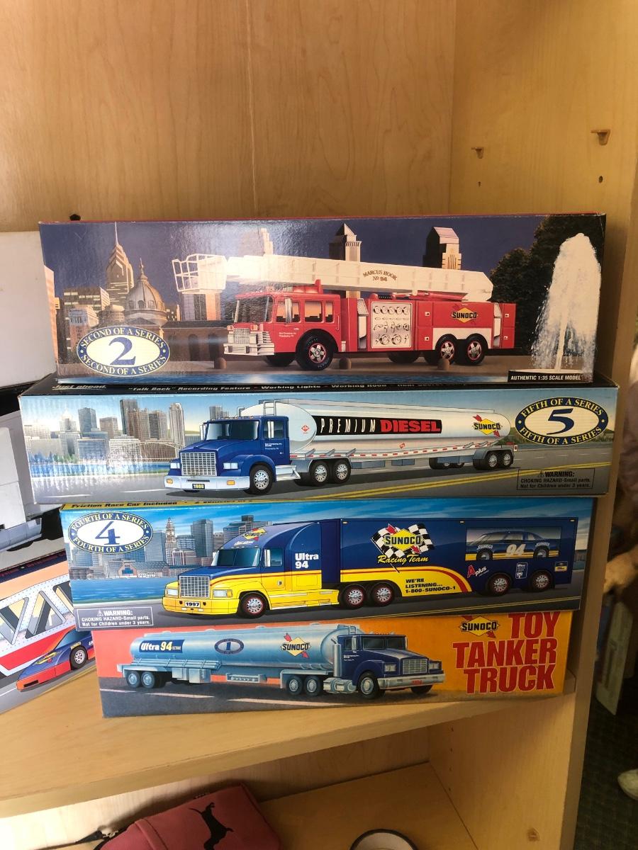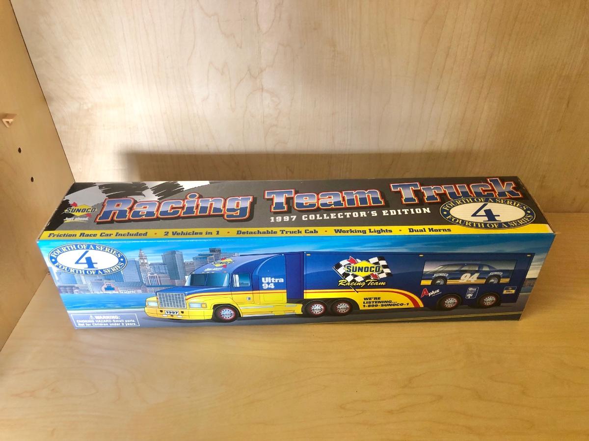 LOT 355: Sunoco 1999 Collector's Edition Car Carrier 6th in Series, Texaco 1996 Izzy's Olympic Games Toy Car Carrier, 10th Anniversary 2003 Serial Numbered Truck, Sunoco 1997 Racing Team Truck & More