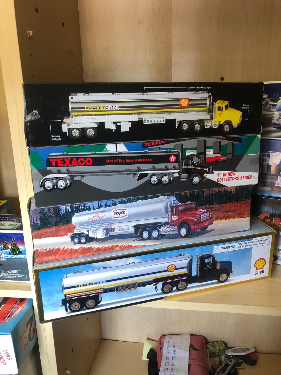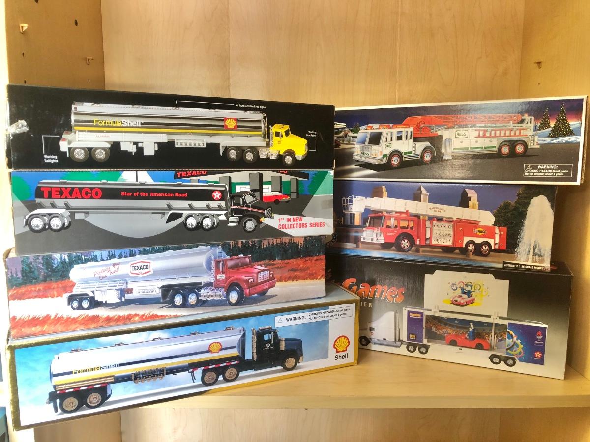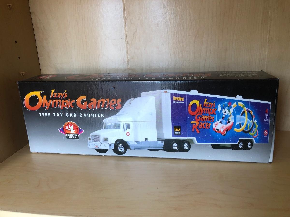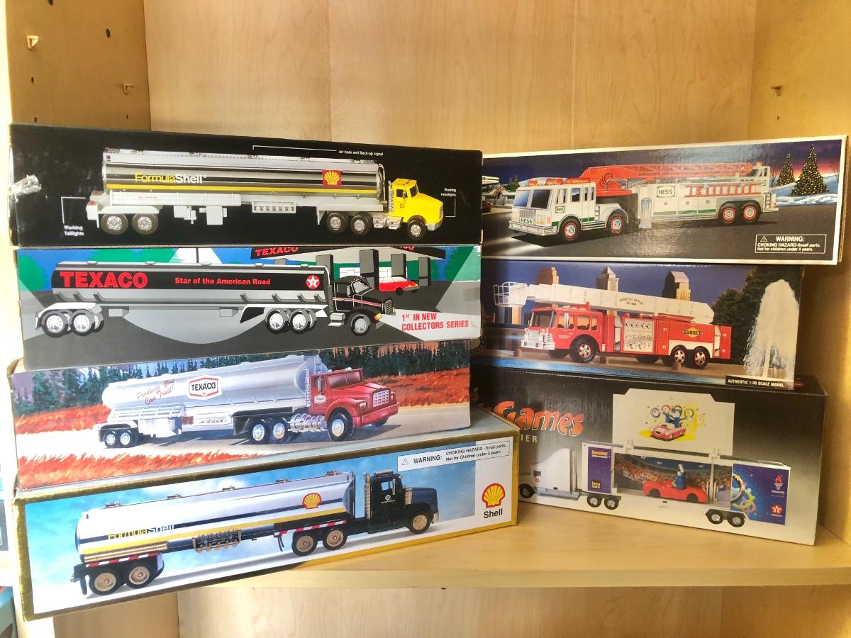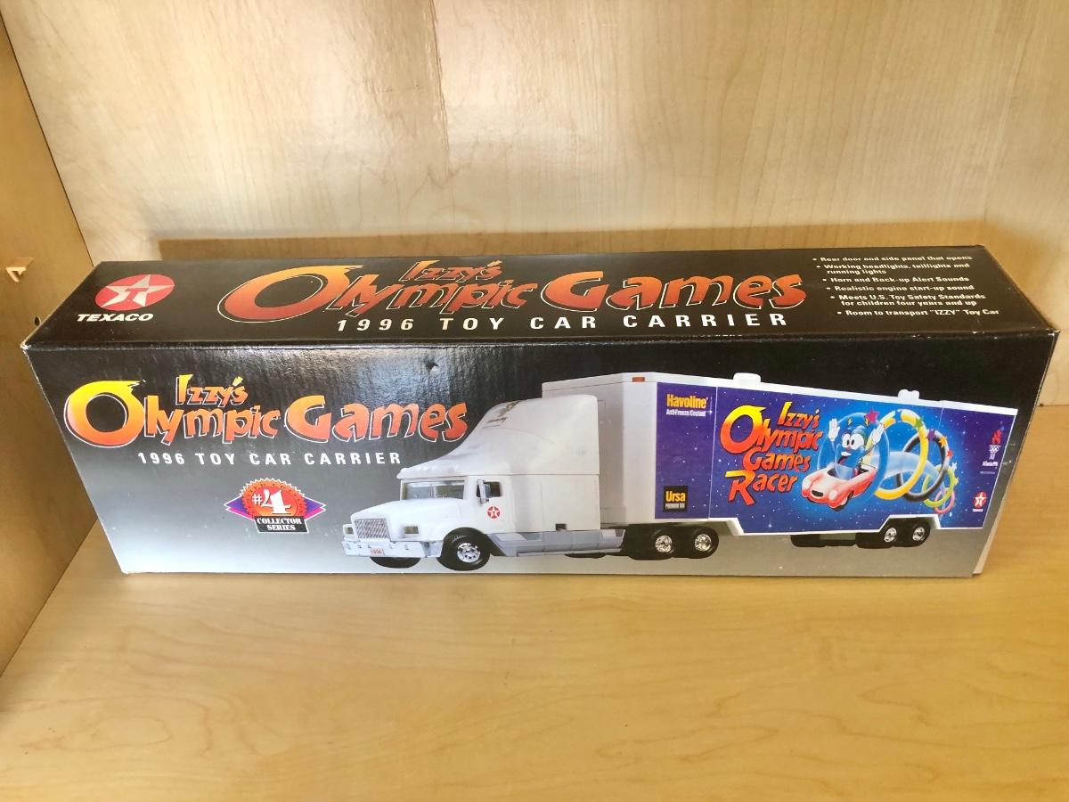 LOT 364: Collectible Trucks - Texaco Tankers, Shell Tankers, Texaco Izzy's Olympic Games 1996 Toy Car Carrier, Hess Fire Truck & More