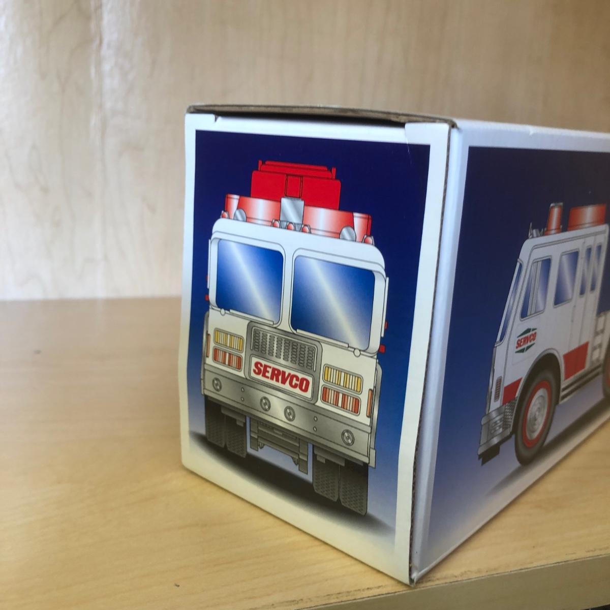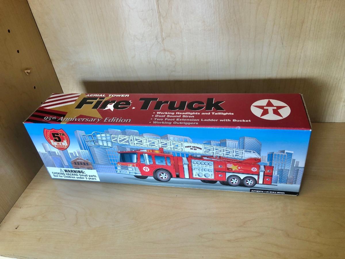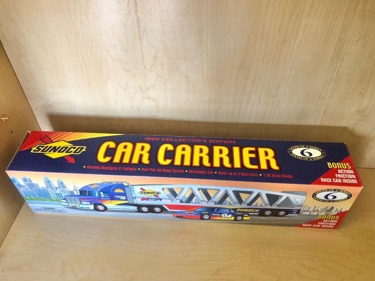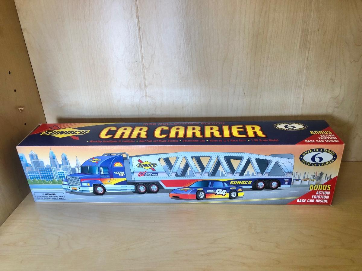 LOT 328: Collectible Toy Trucks - Pink Panther Owens Corning 1st in Series Transport Truck, Servco Fire Truck, Texaco Fire Truck, Sunoco Car Carrier & More
