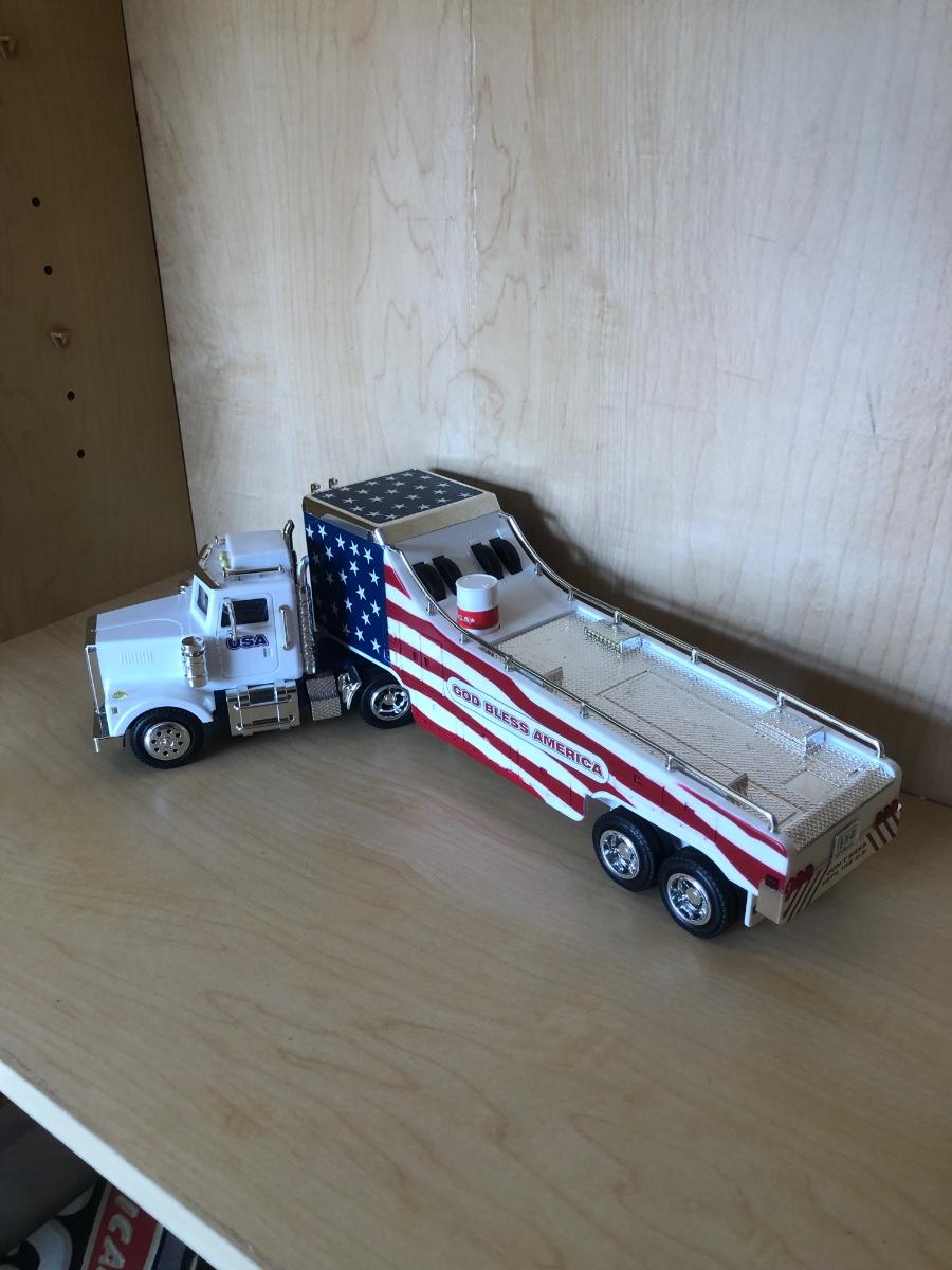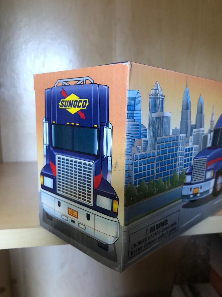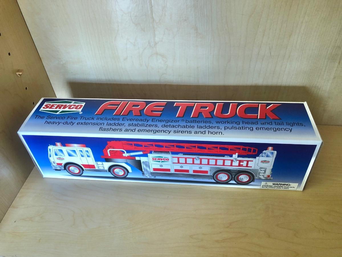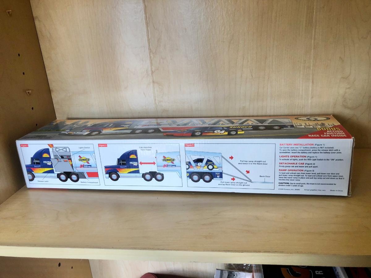 LOT 328: Collectible Toy Trucks - Pink Panther Owens Corning 1st in Series Transport Truck, Servco Fire Truck, Texaco Fire Truck, Sunoco Car Carrier & More