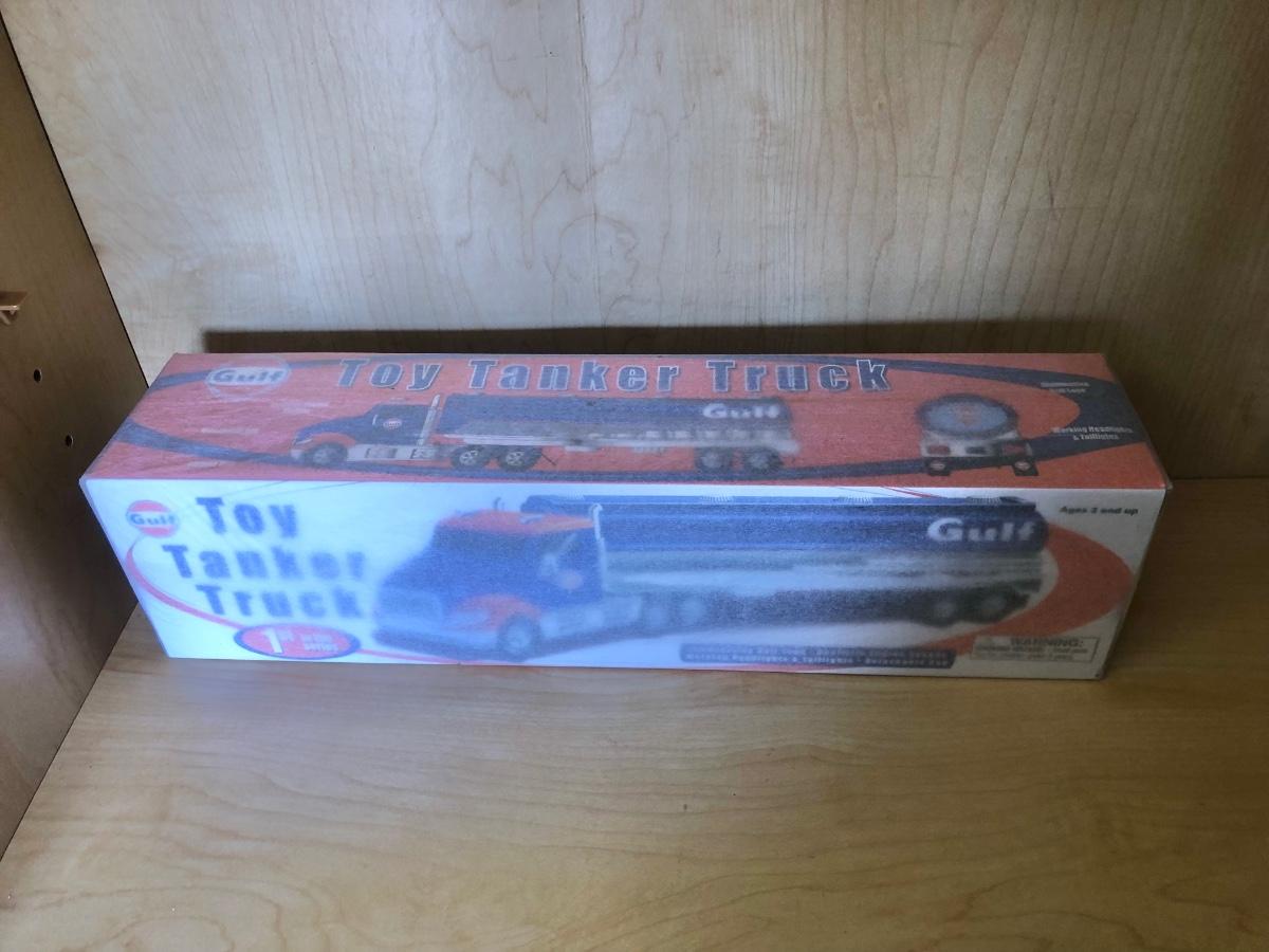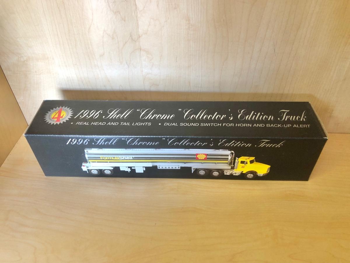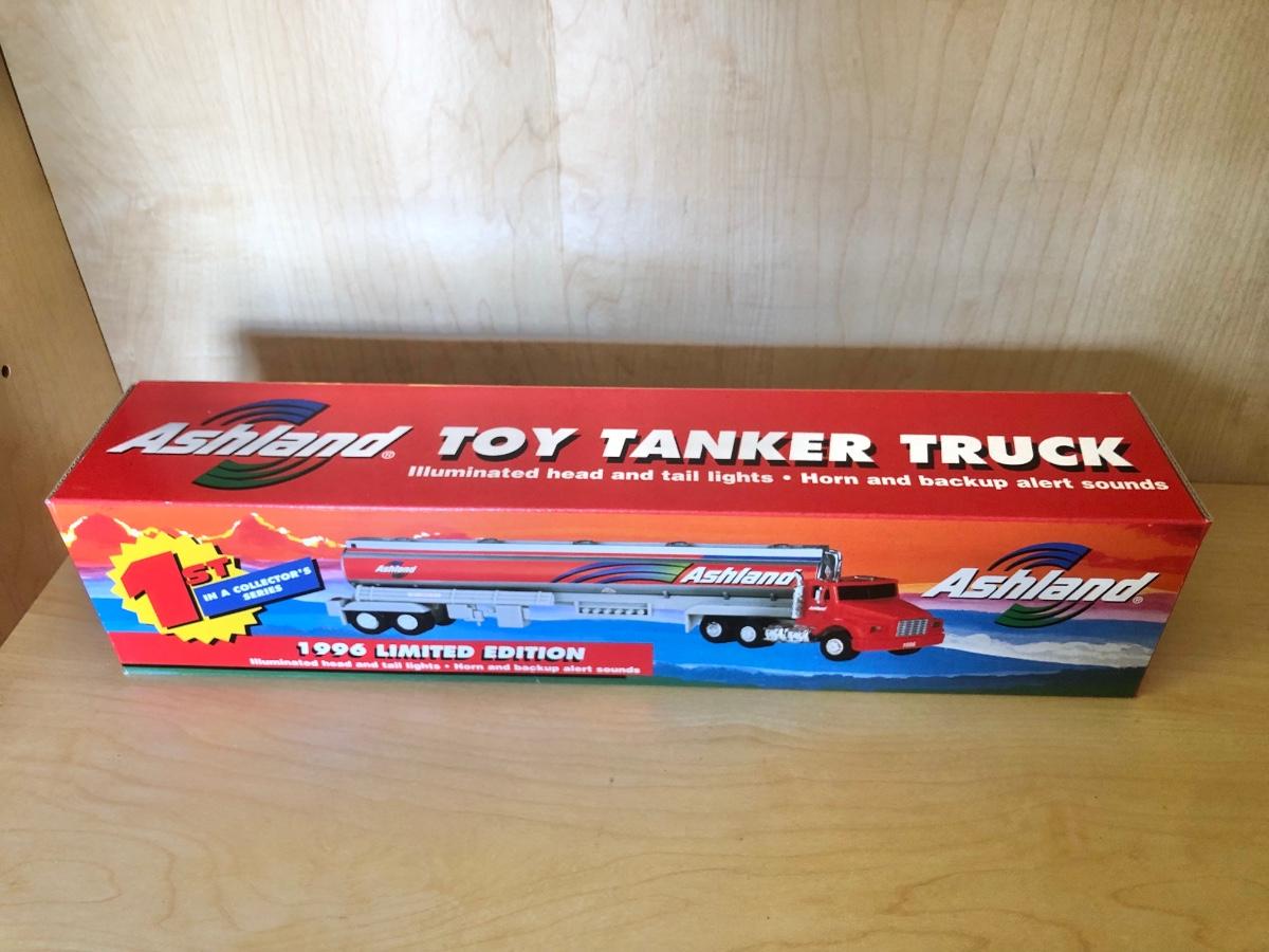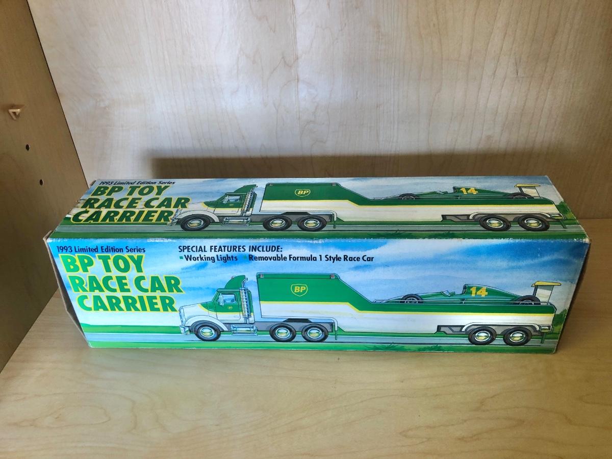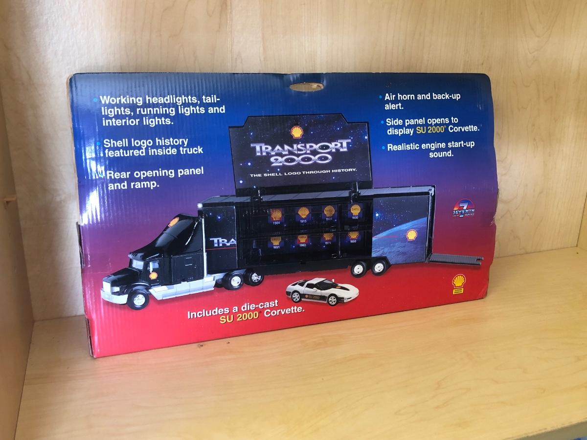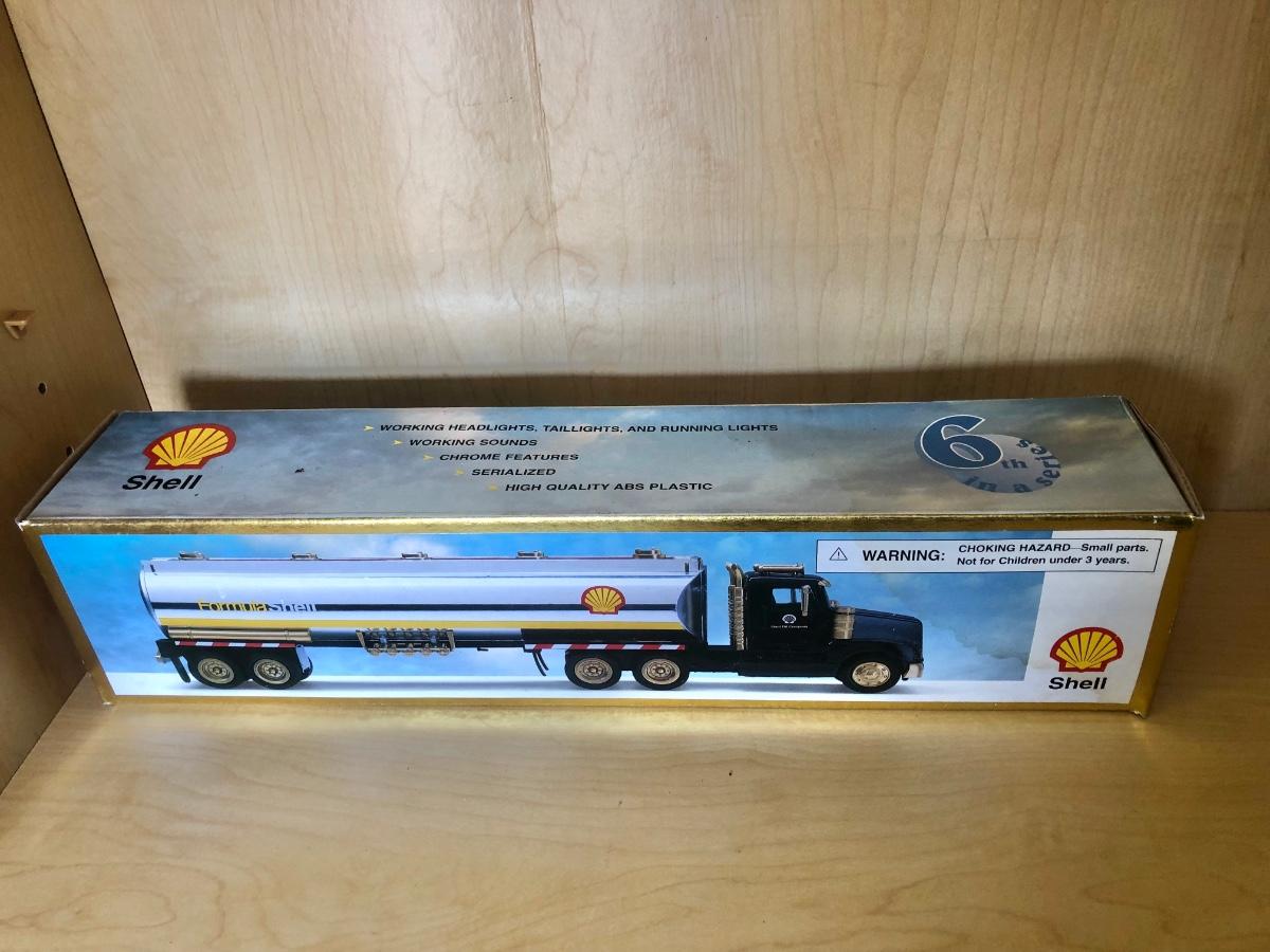 LOT 369: Collectible Trucks - Shell Transport 2000 Race Car Transporter, BP Race Car Carrier, Gulf Toy Tanker, 1996 Ashland Toy Tanker Truck & More