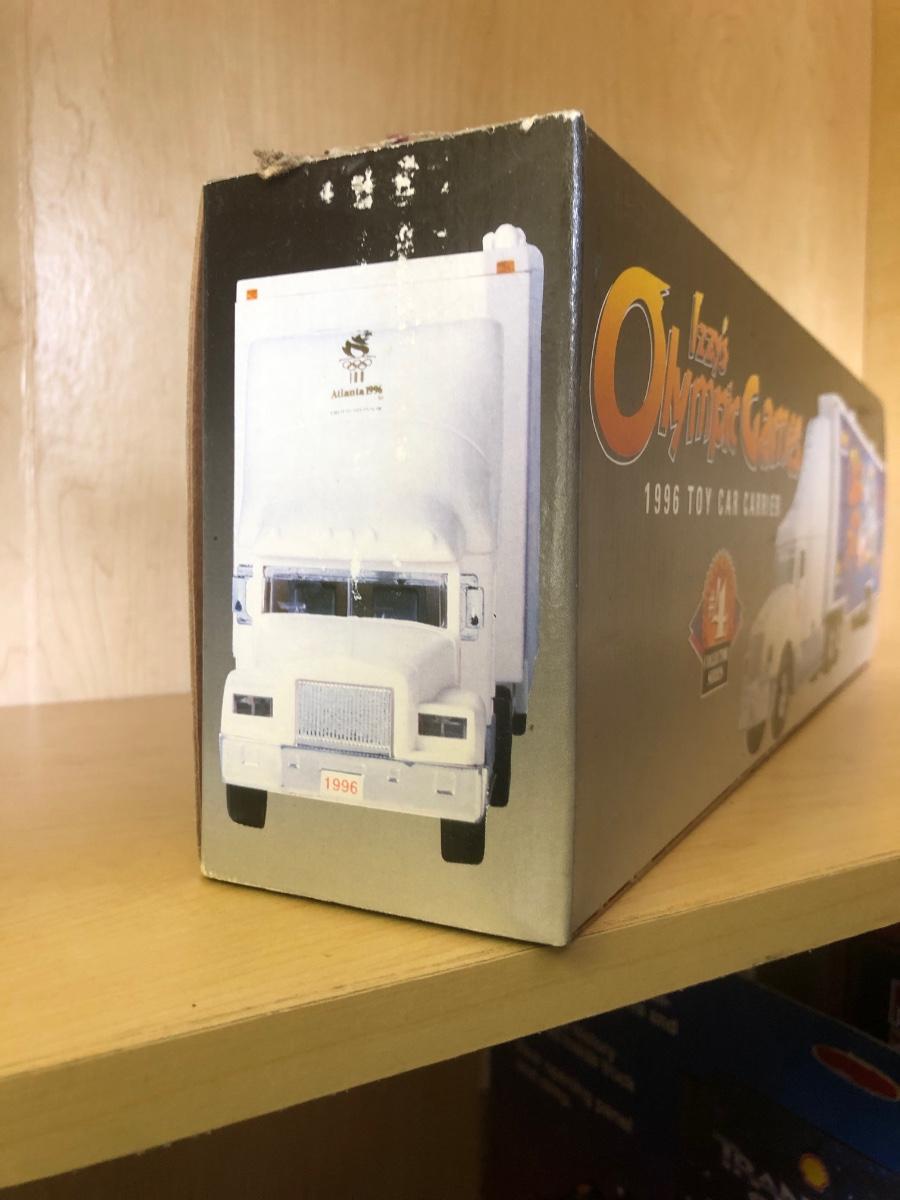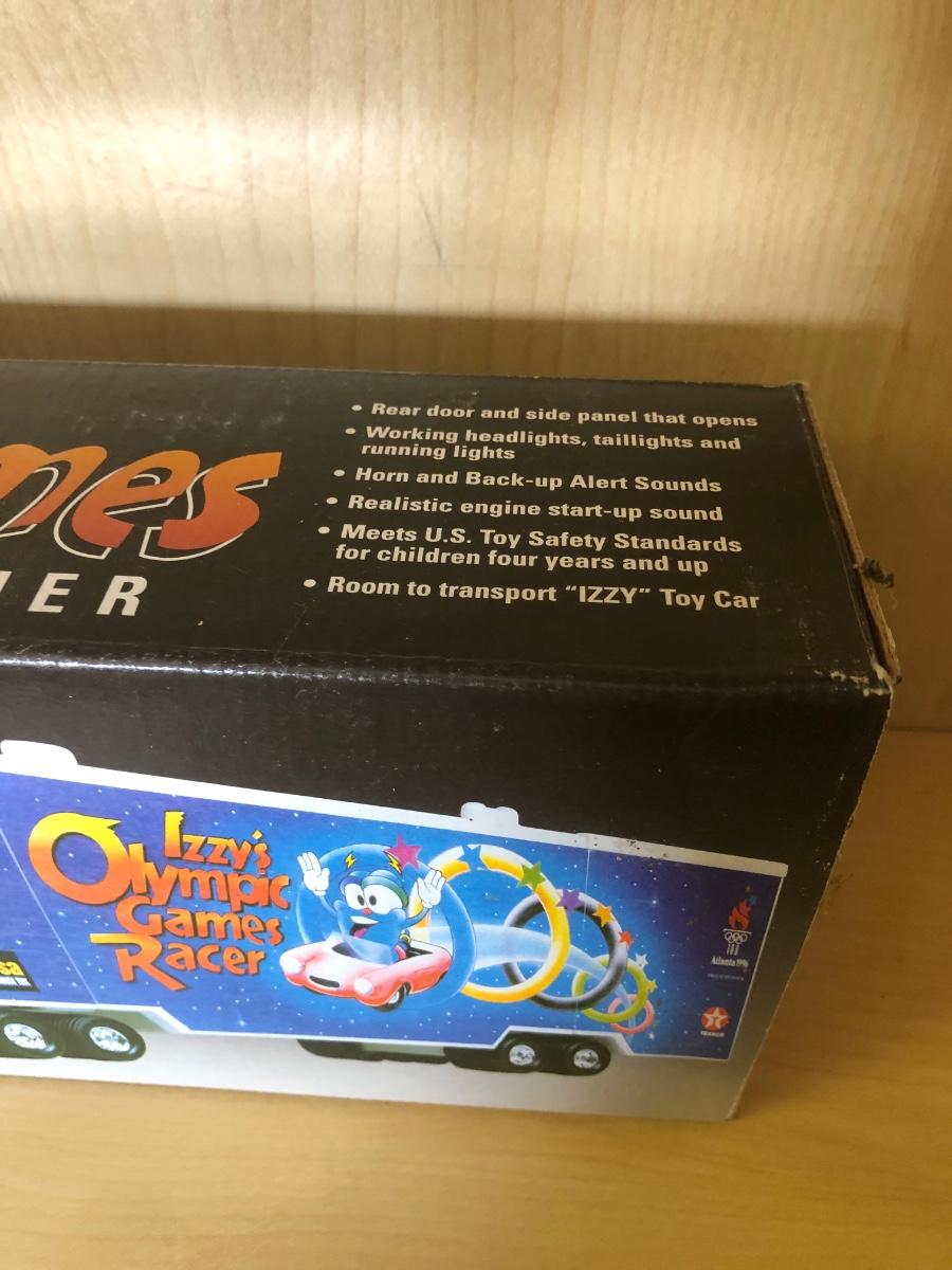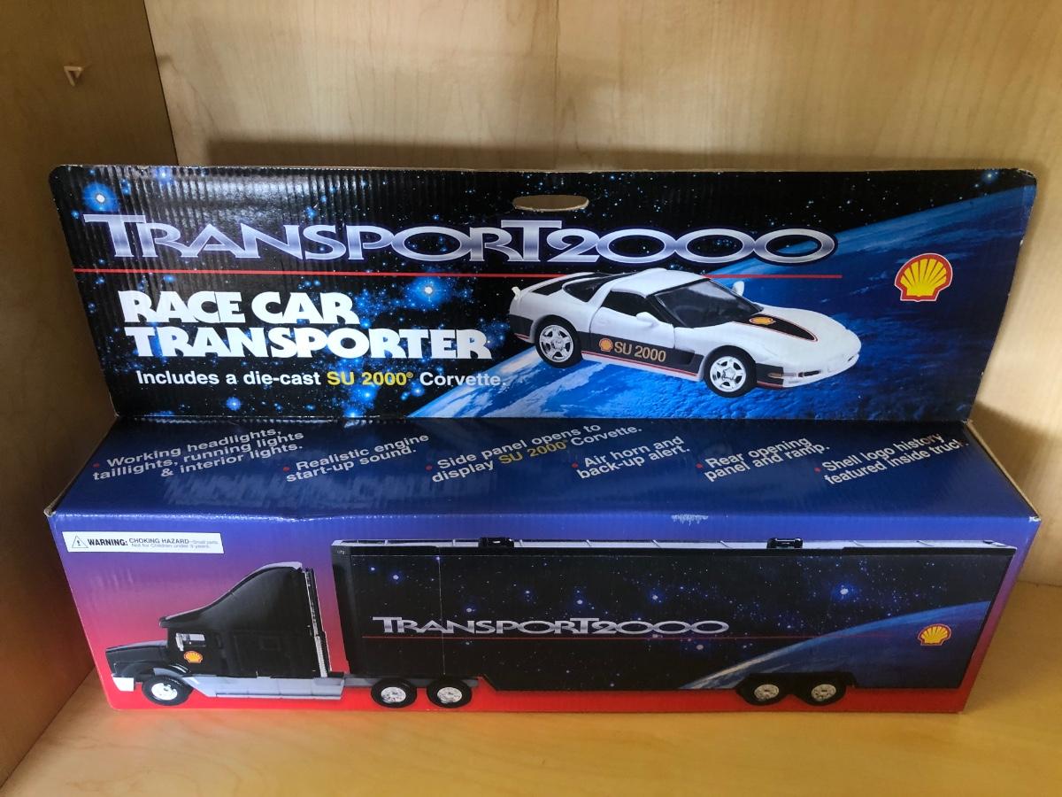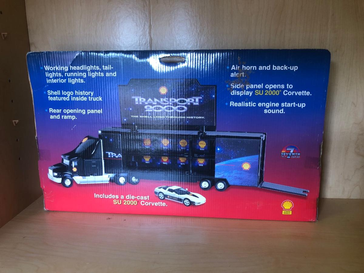 LOT 370: Collectible Trucks - 1st Edition Marvel Mystery Oil Truck Bank, Texaco Izzy’s Olympic Games 1996 Car Carrier, Shell Transport 2000 Race Car Transporter, 2000 Getty Transforming Truck & More