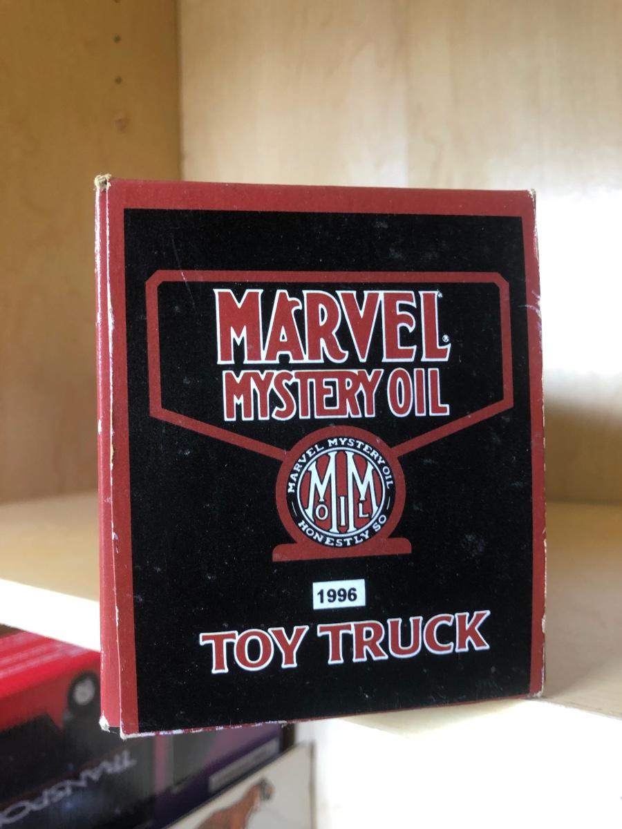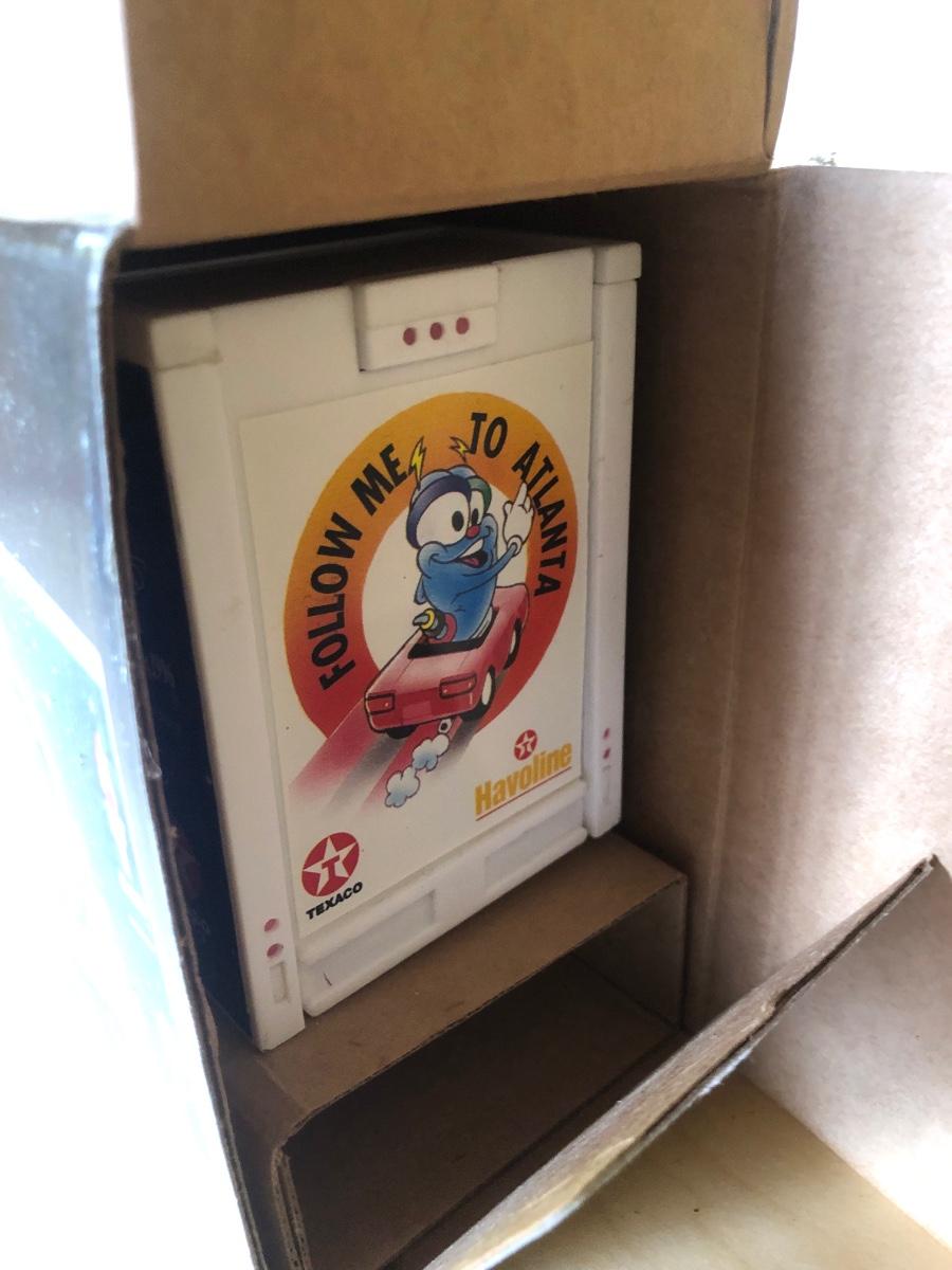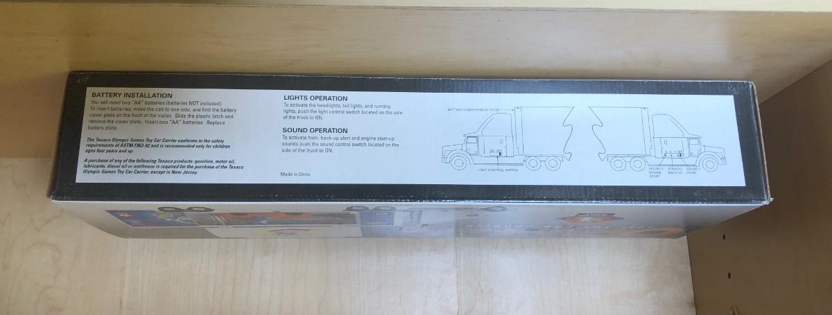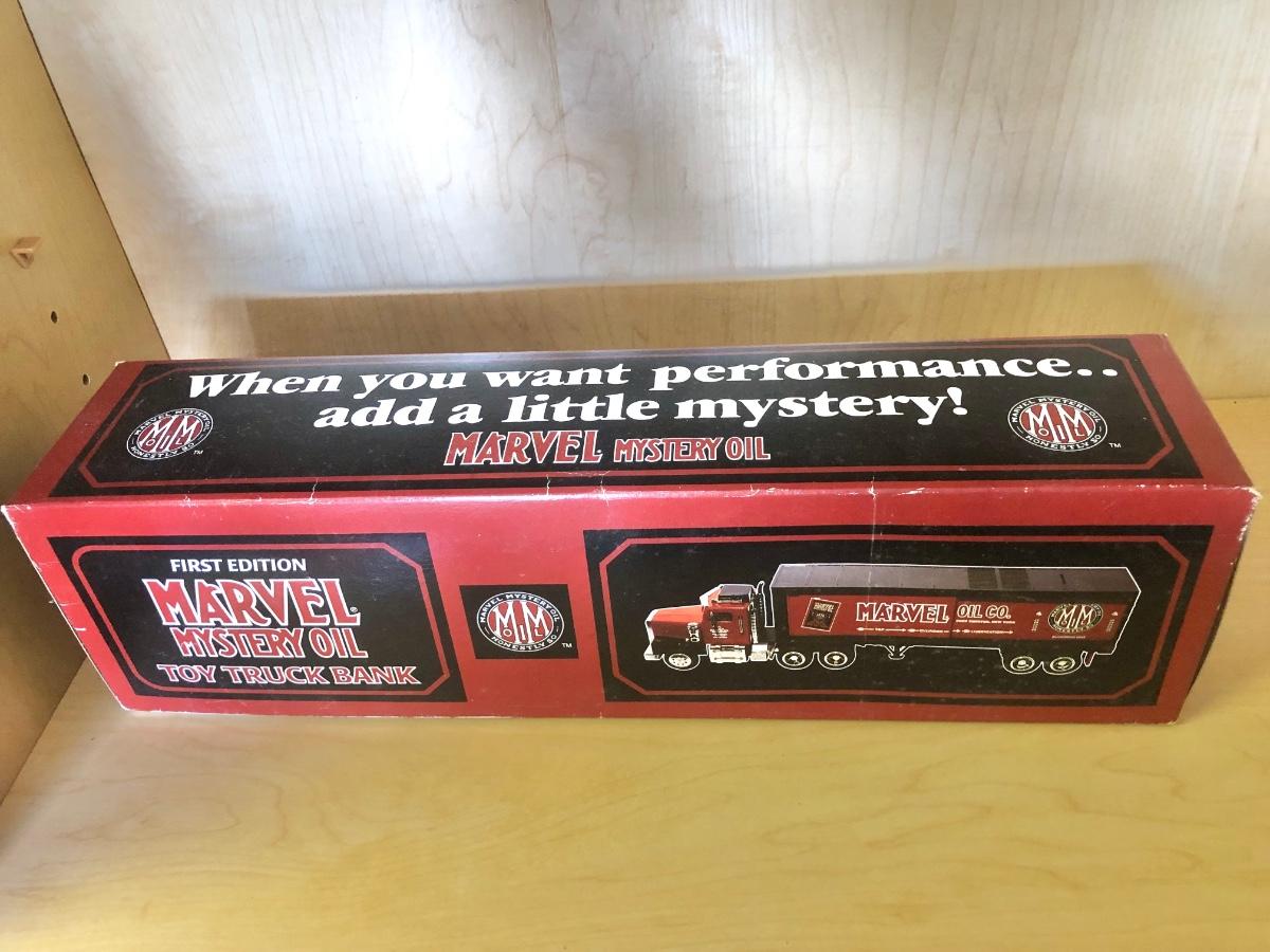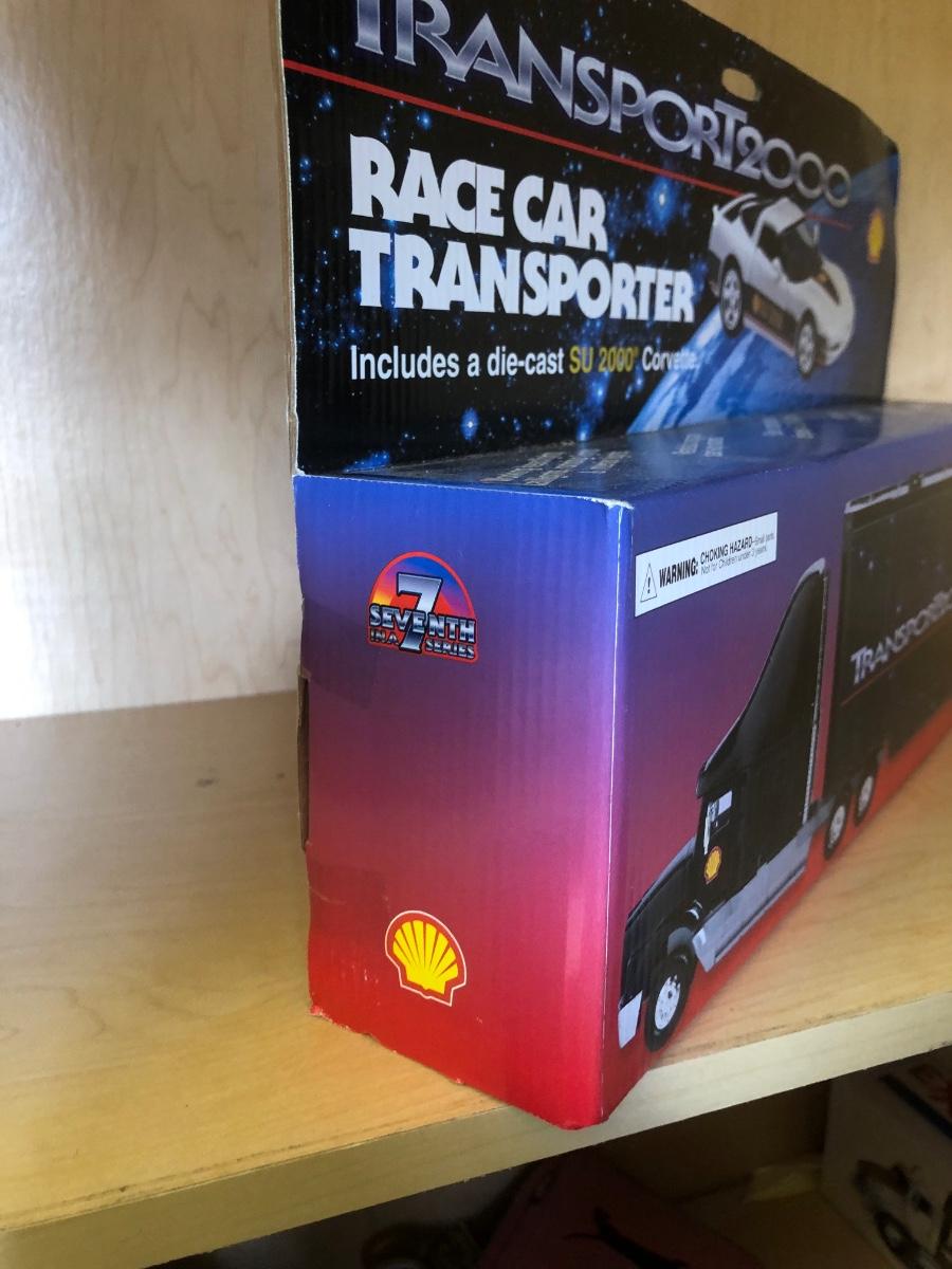 LOT 370: Collectible Trucks - 1st Edition Marvel Mystery Oil Truck Bank, Texaco Izzy’s Olympic Games 1996 Car Carrier, Shell Transport 2000 Race Car Transporter, 2000 Getty Transforming Truck & More