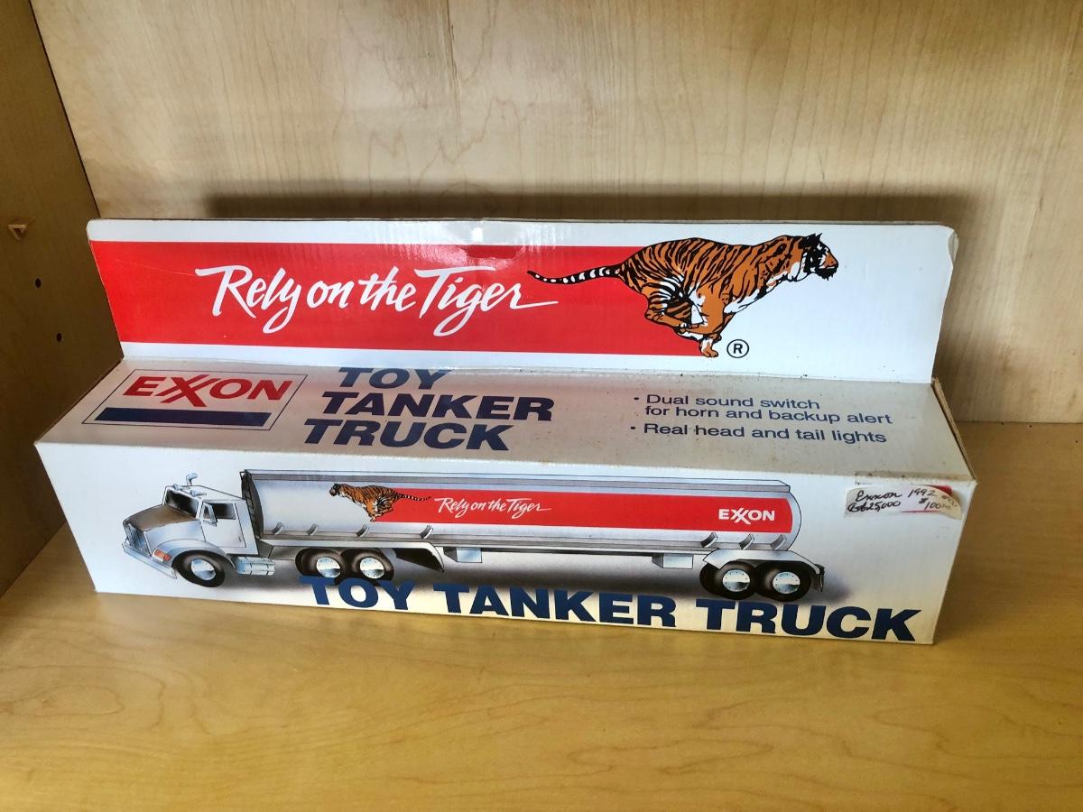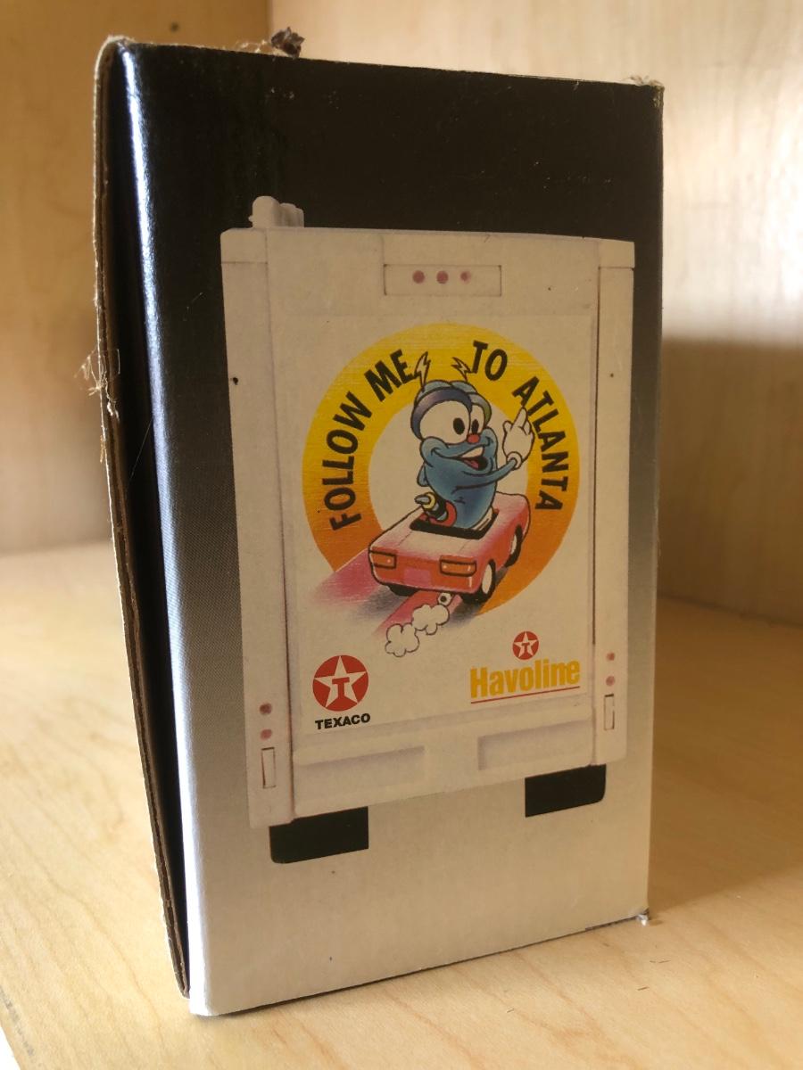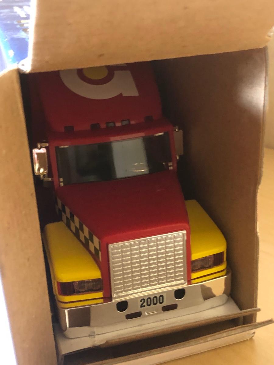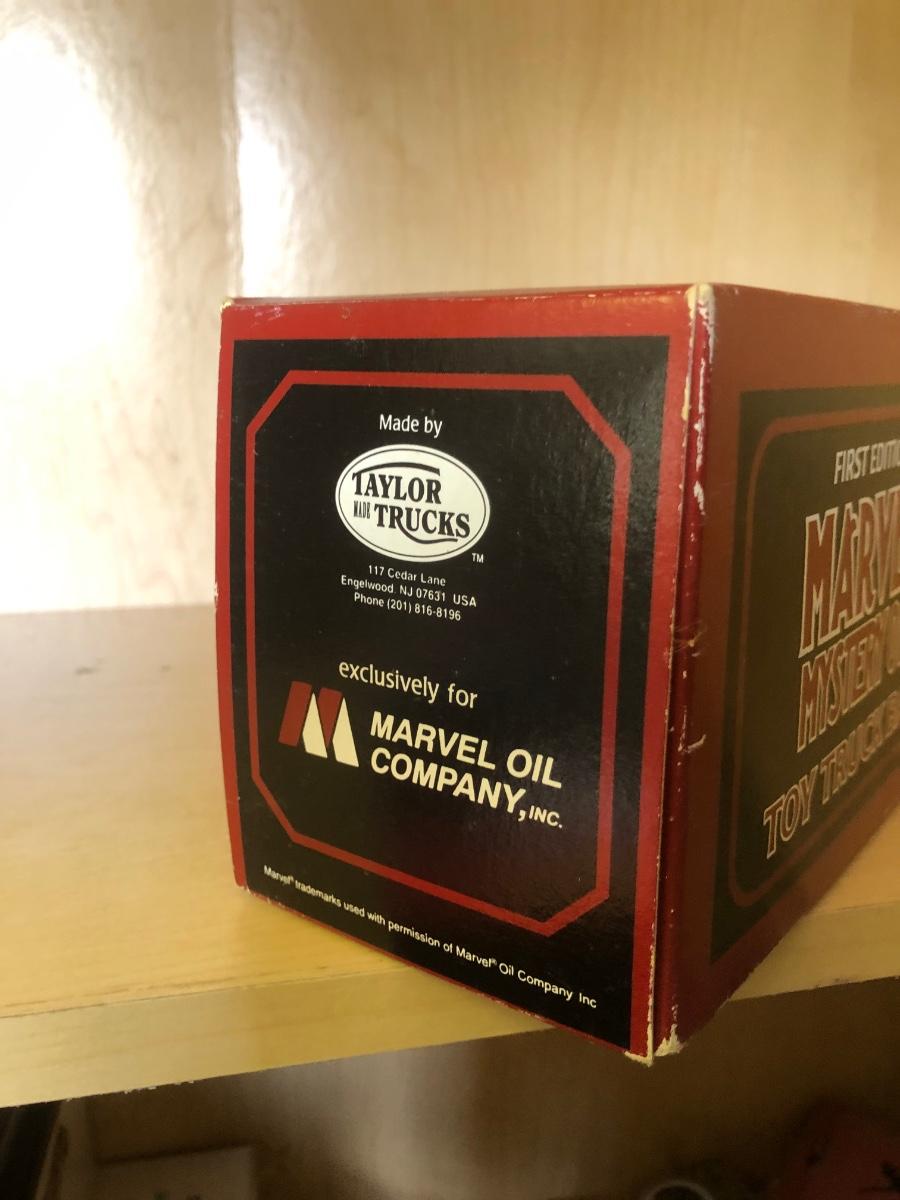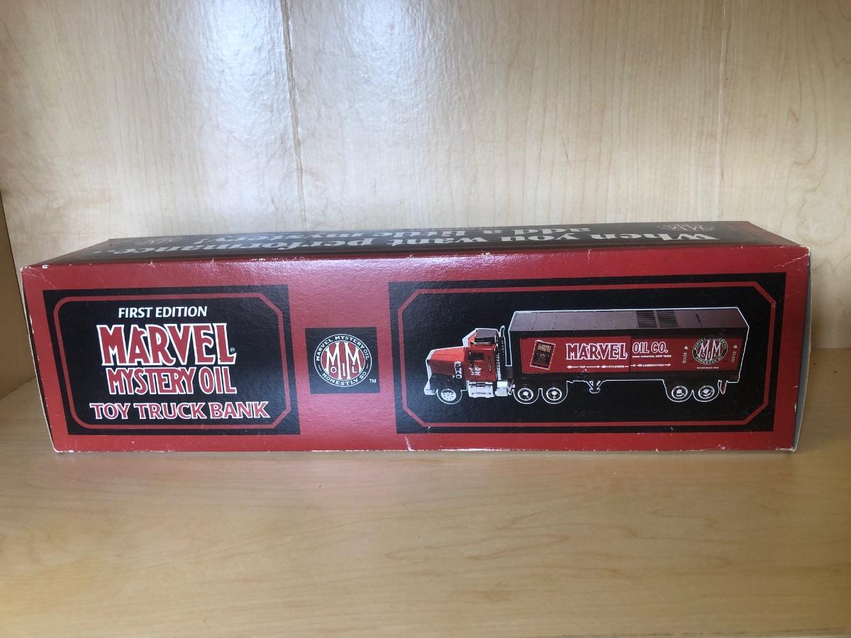 LOT 370: Collectible Trucks - 1st Edition Marvel Mystery Oil Truck Bank, Texaco Izzy’s Olympic Games 1996 Car Carrier, Shell Transport 2000 Race Car Transporter, 2000 Getty Transforming Truck & More