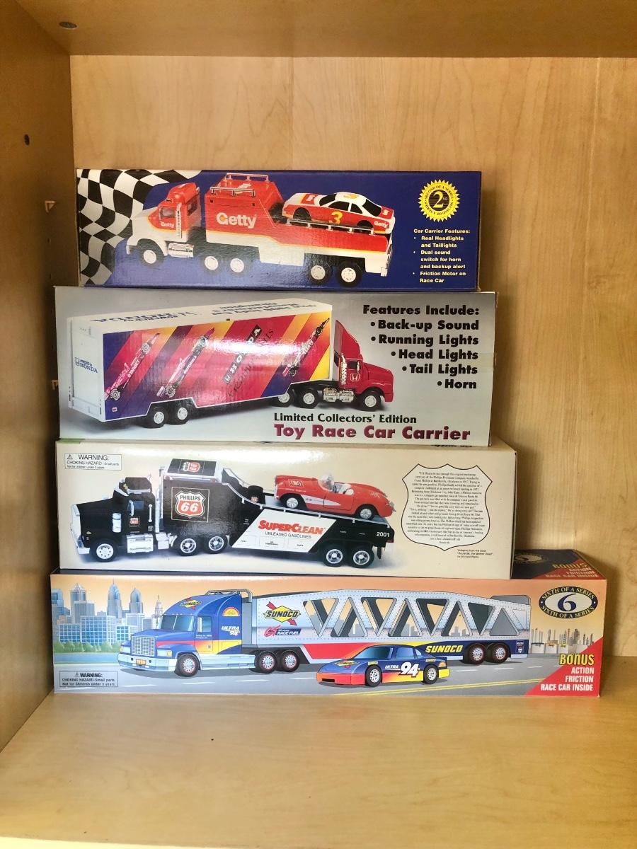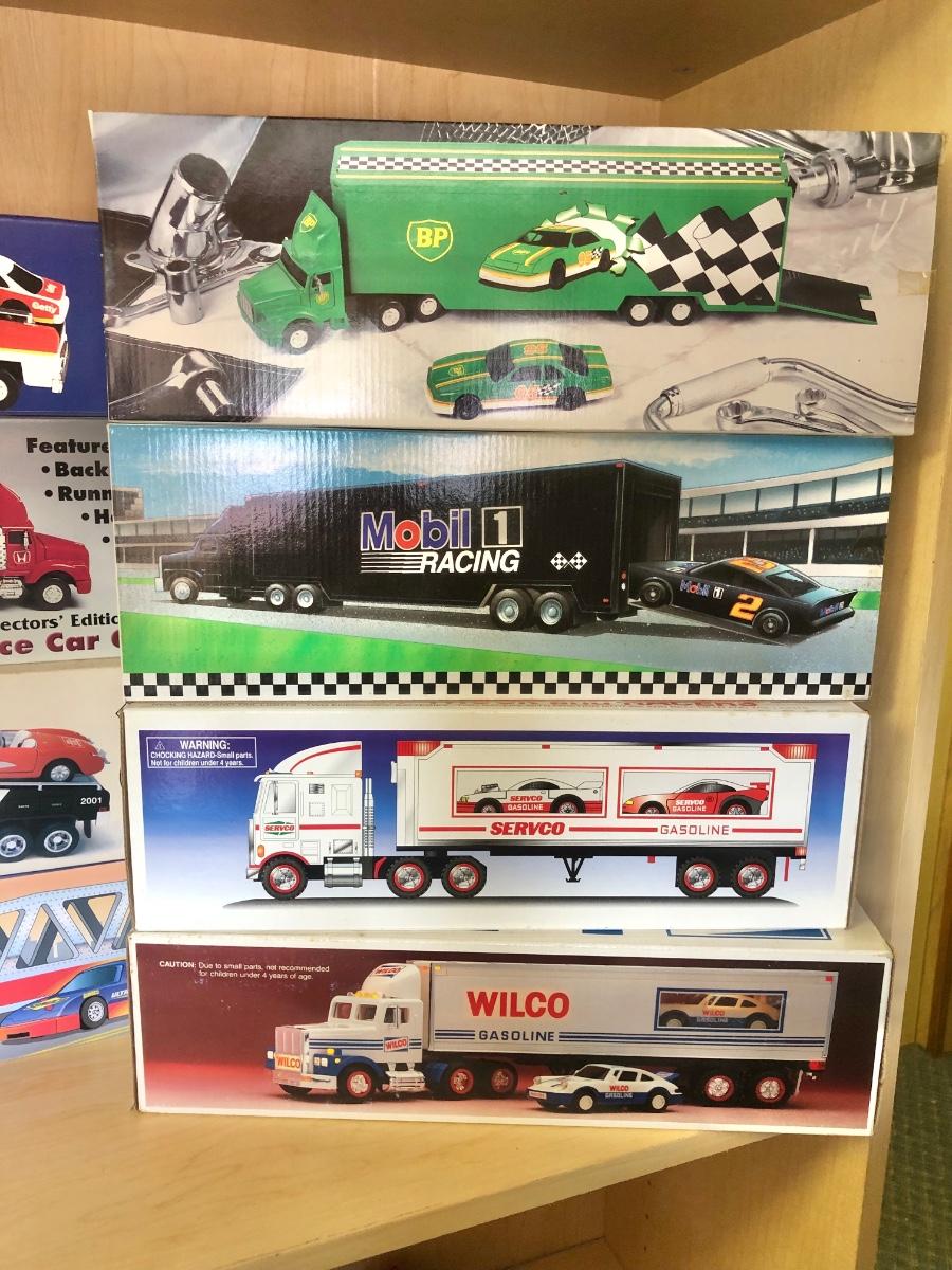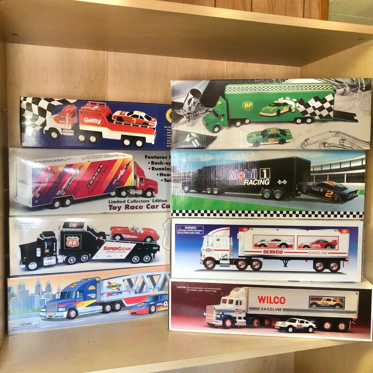 LOT 371: Collectible Racecar & Car Carrier Trucks - Phillips 66, Wilco, Sunoco, Mobil, Getty, Servco, BP & Honda