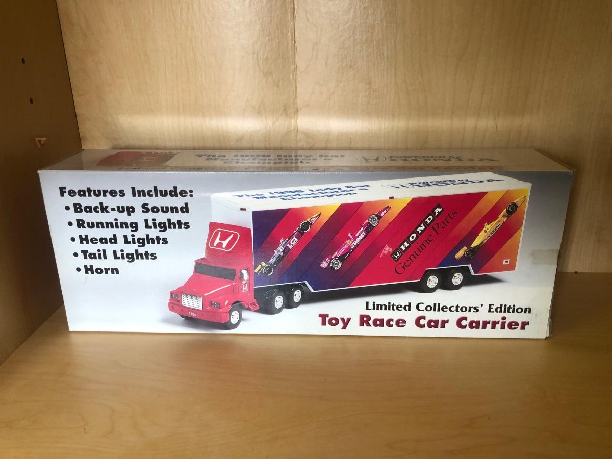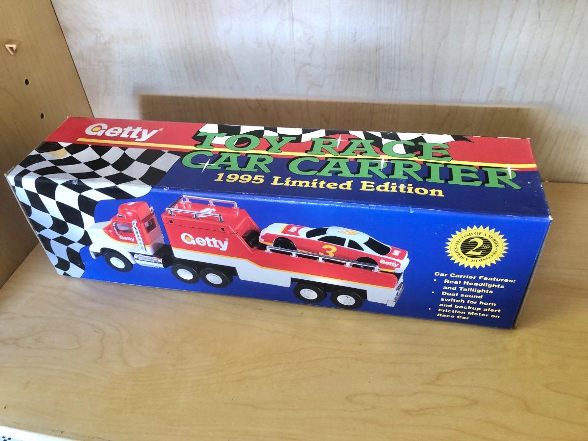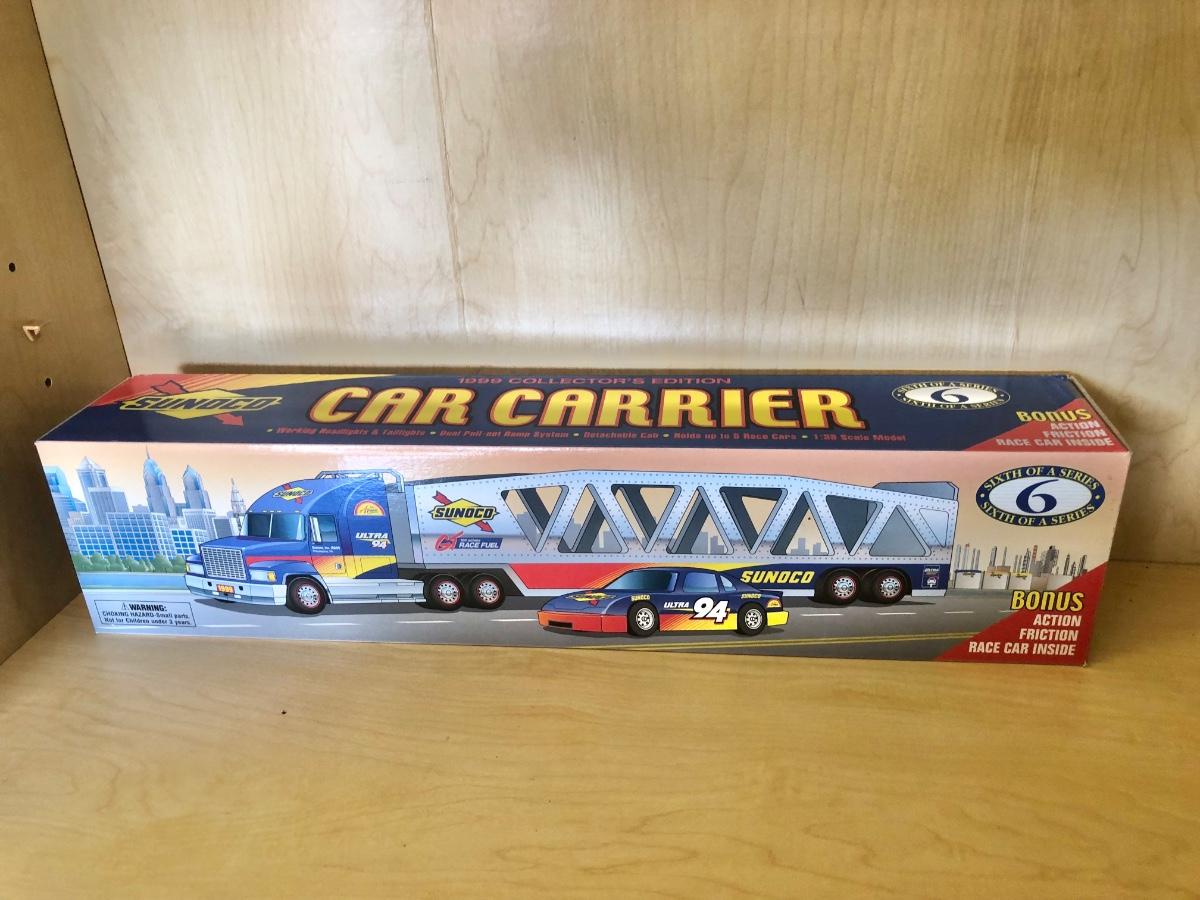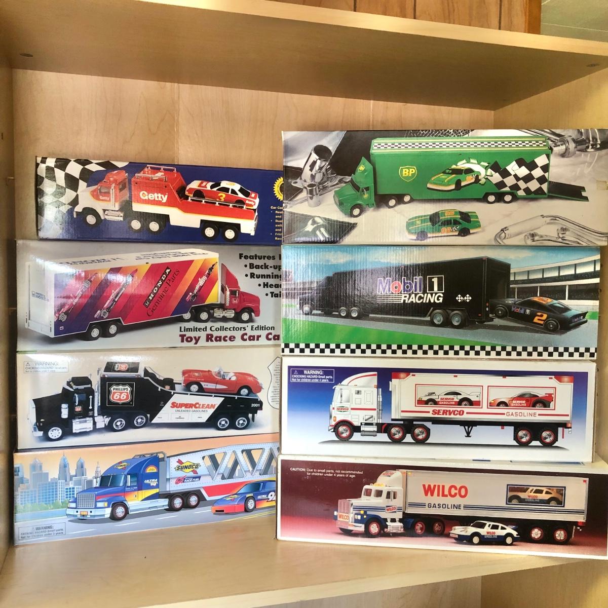 LOT 371: Collectible Racecar & Car Carrier Trucks - Phillips 66, Wilco, Sunoco, Mobil, Getty, Servco, BP & Honda