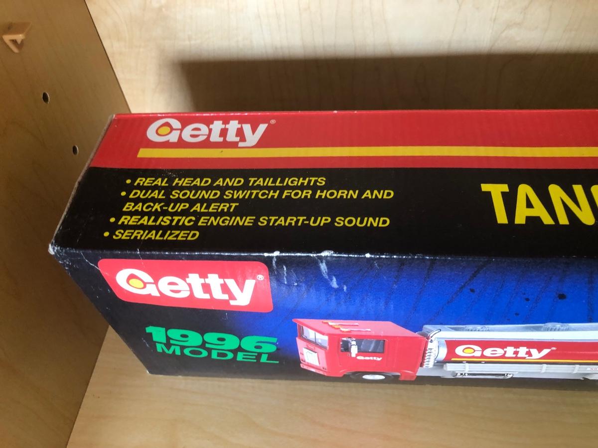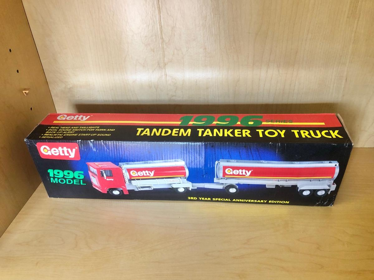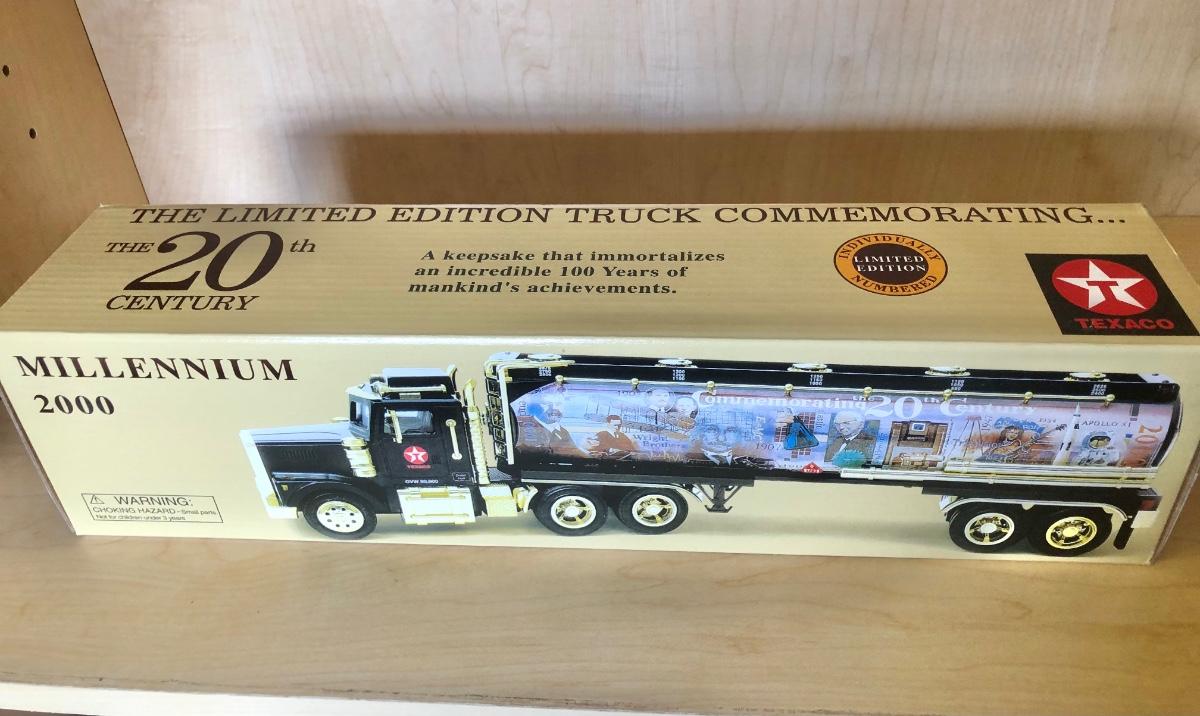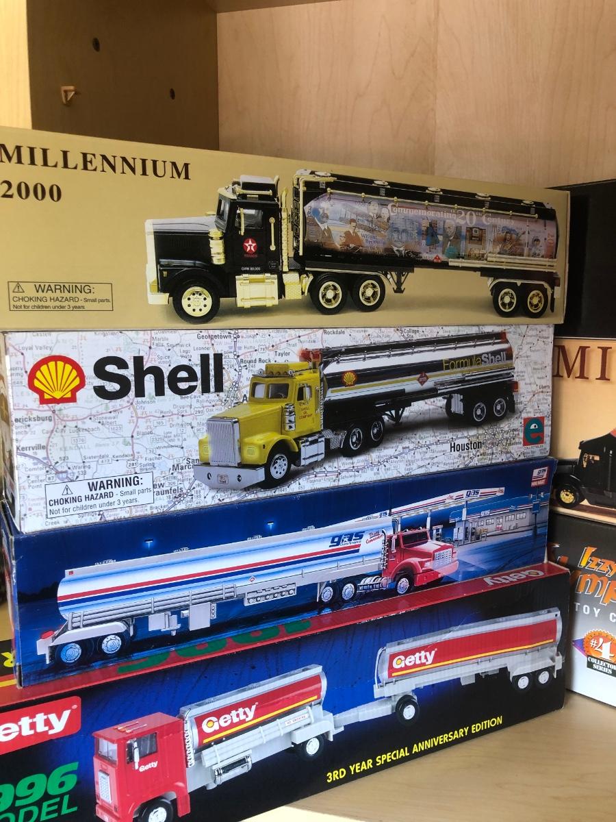 LOT 372: Collectible Trucks - Texaco Millennium Celebration Tanker, Texaco A World of Energy, Getty 1996 Model Tandem Tanker, Izzy’s Olympic Games 1996 Toy Car Carrier, Shell Tanker & More