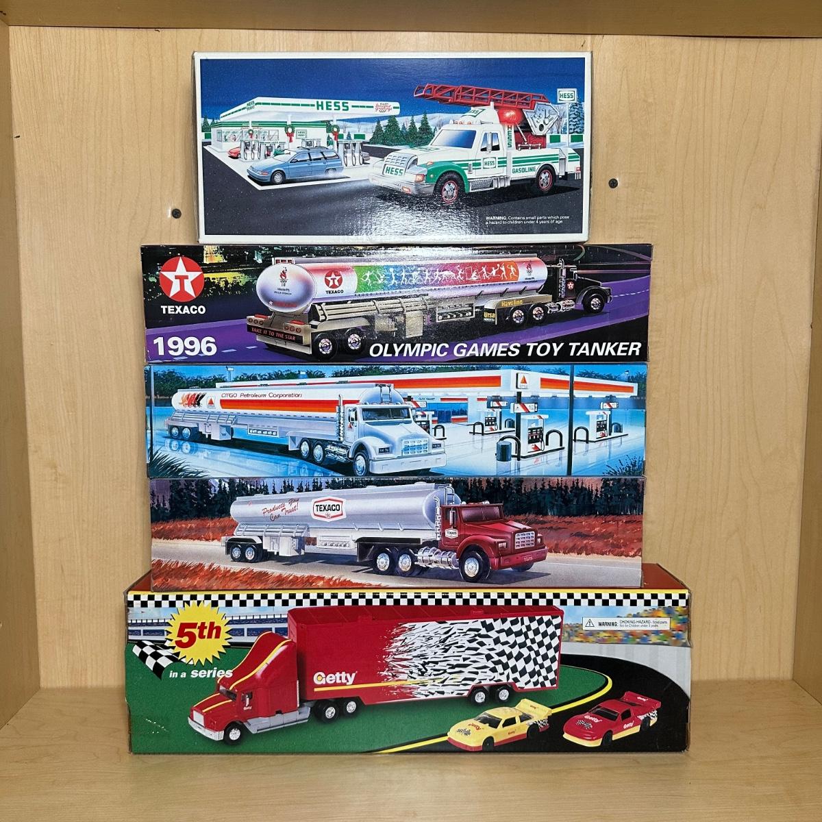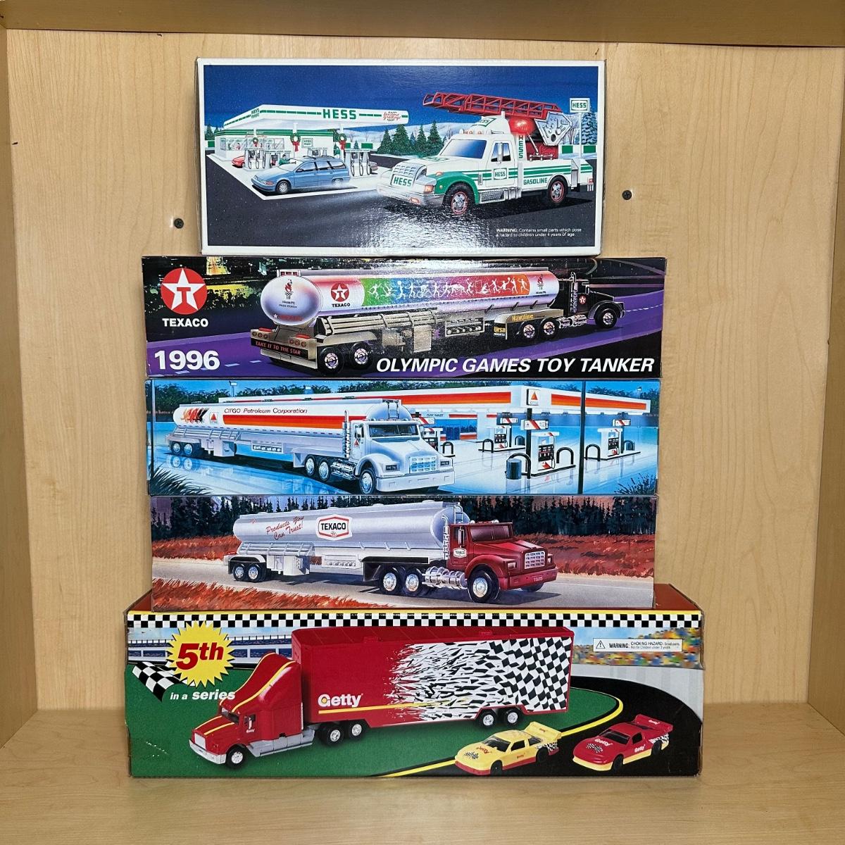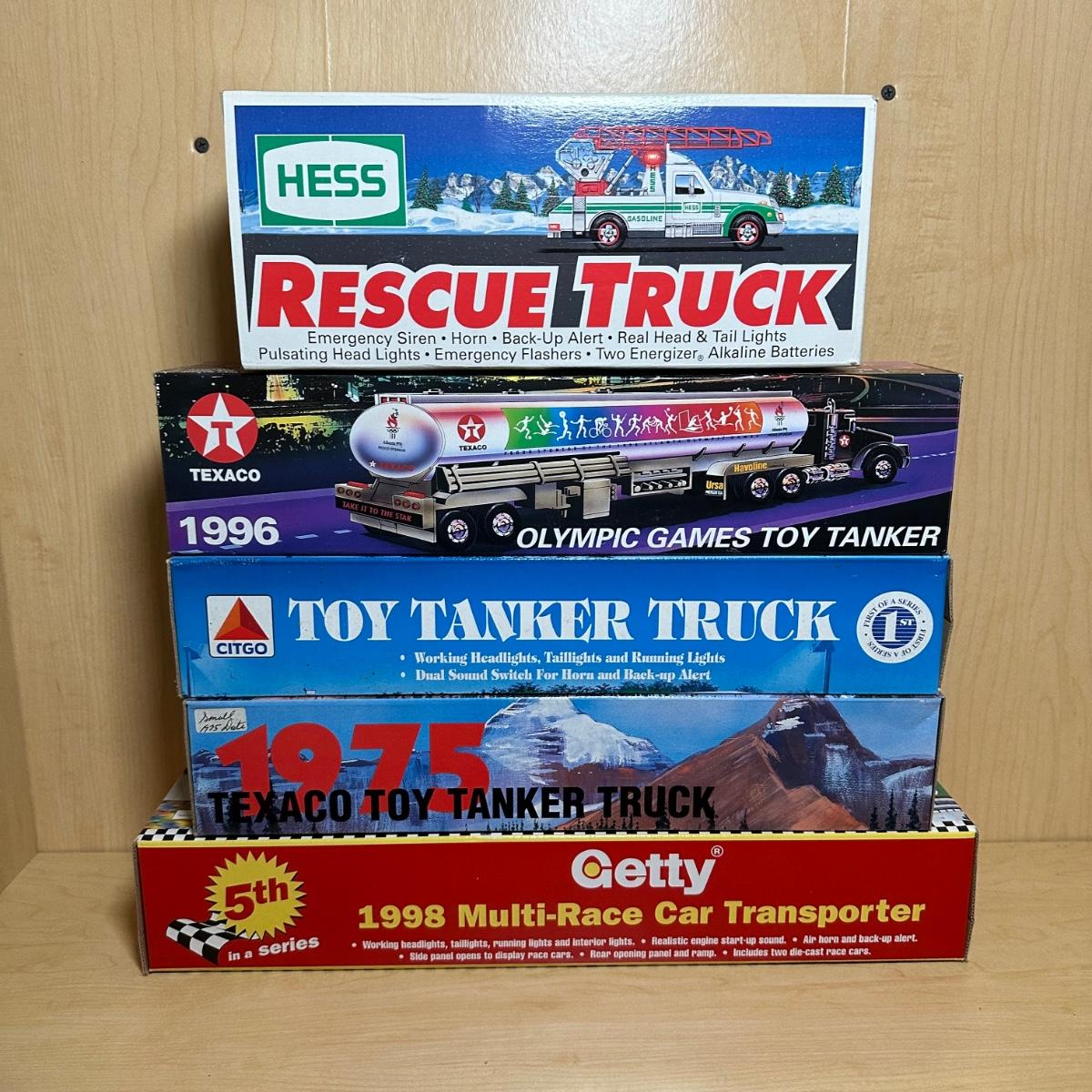 LOT 379: Hess Rescue Truck, Getty 1998 Multi Race Car Transporter & More Model Trucks