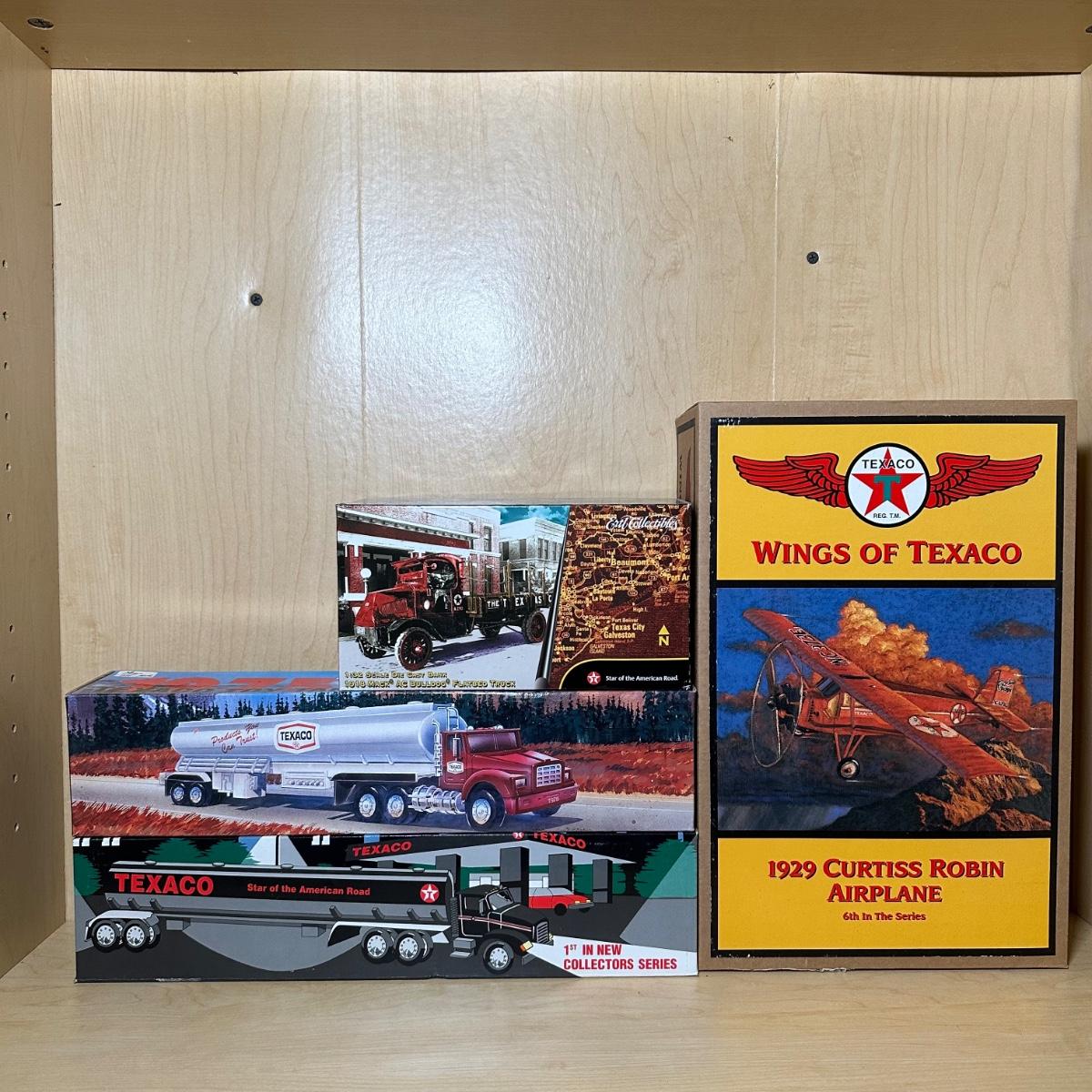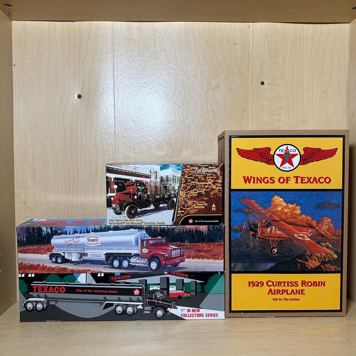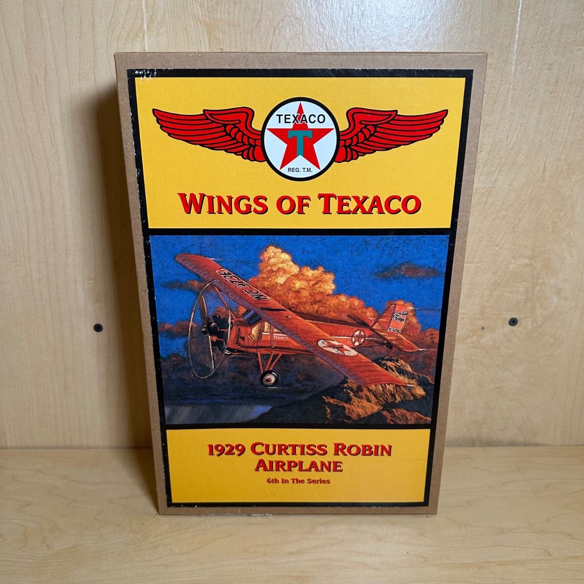 LOT 380: Wings Of Texaco Model 1929 Curtiss Robin Airplane, 1918 Mack Bulldog AC Flatbed Die Cast Truck & More