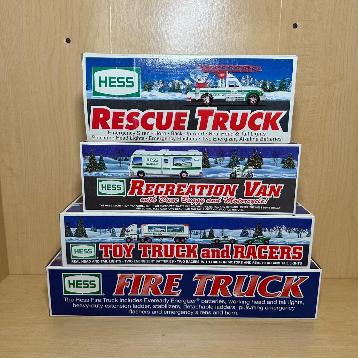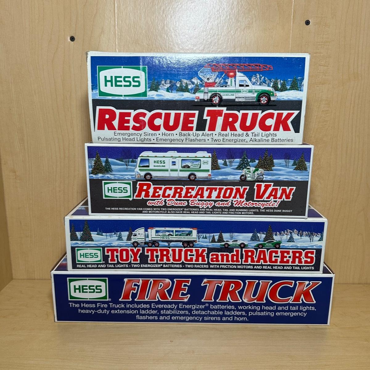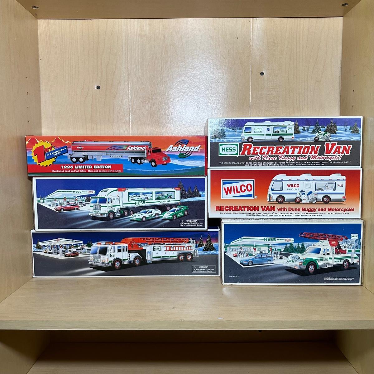 LOT 383: Hess Rescue Truck, Recreation Van, Toy Truck w/ Racers & More Model Trucks