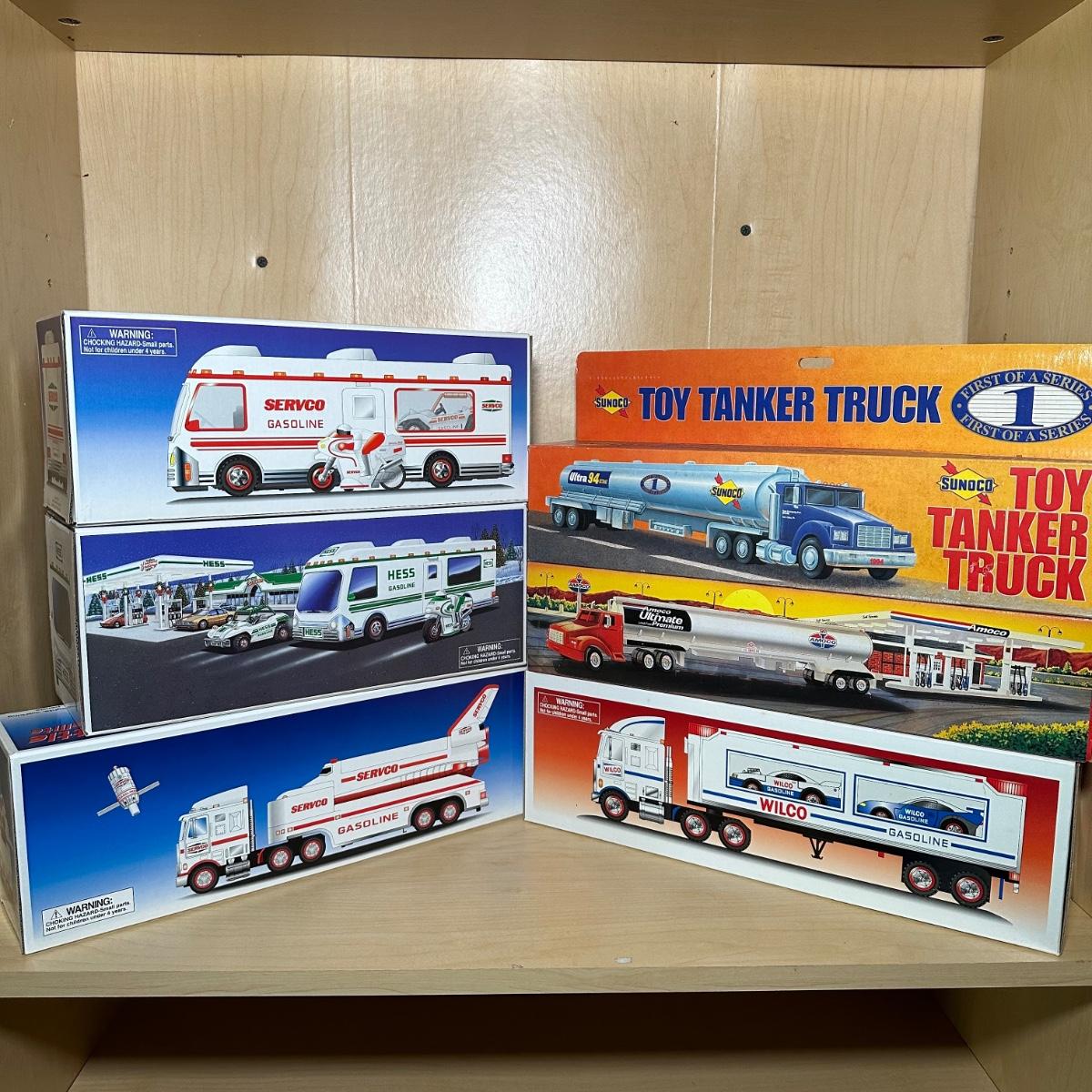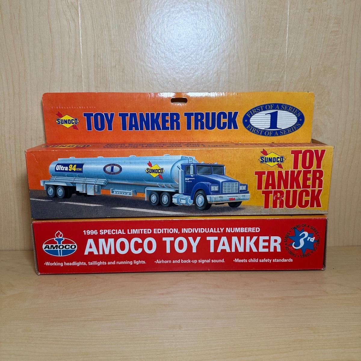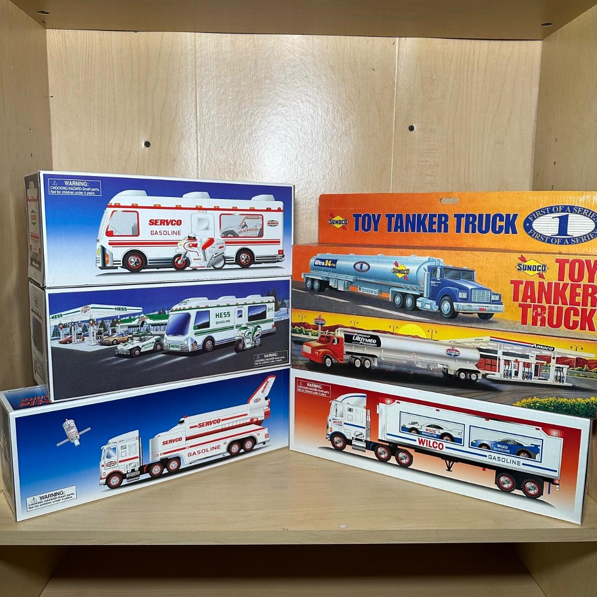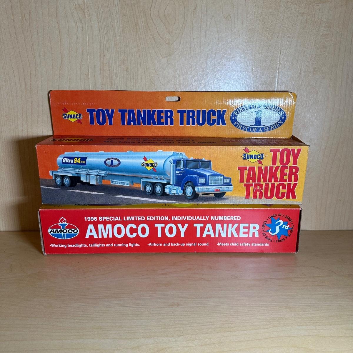 LOT 389: Sunoco Toy Tanker Truck, Servco Toy Truck w/ Space Shuttle, Amoco Tanker & More Model Trucks