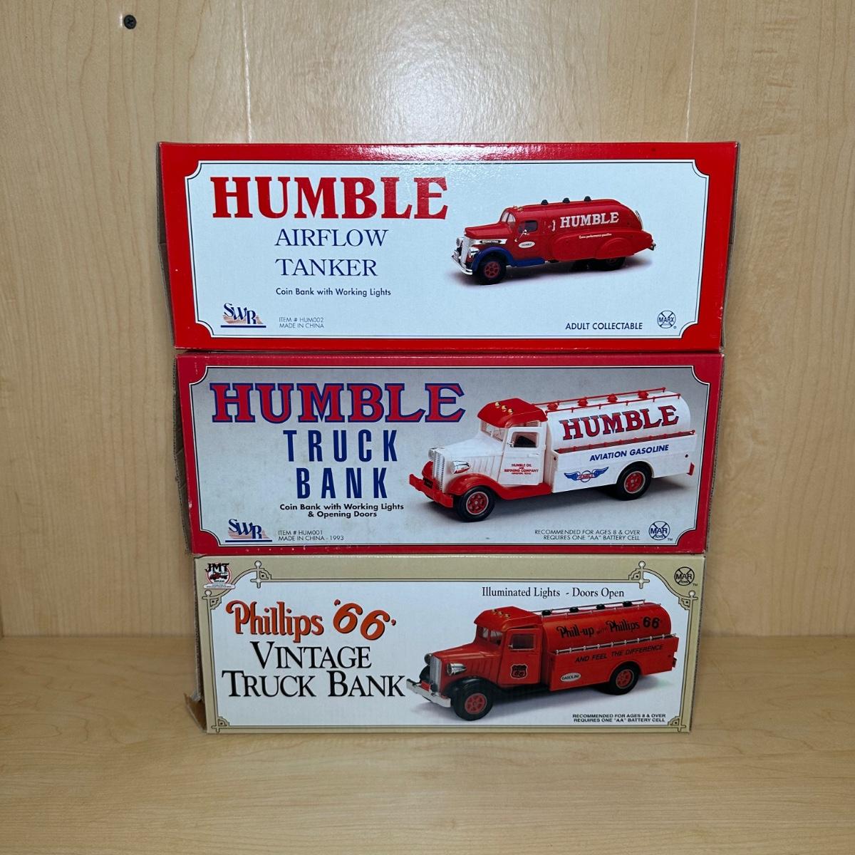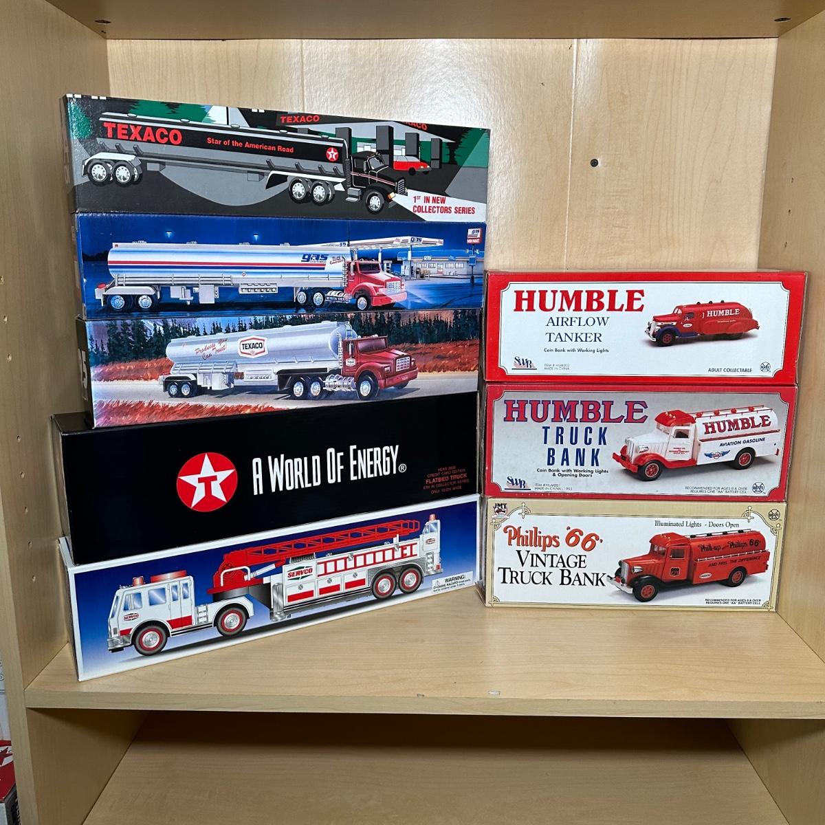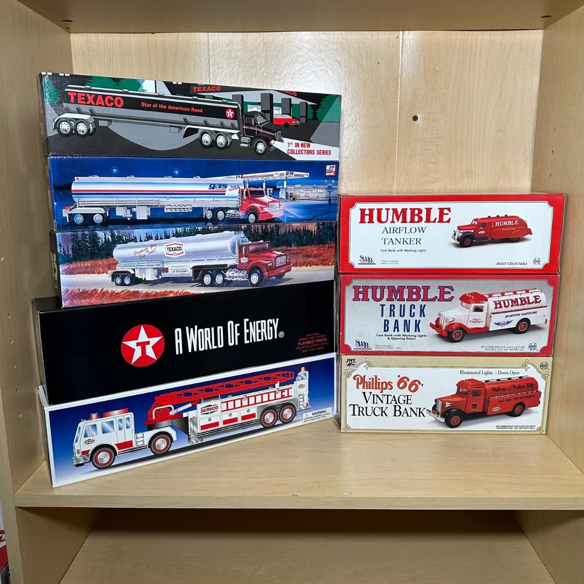 LOT 396: Humble/Phillips 66 Model Truck Banks w/ Model Tanker Trucks, Gas America, Texaco & More