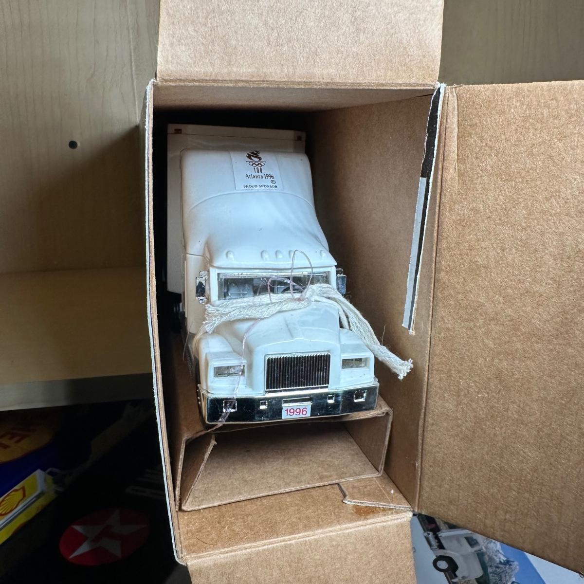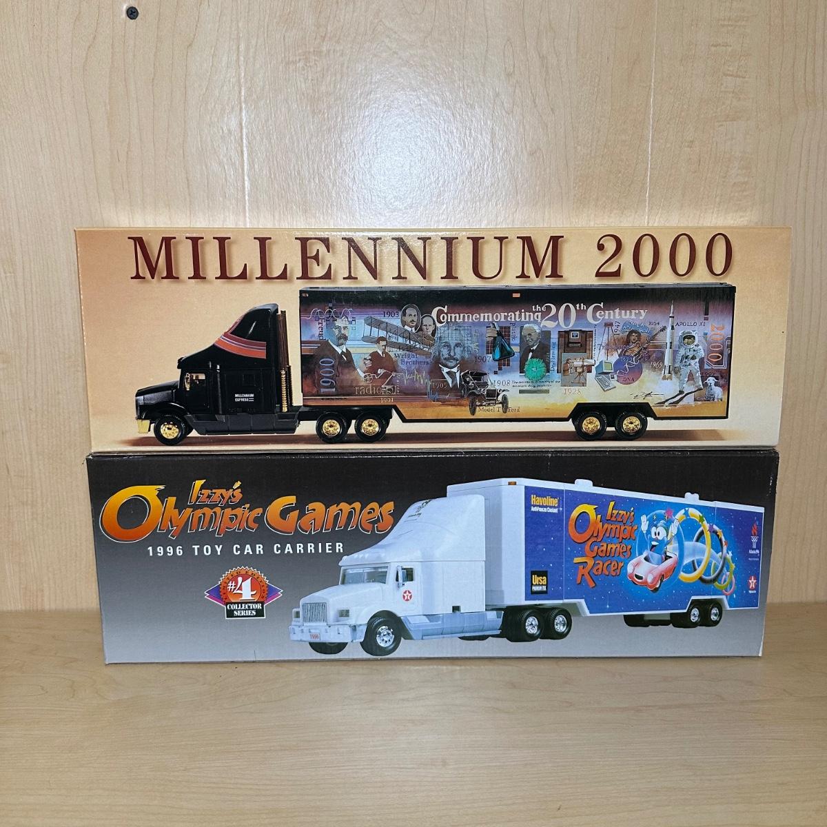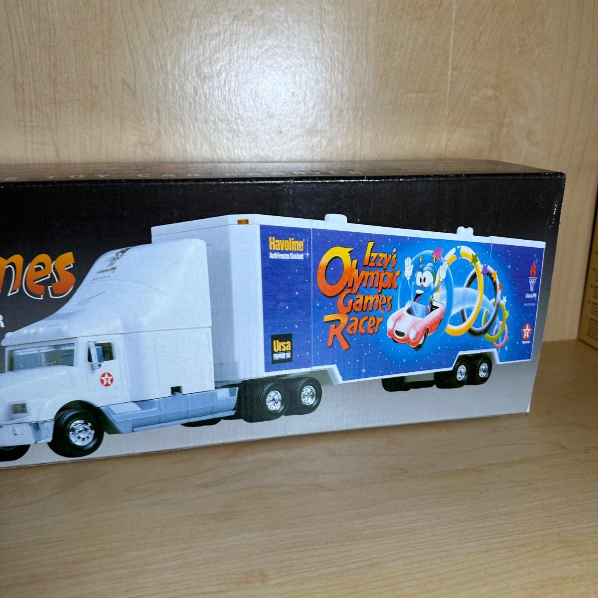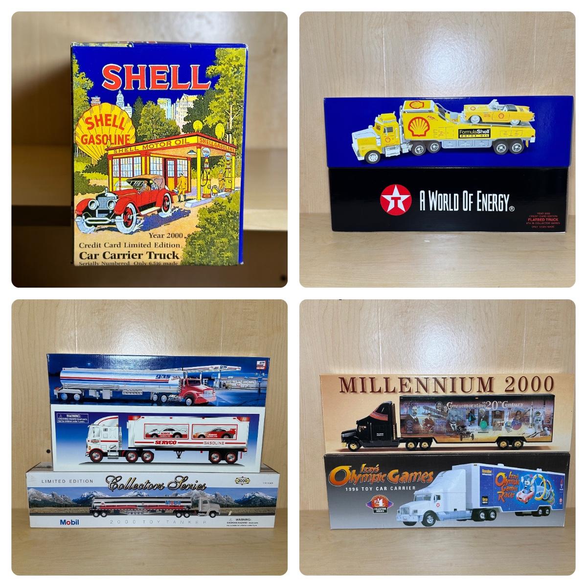 LOT 397: Shell Car Carrier Truck, Izzy’s Olympic Games 1996 Toy Car Carrier & More Model Trucks