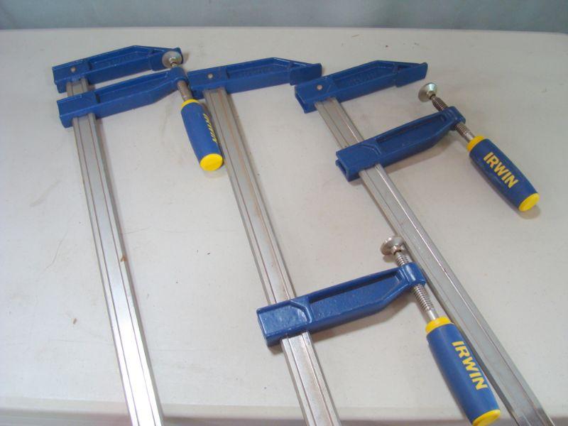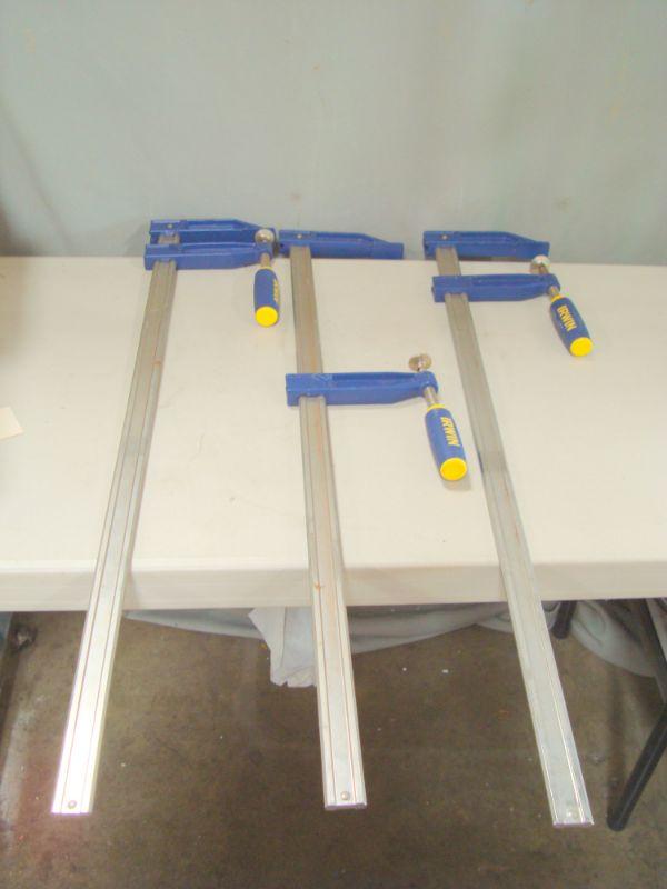 Very nice three piece lot of Irwin clamps. These are 3 feet long with 5'' jaws