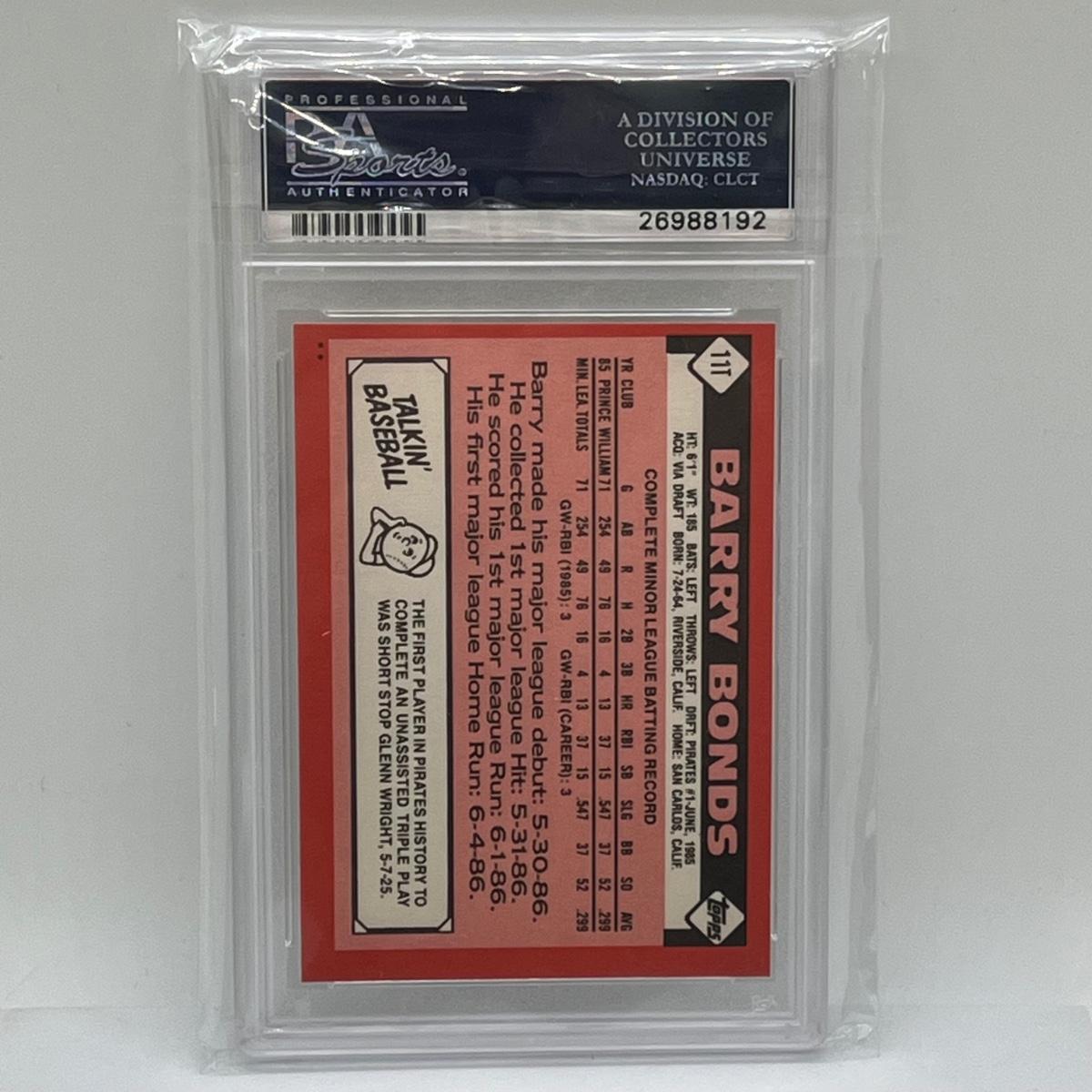 LOT 6: Graded Rookie Barry Bonds Card - 1986 Topps Traded - PSA NM-MT 8