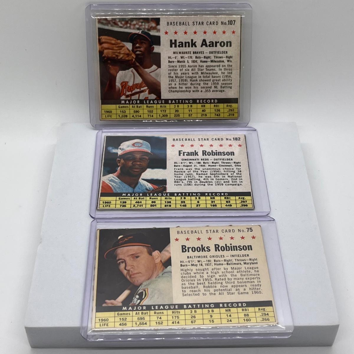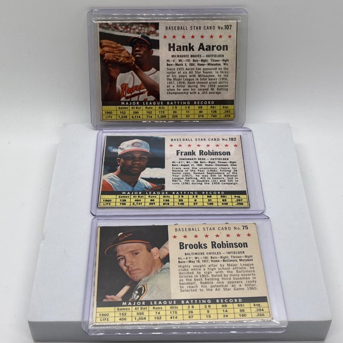 LOT 10: 1961 Post Cereal Baseball Cards - Hank Aaron, Brooks Robinson, Frank Robinson