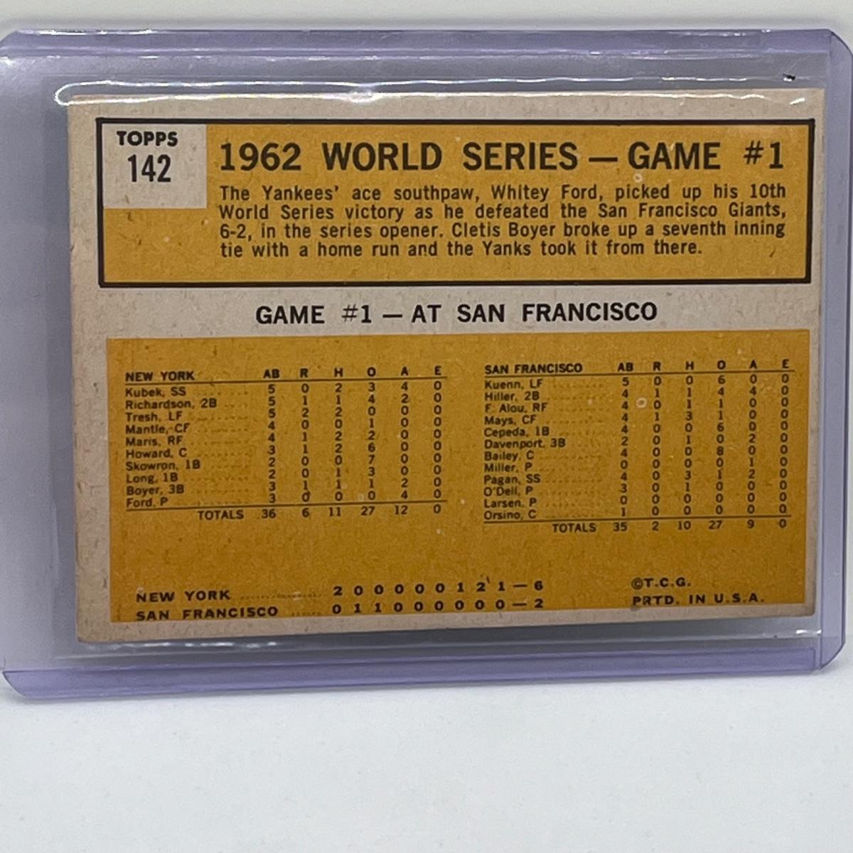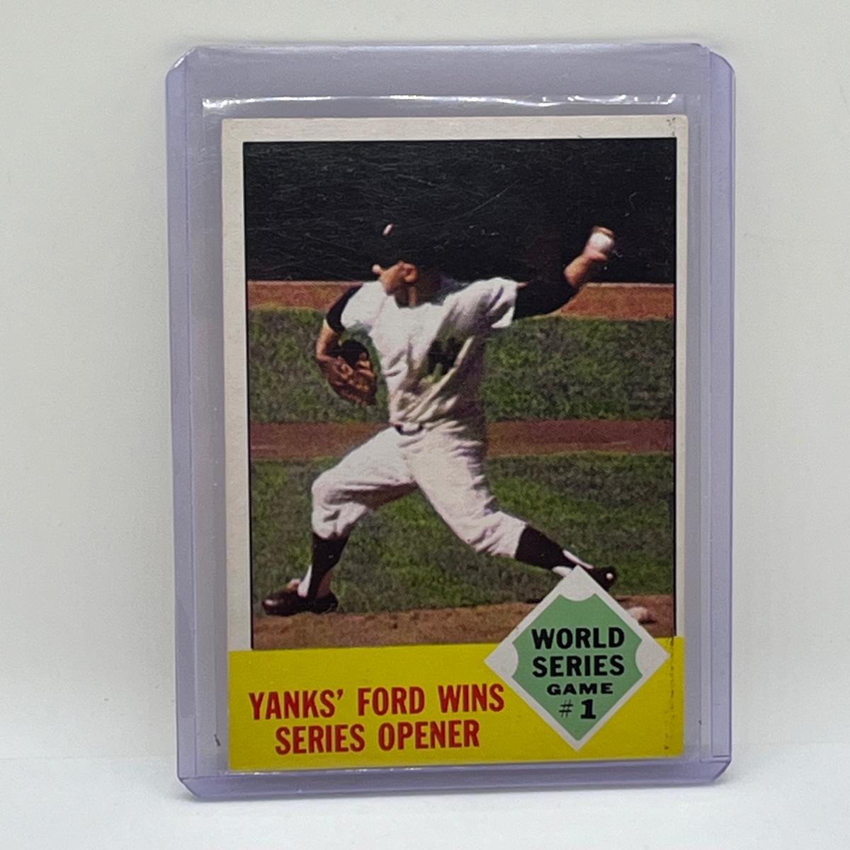 LOT 27: 1963 Topps Card - World Series Game 1 - Whitey Ford - "Yanks' Ford Wins Series Opener"