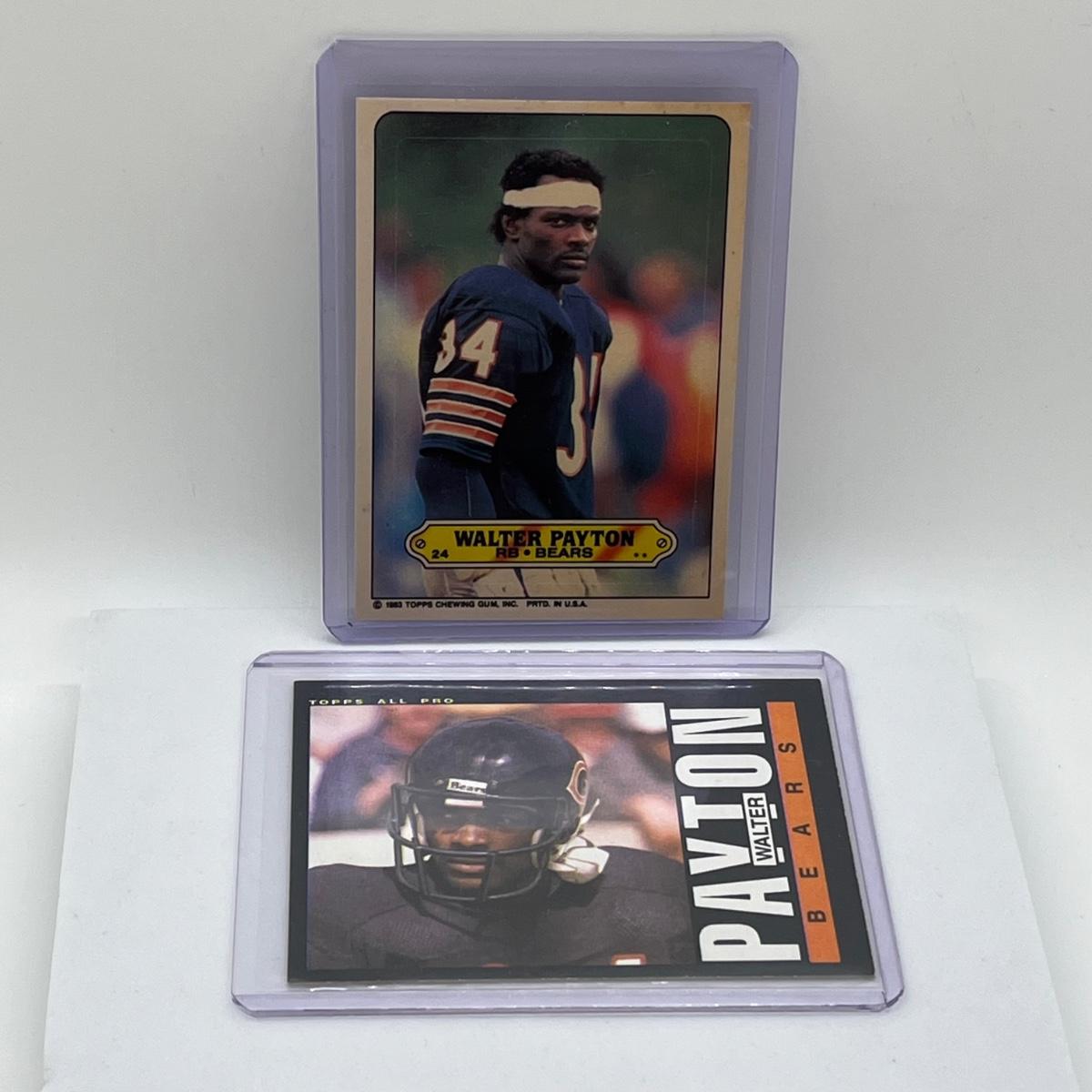 LOT 34: Walter Payton 1985 Topps Football Card and 1983 Topps Sticker