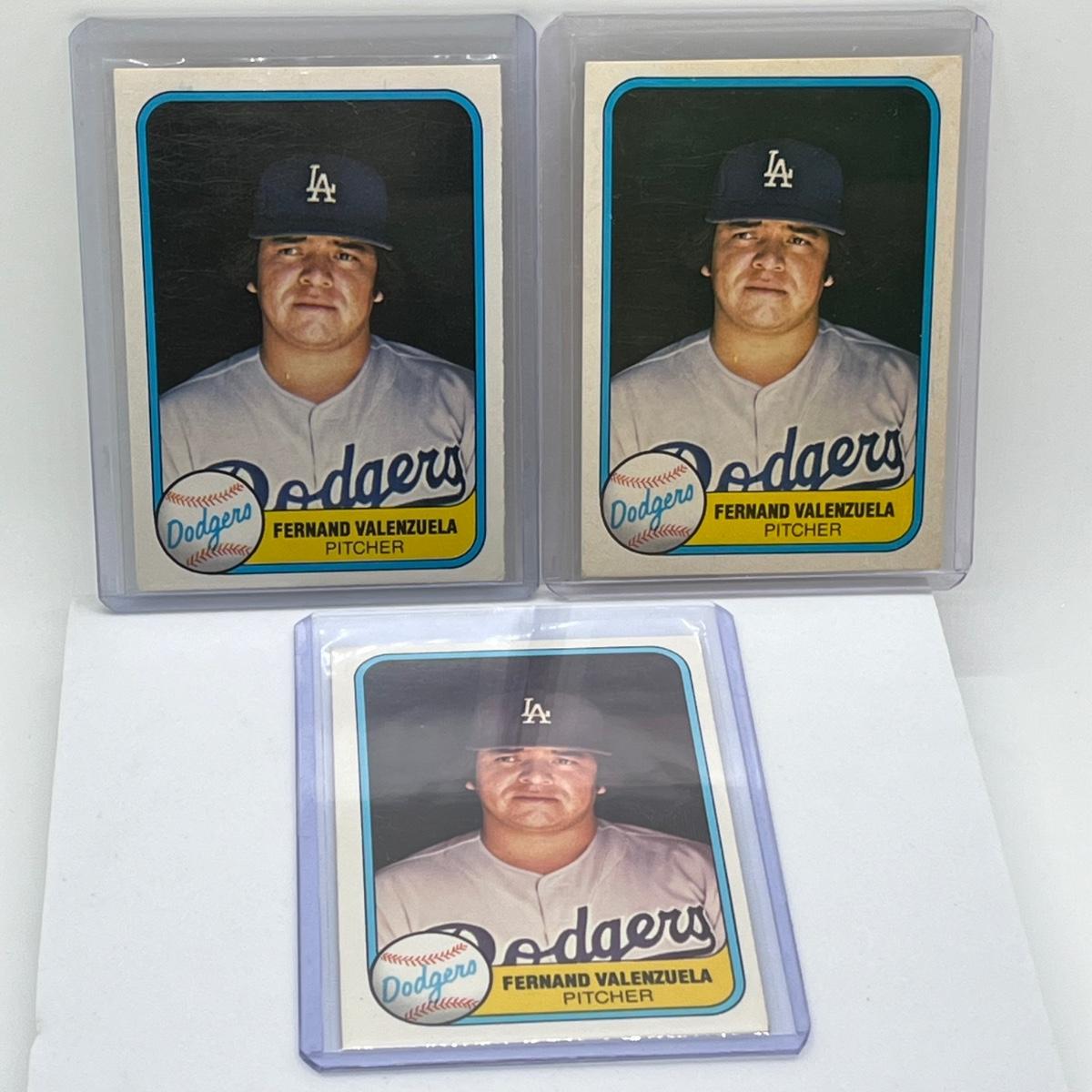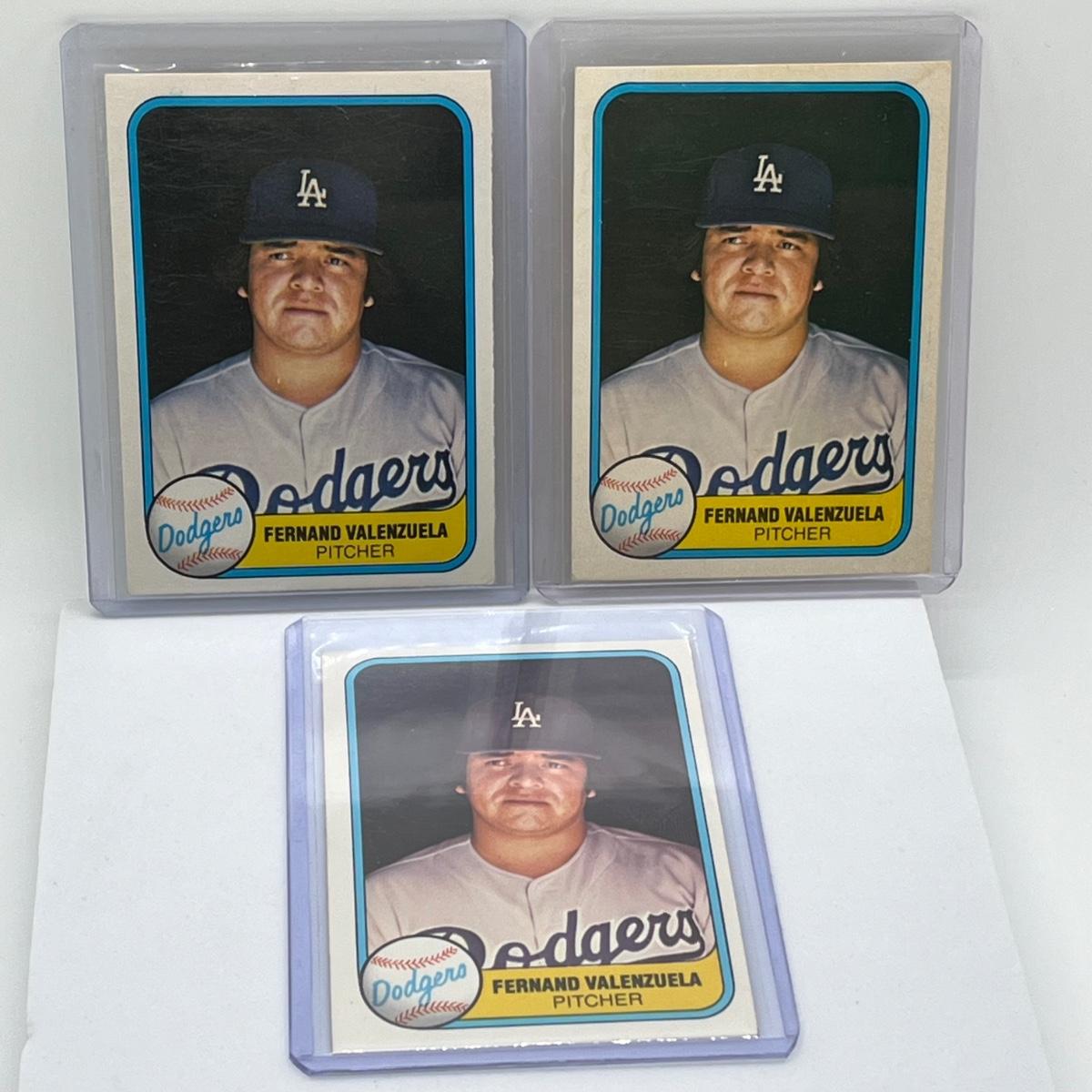 LOT 38: Fernando Valenzuela Rookie Cards (3) 1981 Fleer #140