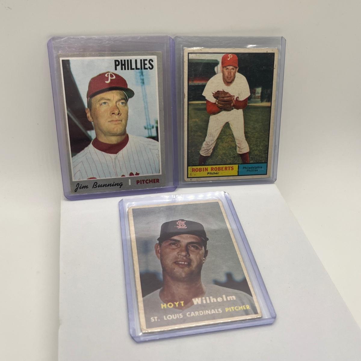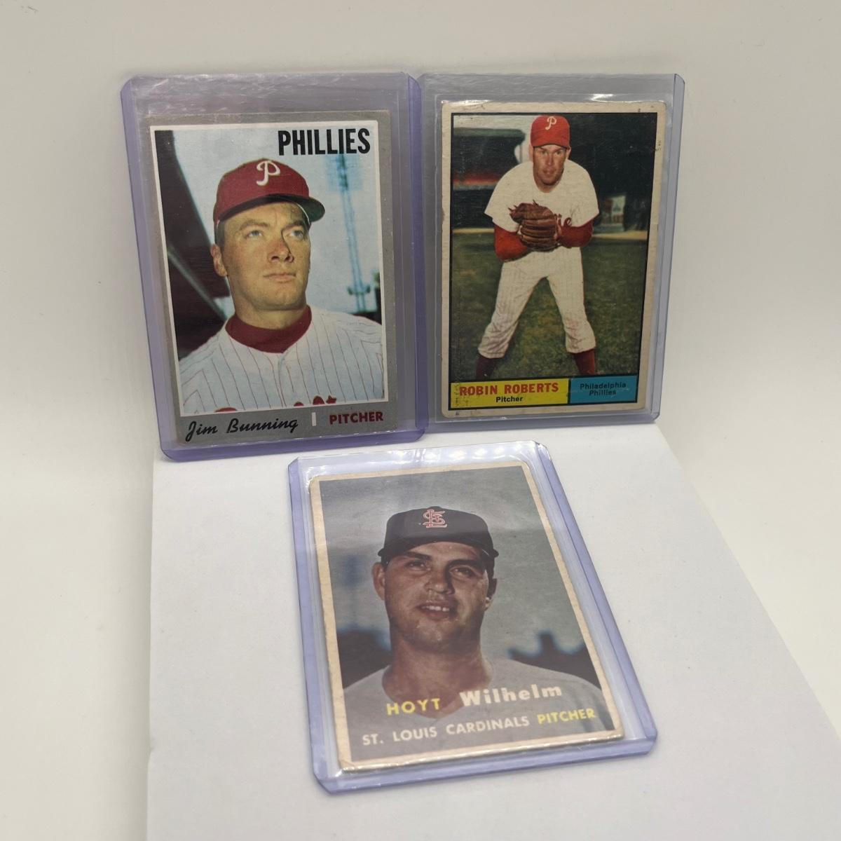 LOT 61: Topps 1957 Hoyt Wilhelm, 1961 Robin Roberts & 1970 Jim Bunning Cards