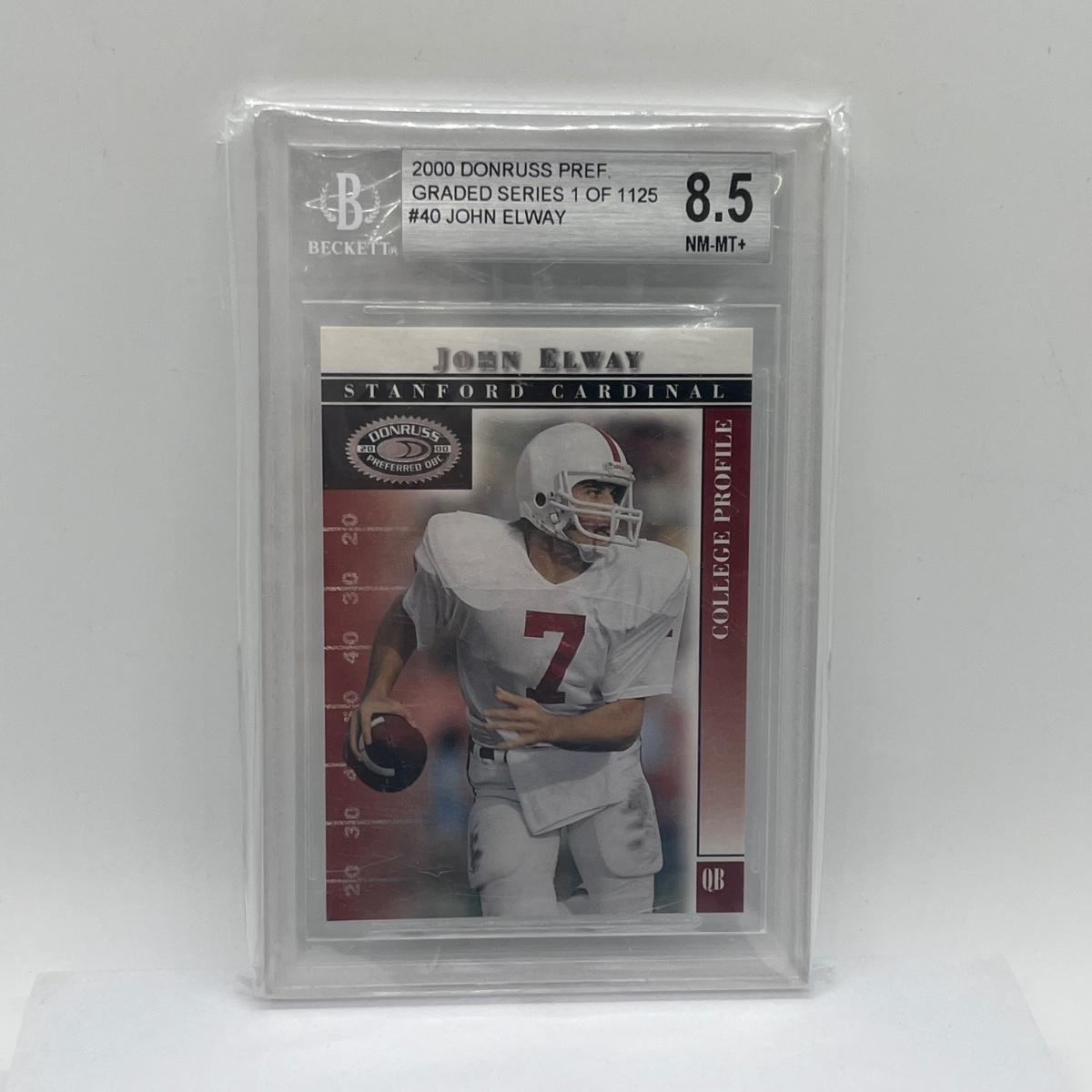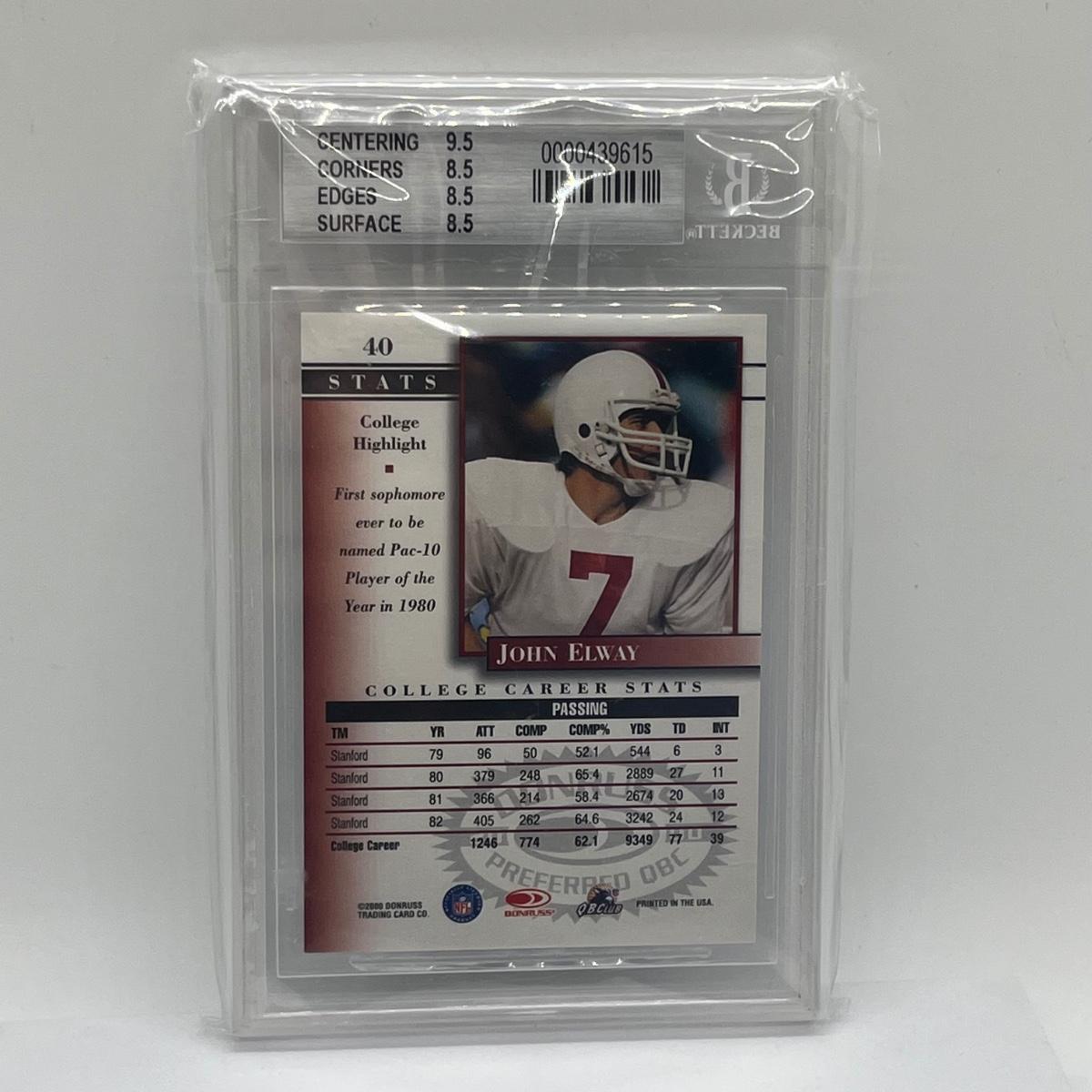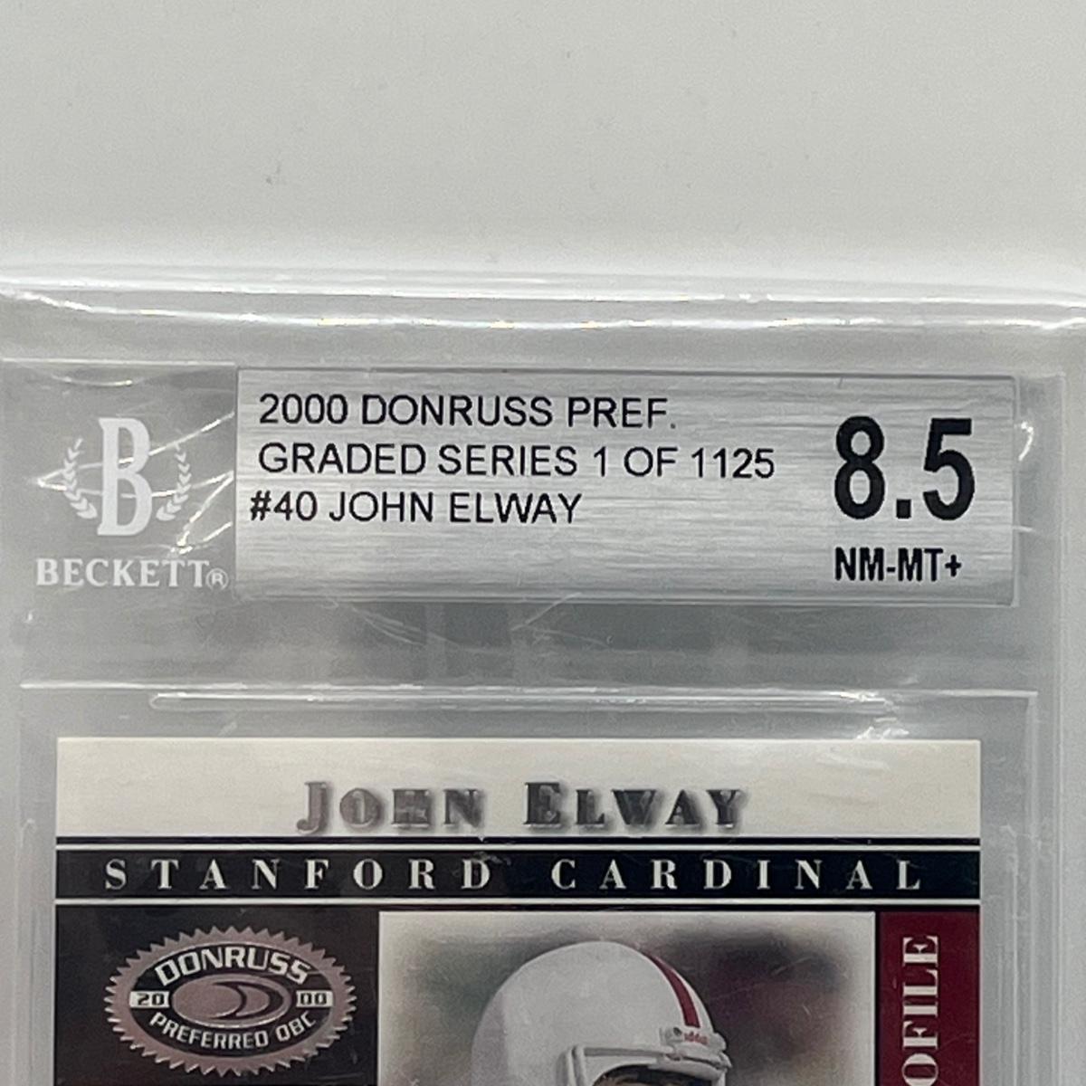 LOT 62: 2000 Donruss Pref Graded Series - #40 John Elway Beckett - 8.5