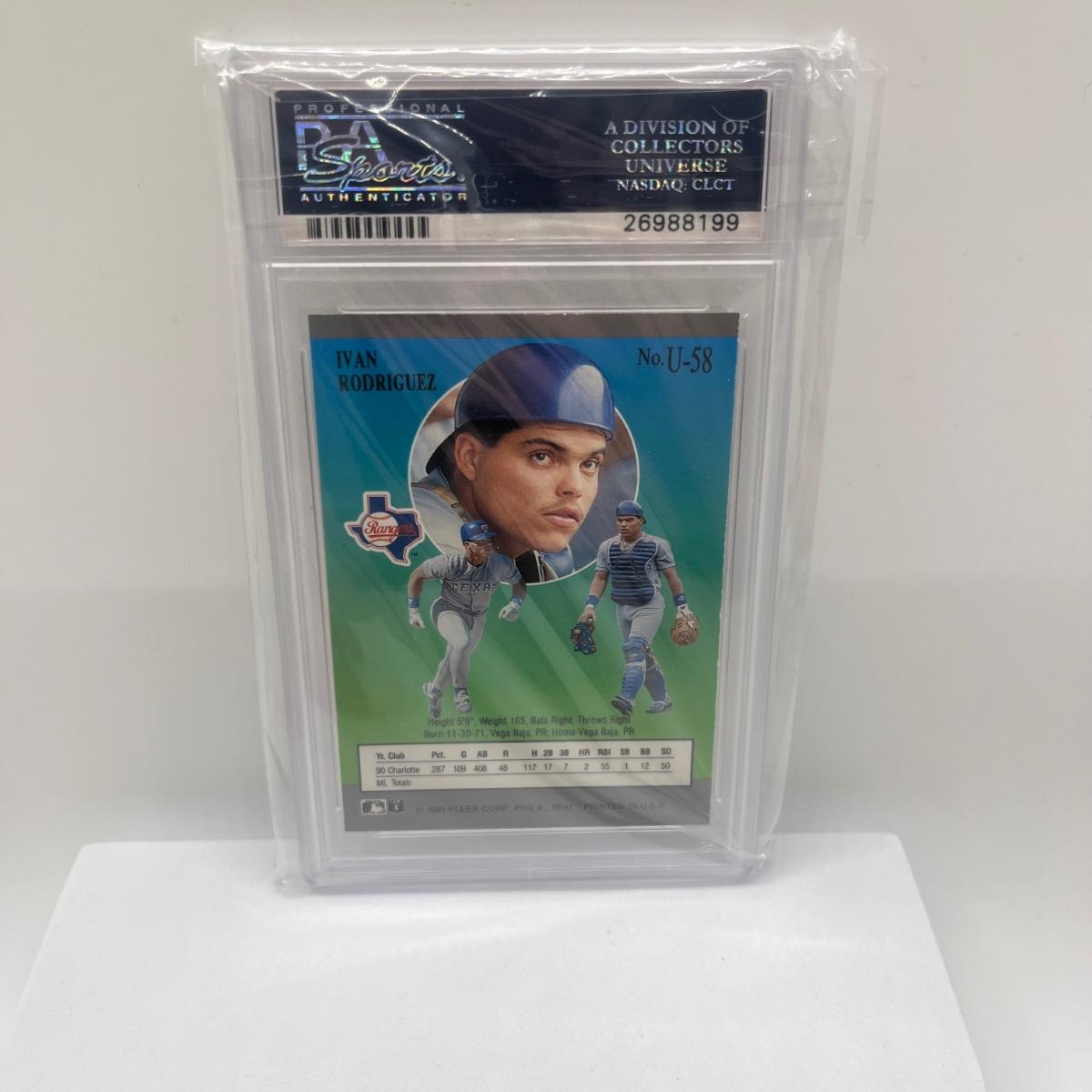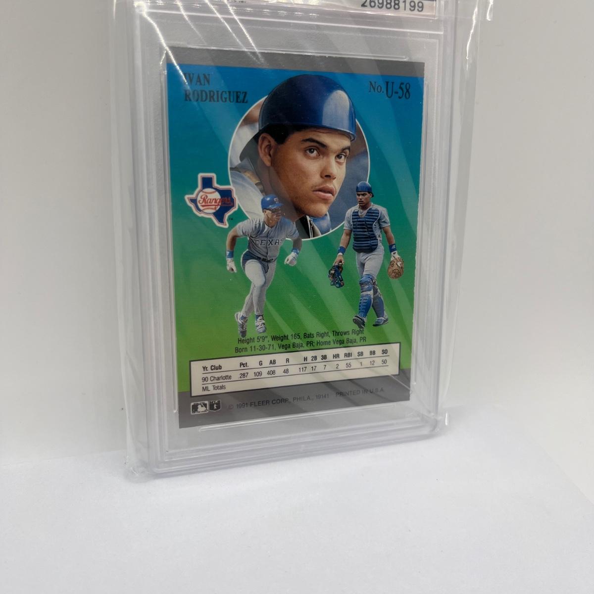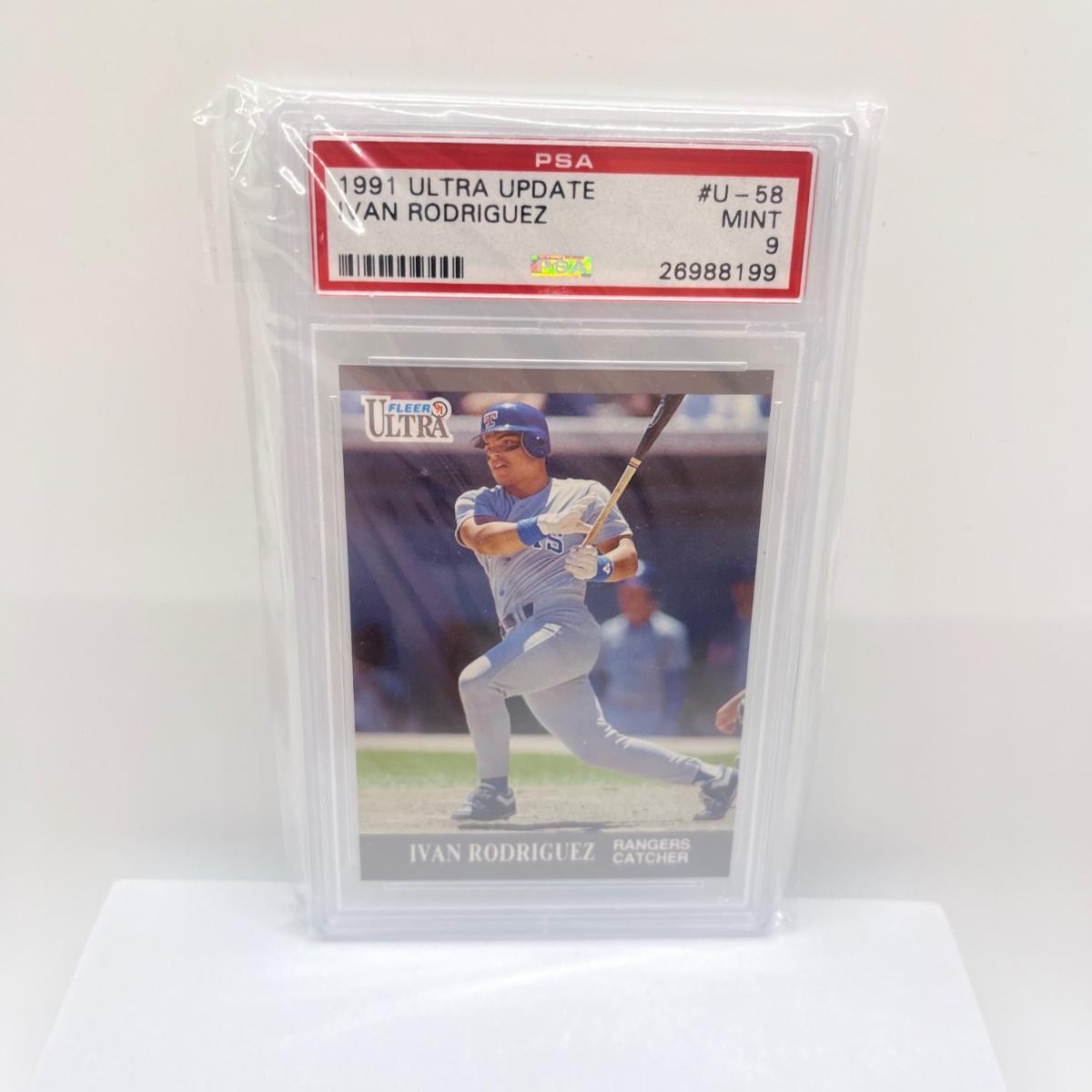 LOT 86: 1991 Fleer Ultra Update Ivan Rodriguez Rookie Card Graded PSA 9 Mint