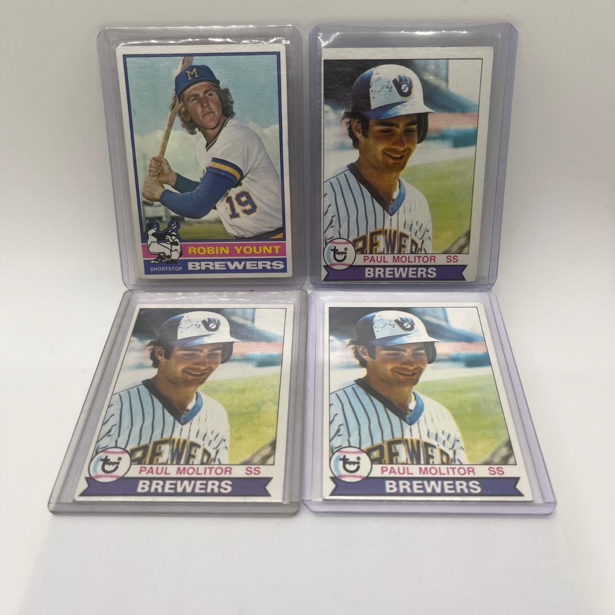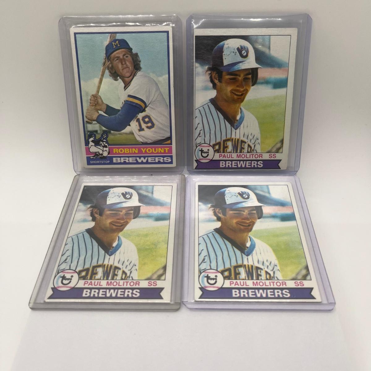 LOT 105: 1976 Topps Robin Yount Card & 3 1979 Topps Paul Molitor Cards