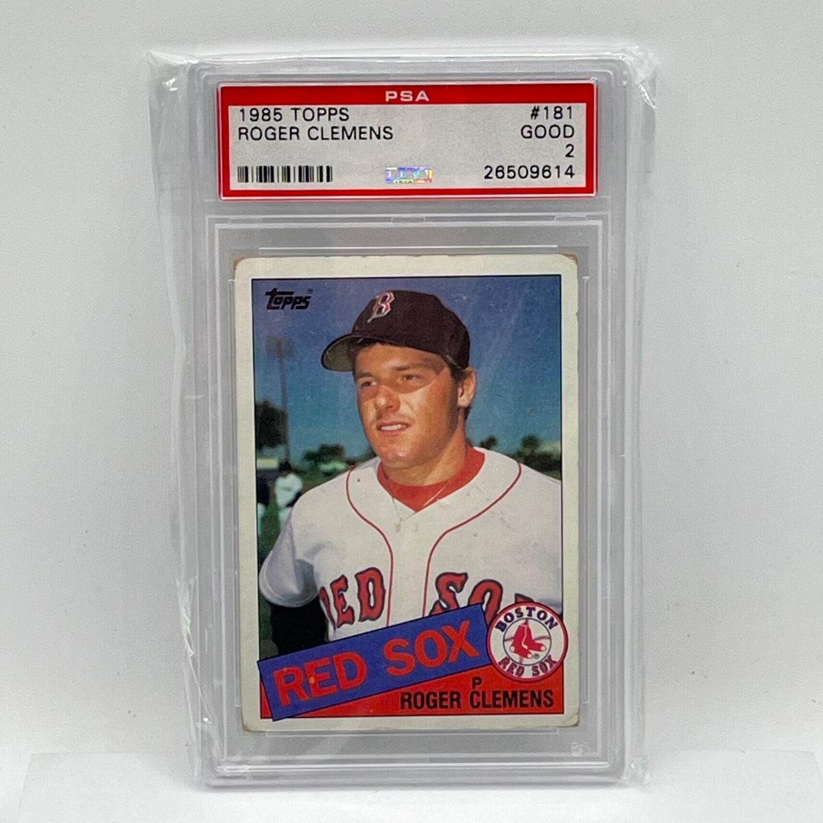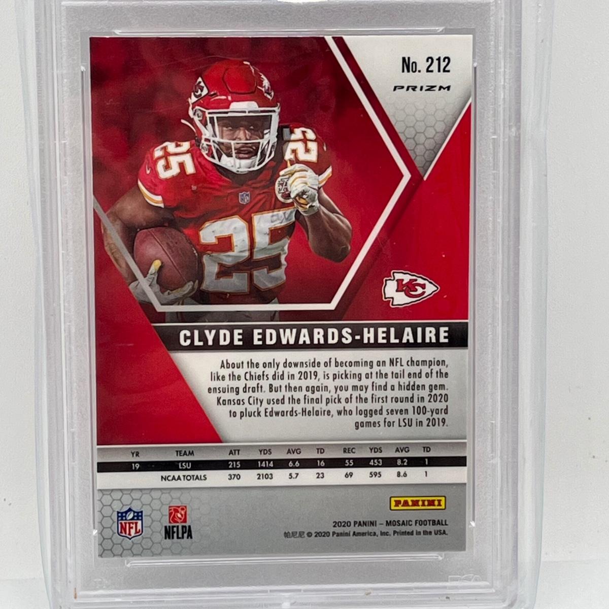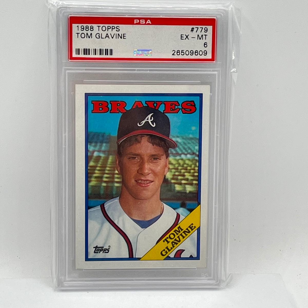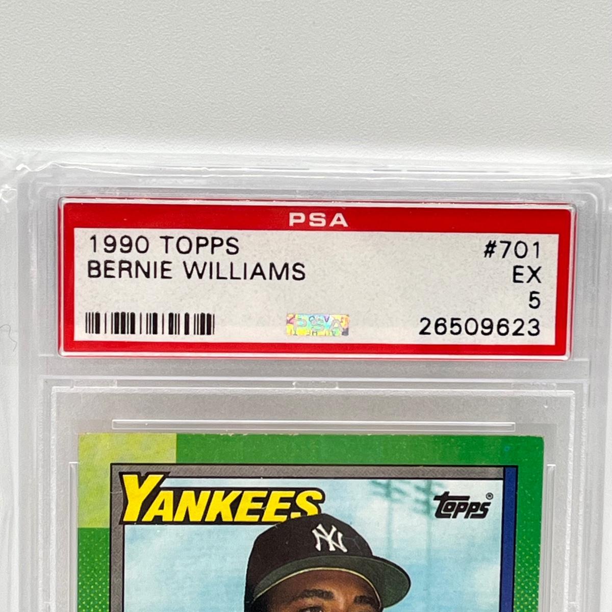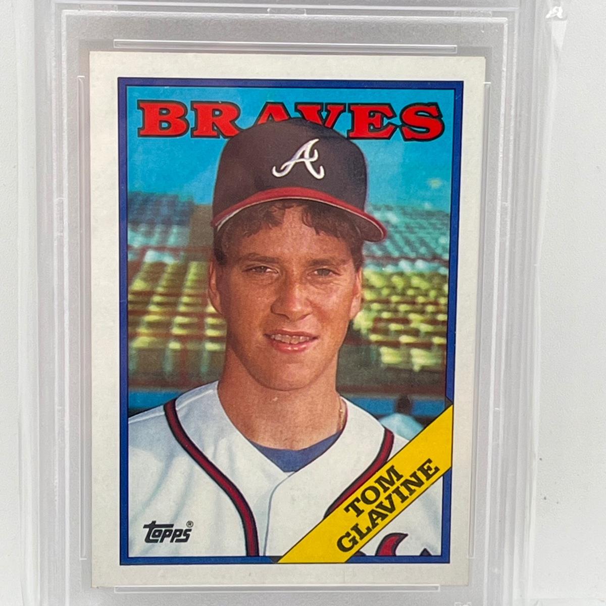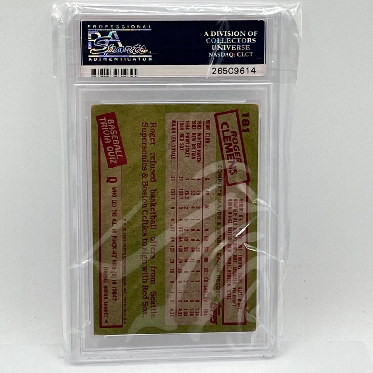 LOT 123: Four PSA Graded Topps Rookie Baseball Cards - Roger Clemens, Tom Glavine, Bernie Williams, Chipper Jones - Plus Clyde Edwards-Helaire 2020 Panini Mosaic Football Card - Mint 9