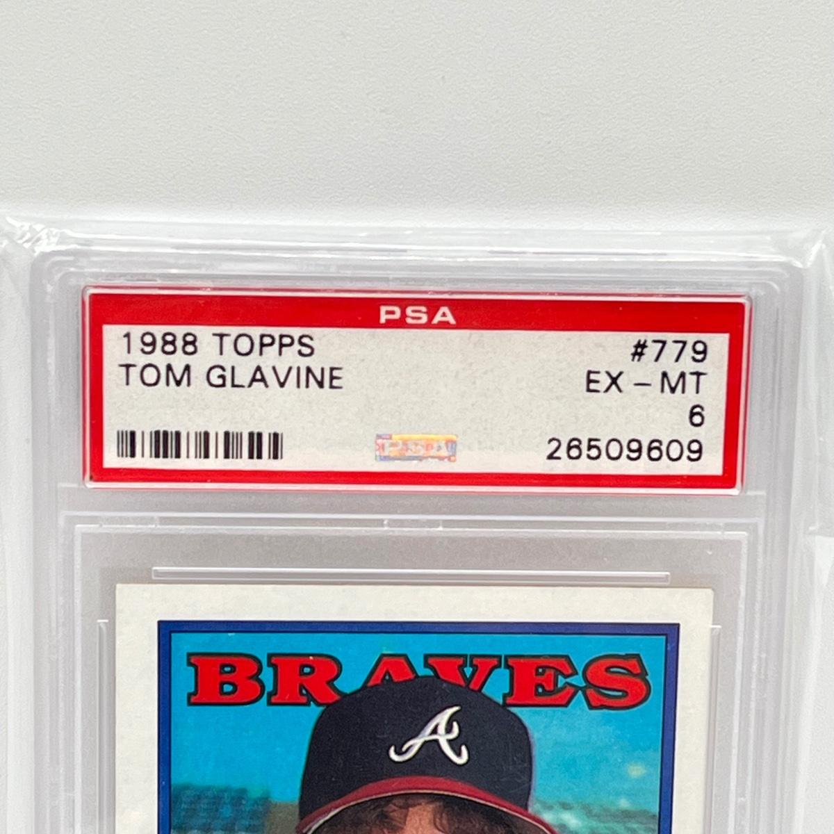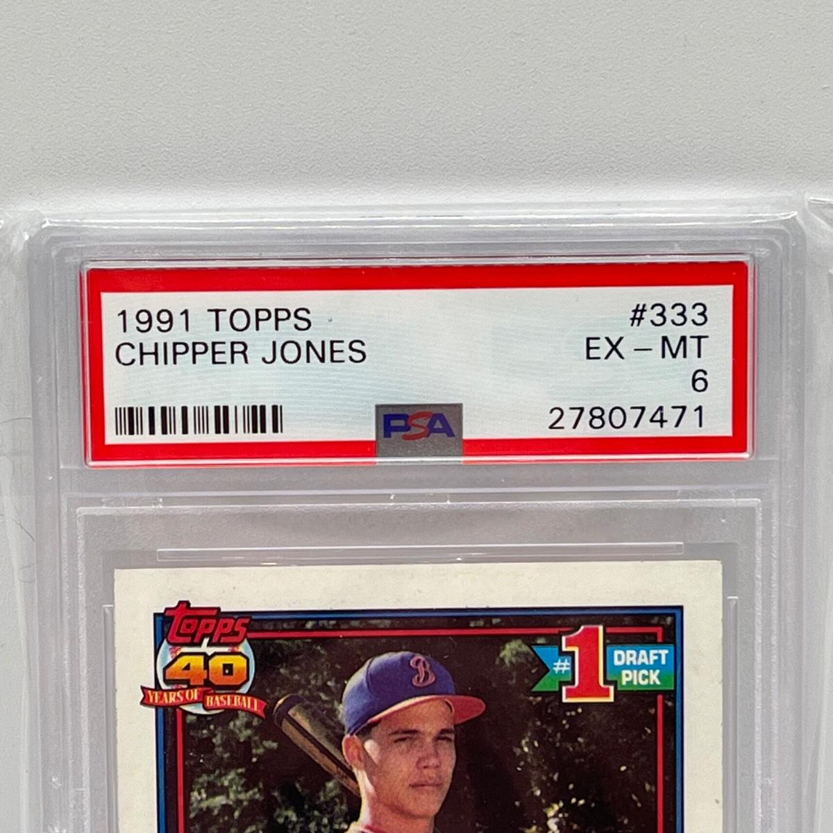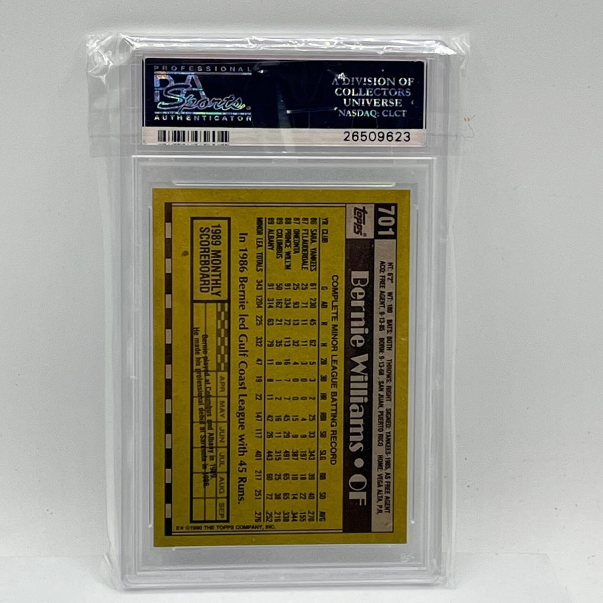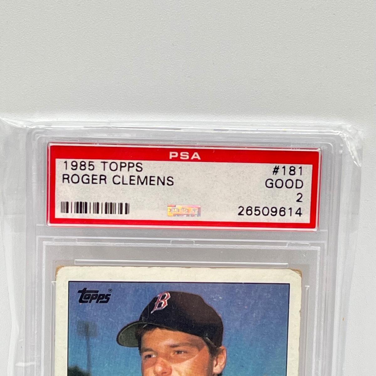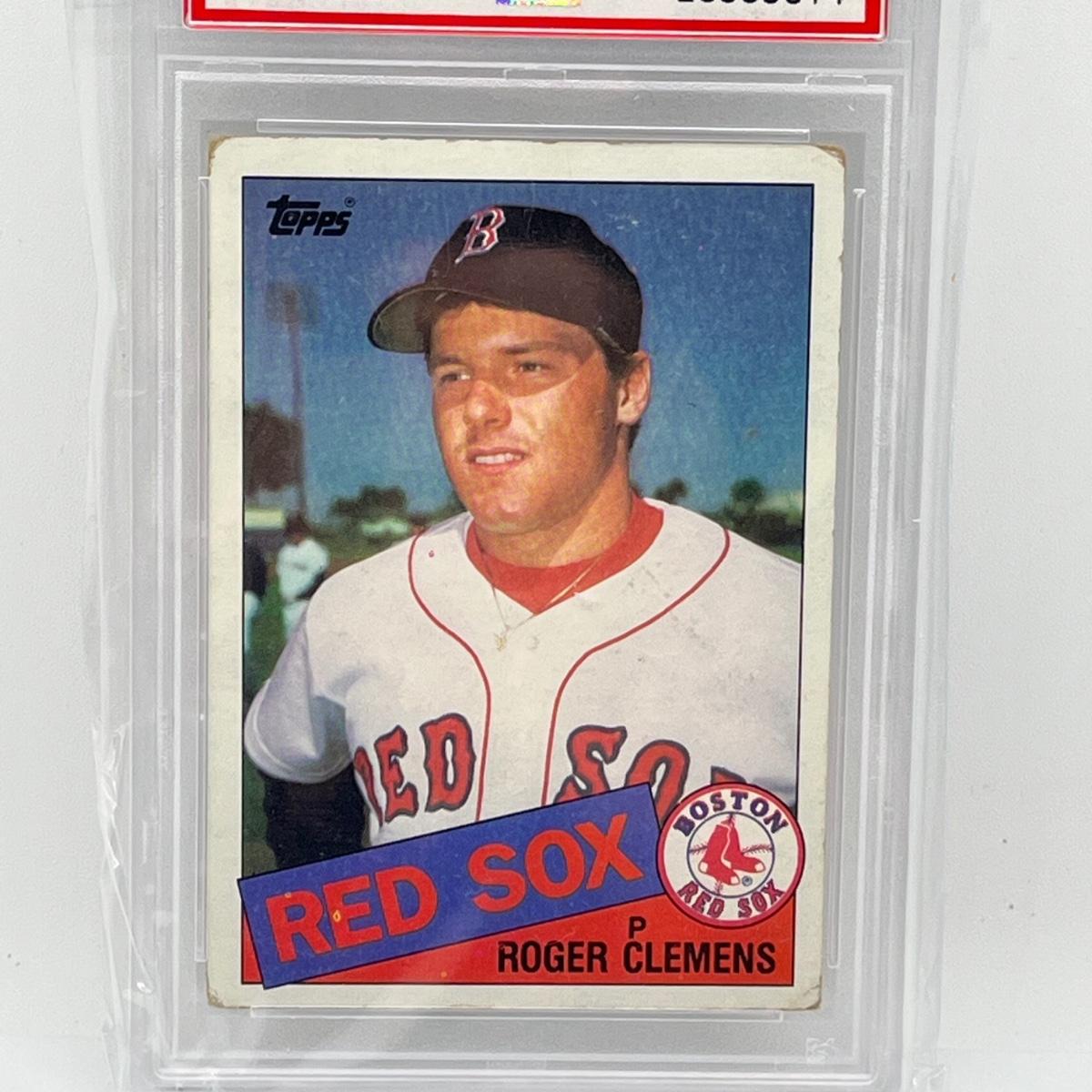 LOT 123: Four PSA Graded Topps Rookie Baseball Cards - Roger Clemens, Tom Glavine, Bernie Williams, Chipper Jones - Plus Clyde Edwards-Helaire 2020 Panini Mosaic Football Card - Mint 9