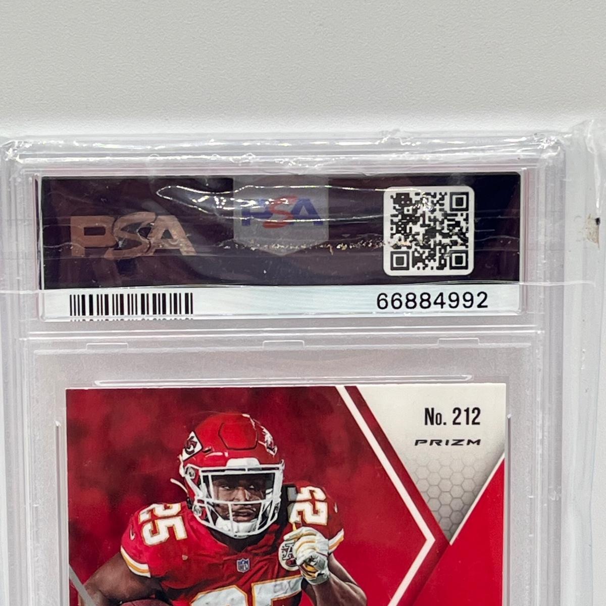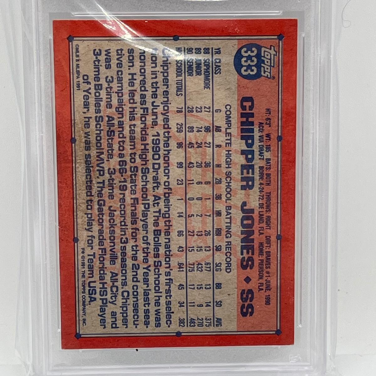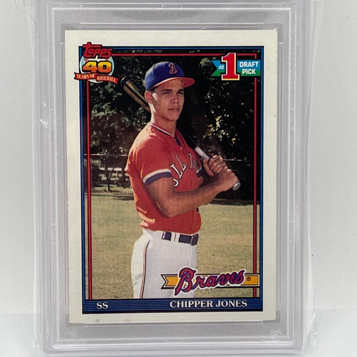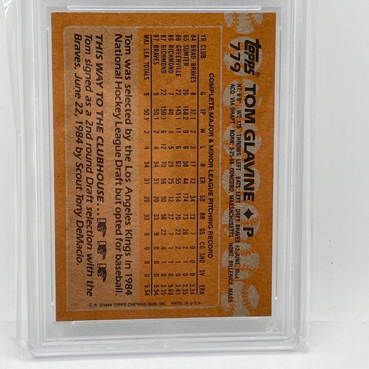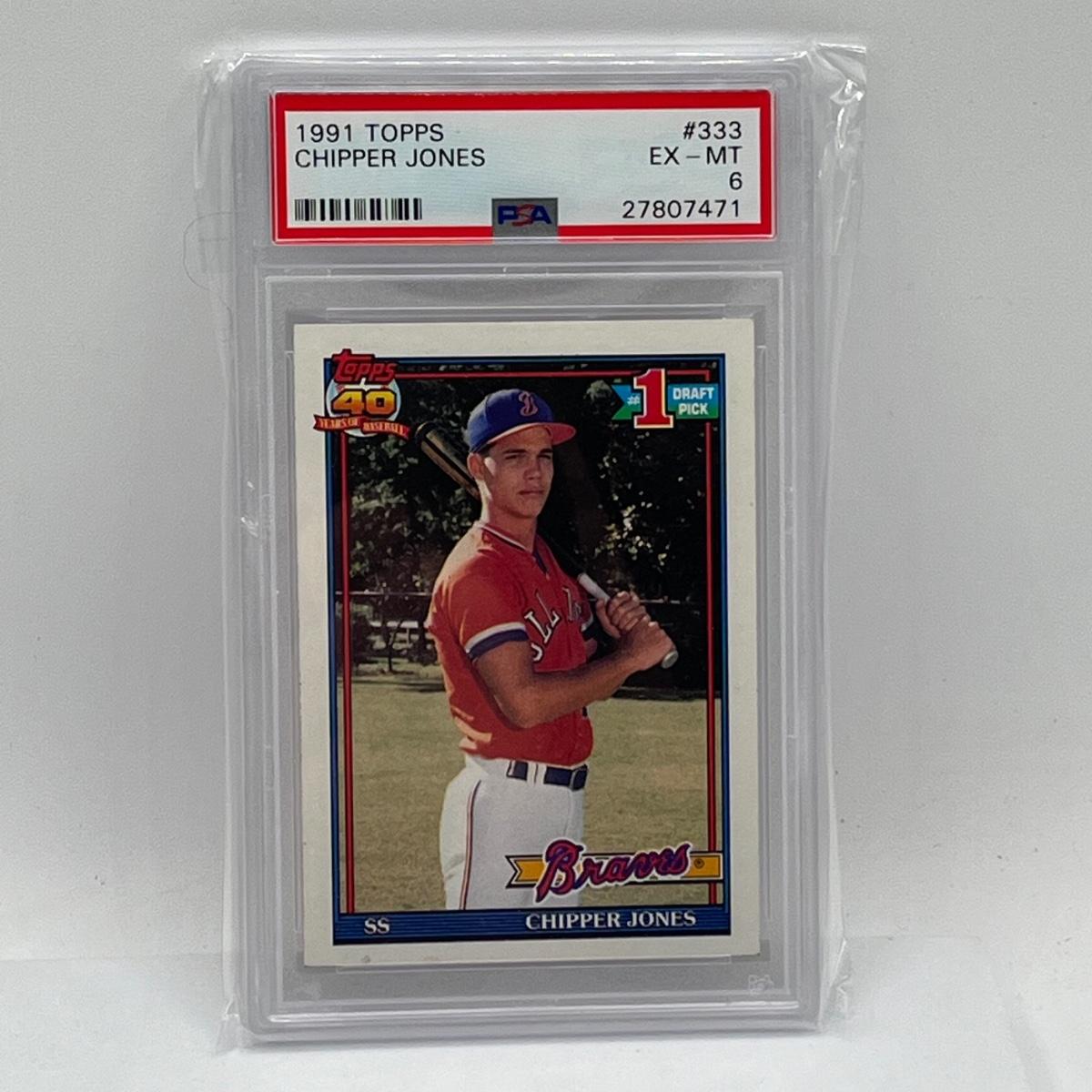 LOT 123: Four PSA Graded Topps Rookie Baseball Cards - Roger Clemens, Tom Glavine, Bernie Williams, Chipper Jones - Plus Clyde Edwards-Helaire 2020 Panini Mosaic Football Card - Mint 9
