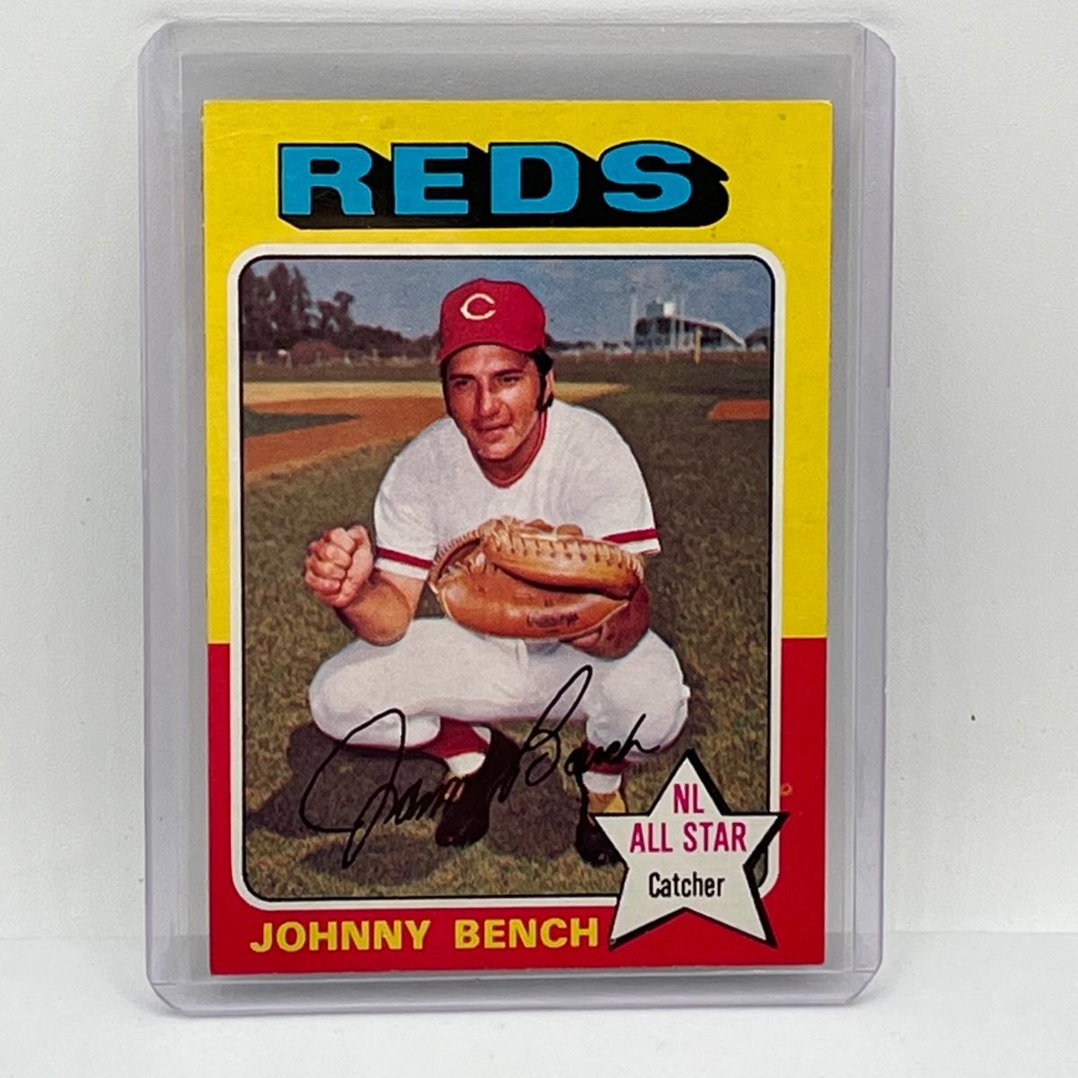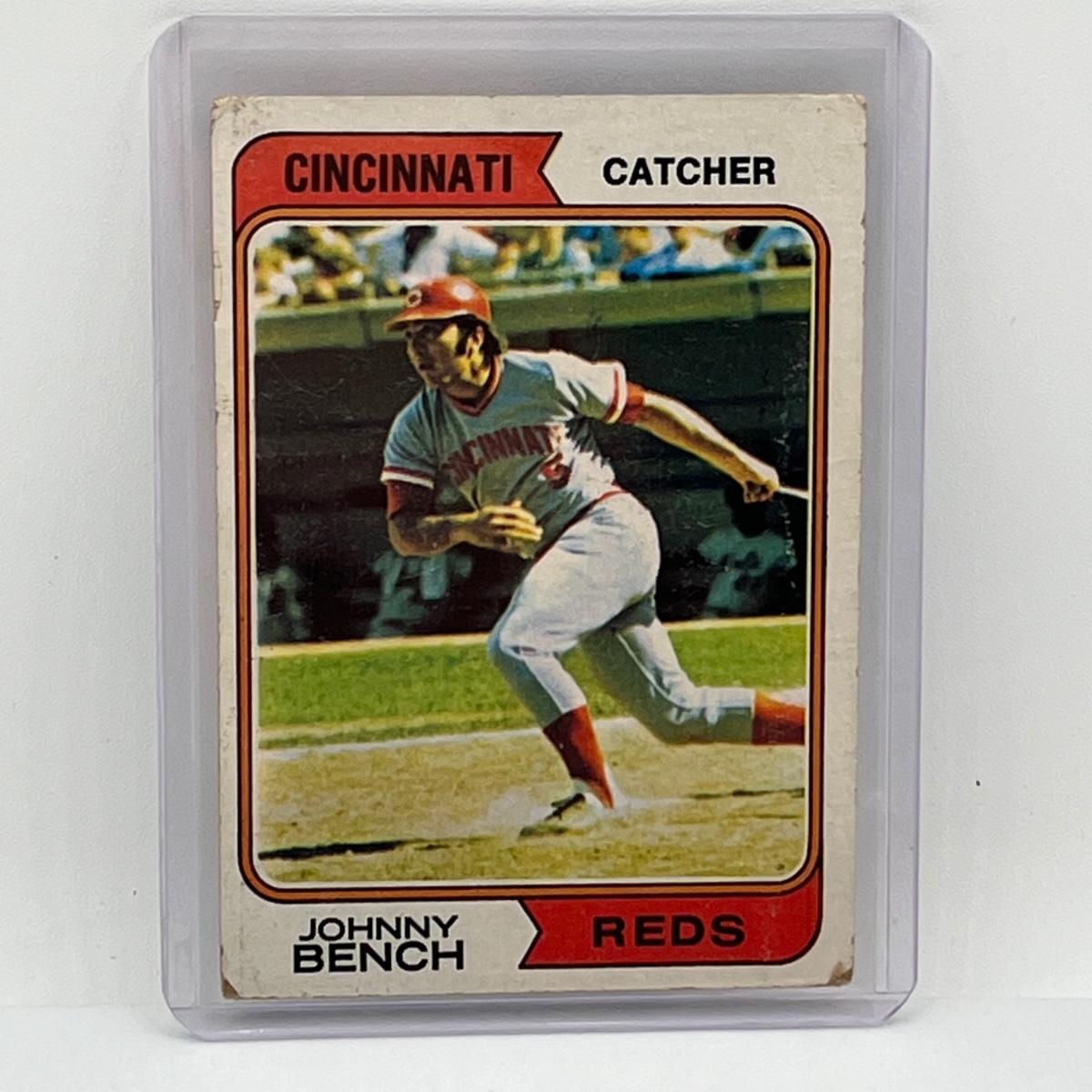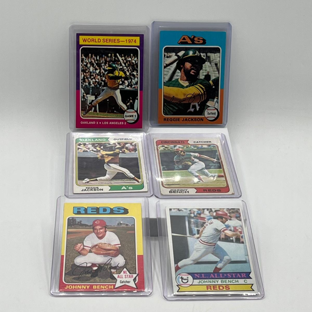 LOT 135: Reggie Jackson 1974 and 1975 Topps Cards and Johnny Bench 1974, 1975, 1979 Topps Cards