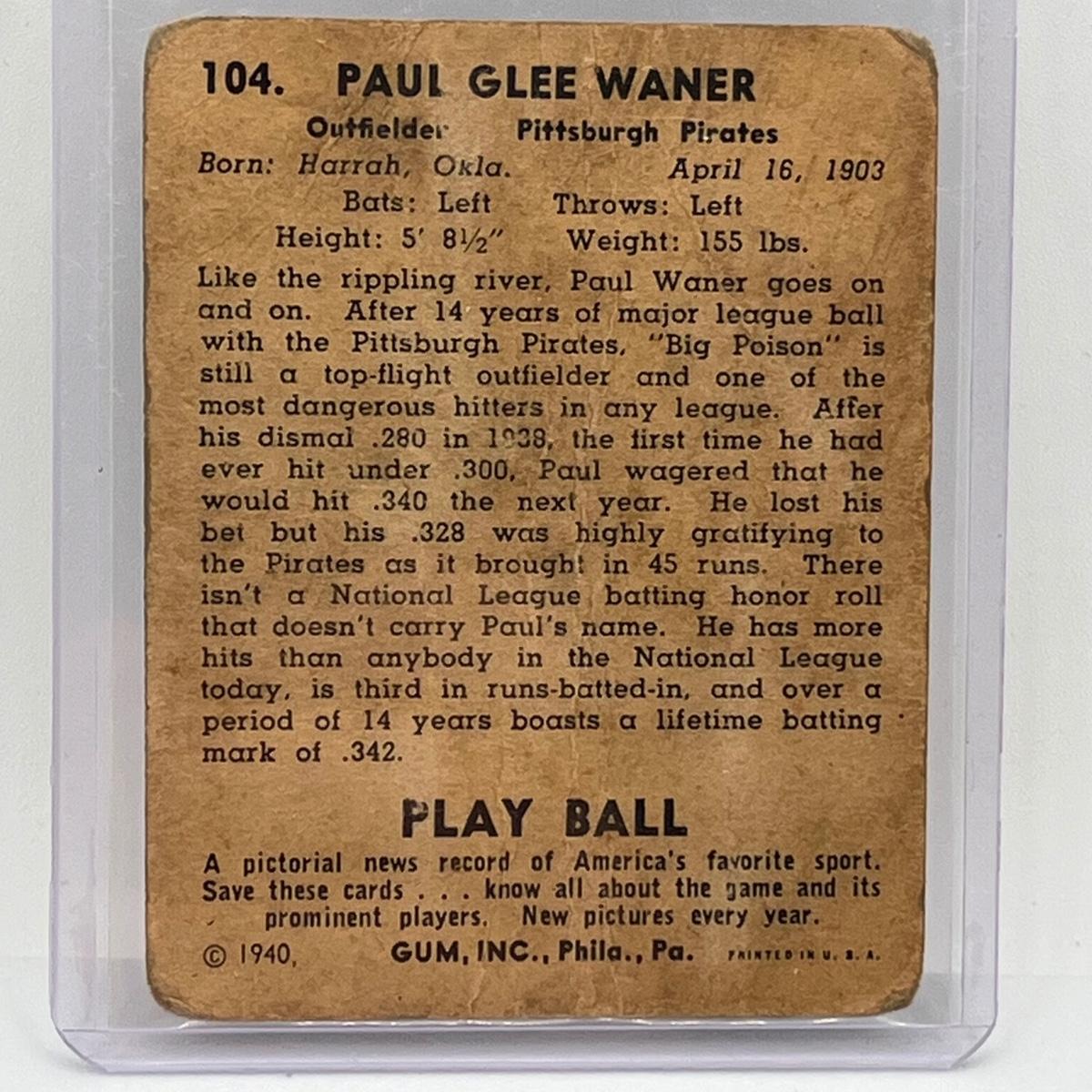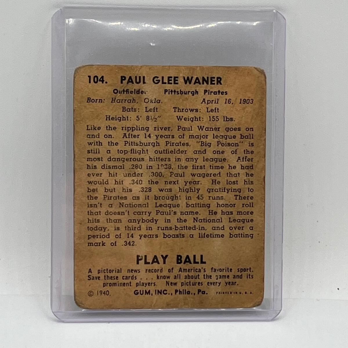 LOT 137: Paul "Big Poison" Warner and Atley Donald 1940 " Play Ball" Cards
