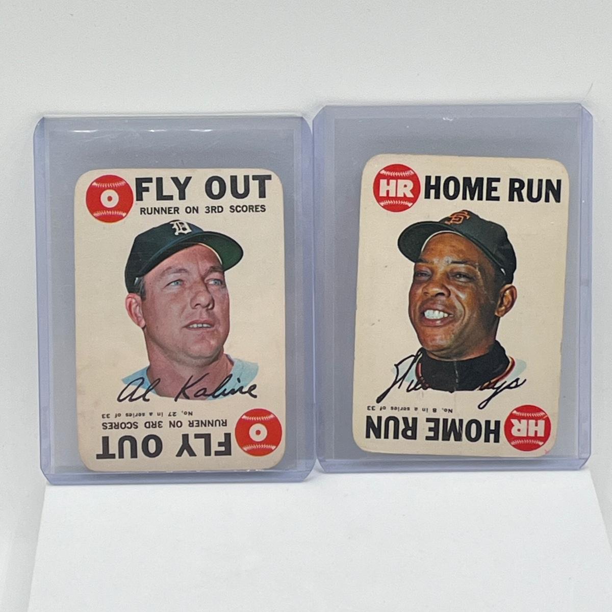 LOT 152: Al Kaline "Flyout" and Willie Mays "Homerun" 1968 Topps Cards