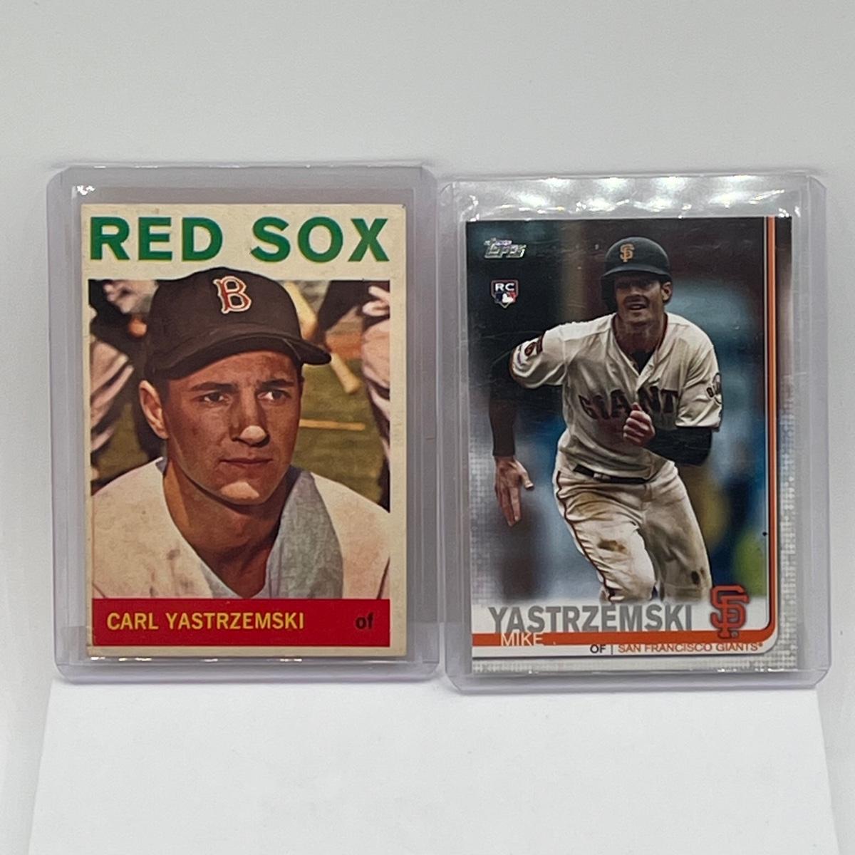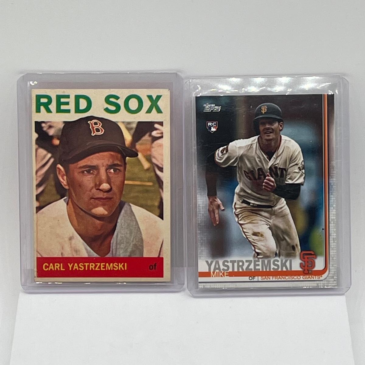 LOT 154: Carl Yastremski 1964 Topps Card and Mike Yastremski Rookie 2019 Topps Update Series Card - Grandfather and Grandson!