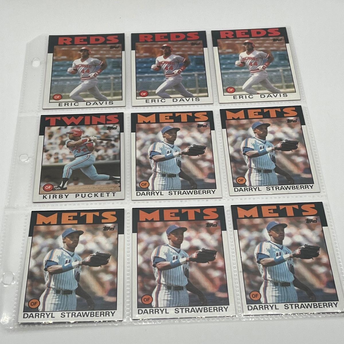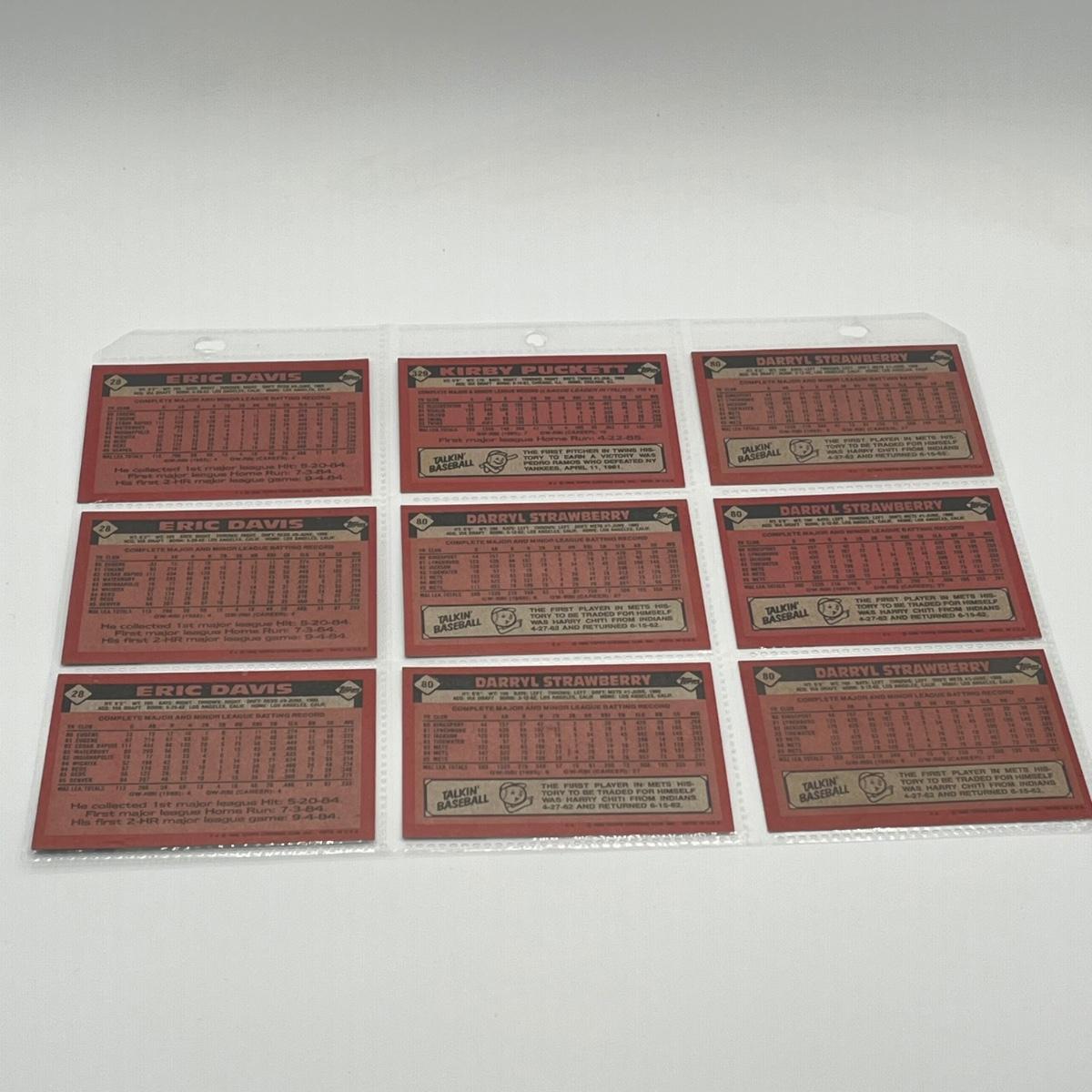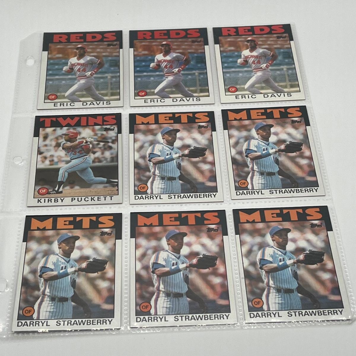 LOT 176: 1986 Topps Baseball Cards - 2nd Year Eric Davis and Kirby Puckett and 3rd Year Darryl Strawberry