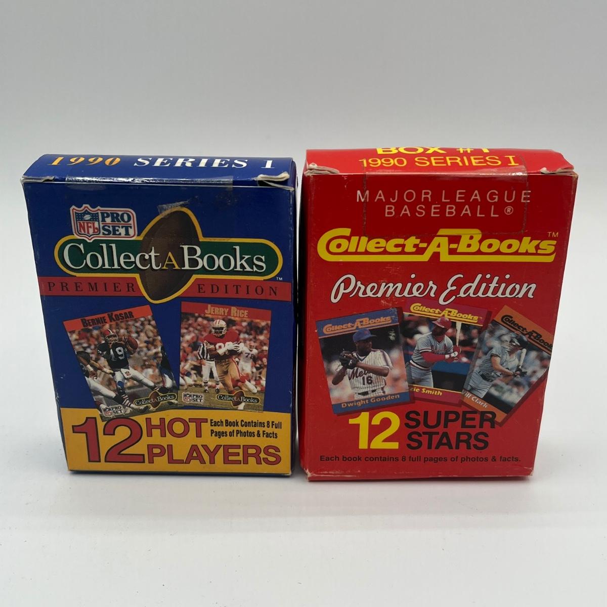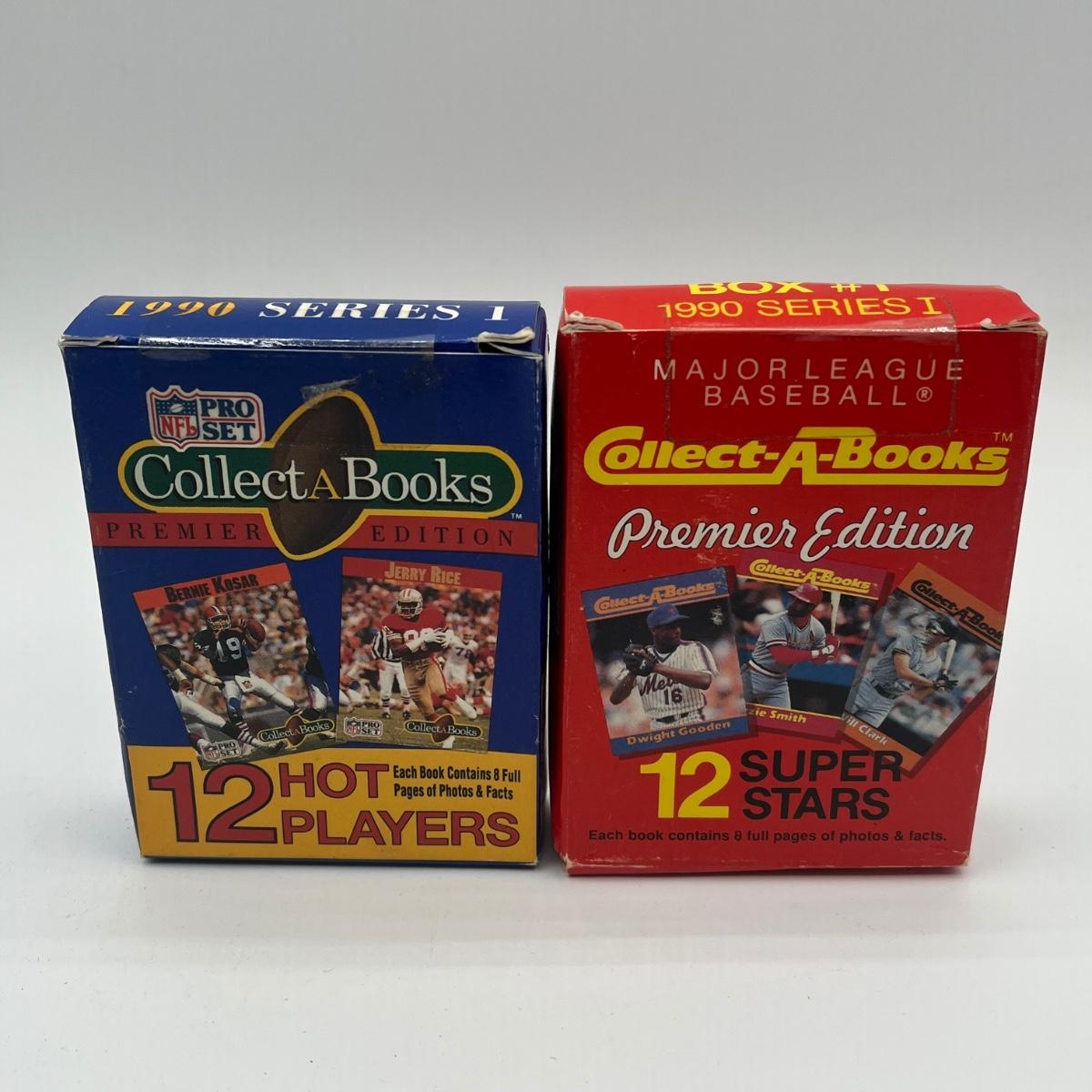 LOT 199: 1990 "Collect-A-Books" - 1 Box Baseball and 1 Box Football - Sealed Complete Sets - Inlcuding Bo Jackson, Ken Griffey Jr., Jerry Rice, Barry Sanders and More