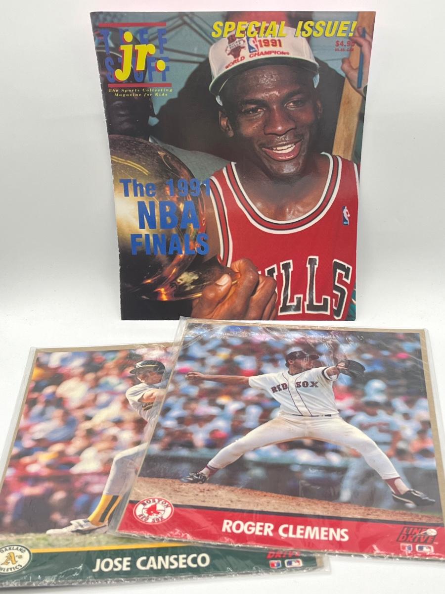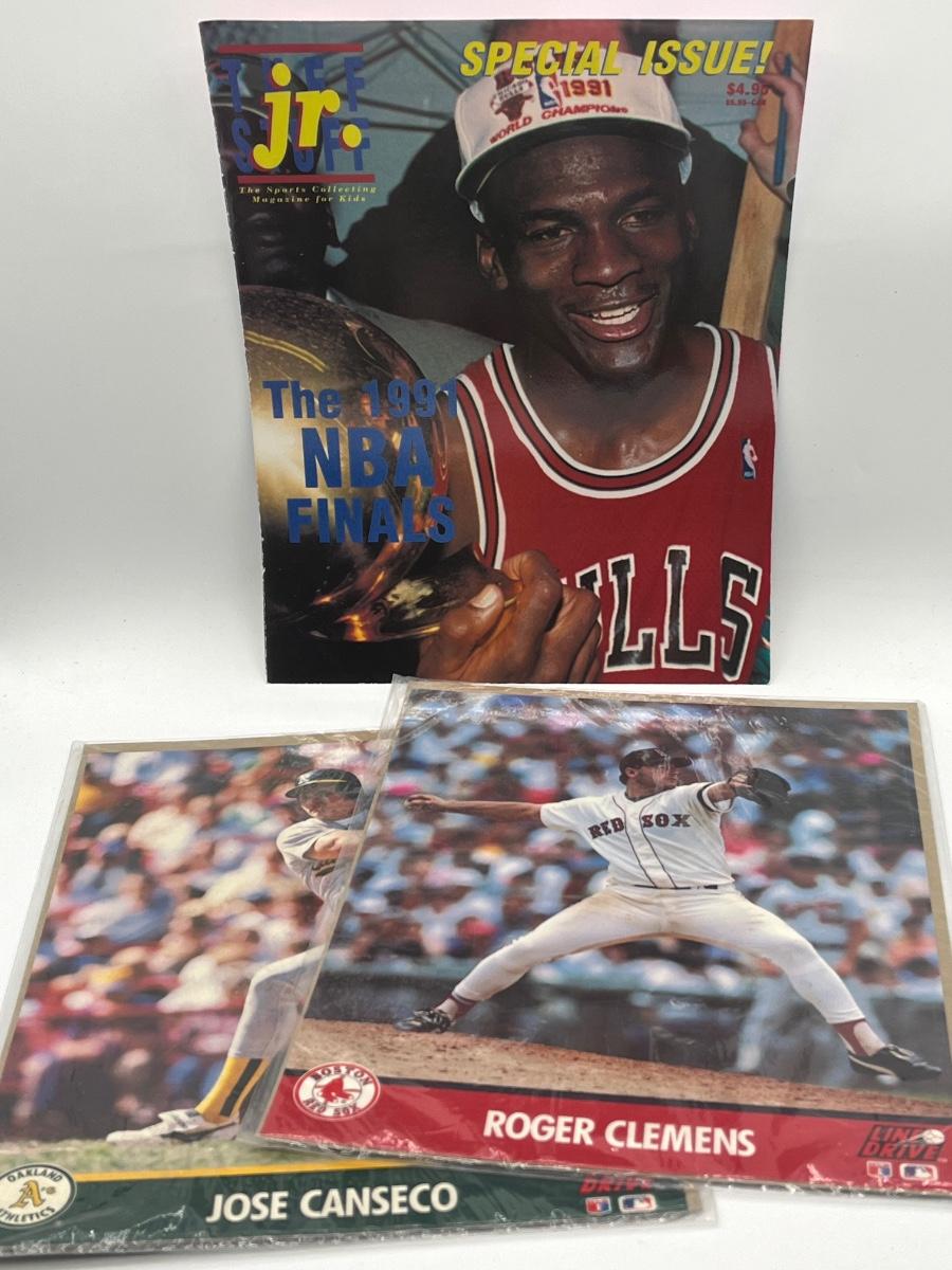 LOT 273: Tuff Stuff Jr. Michael Jordan Cover + Roger Clemens and Jose Canseco Line Drive Action Photos