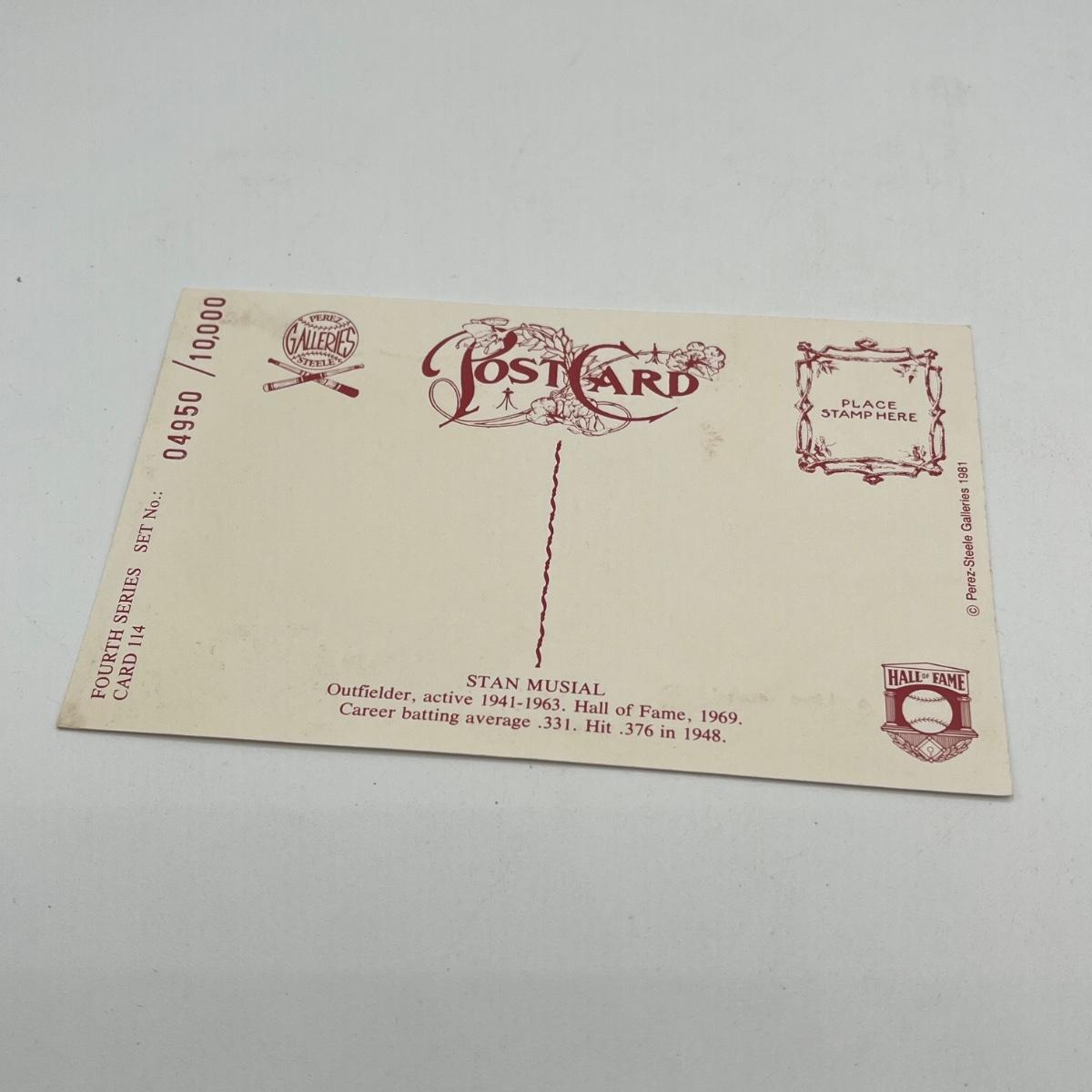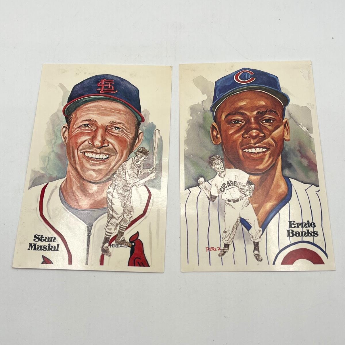 LOT 282: 1981 Perez-Steele Galleries Limited Edition Postcards - Stan Musial & Ernie Banks